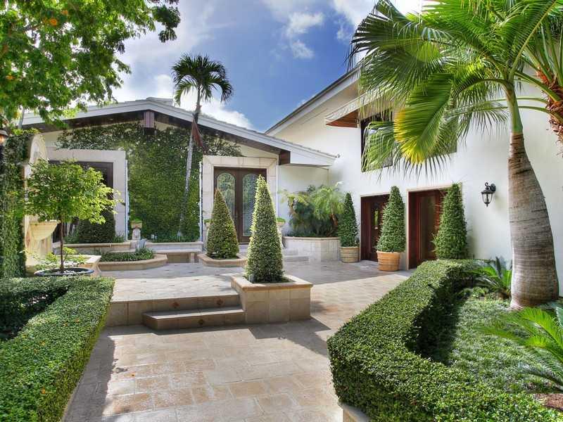 Elegant, spectacular design with Florida subtropical vibe. Wide water views and minutes to bay on the wide prestigious Coral Gables waterway! Yachtsman's paradise of 5000 Sf, 5/5.5 updated 2 story walled Estate features European courtyard, gated entrance, & vaulted ceilings, travertine marble throughout, plus onyx & wood floors in bedrooms & baths + a bonus 6th room. Gorgeous kitchen w/ cook's island, Large great room with amazing floor plan. Light + bright w/ incredible views overlooking pool + waterway.