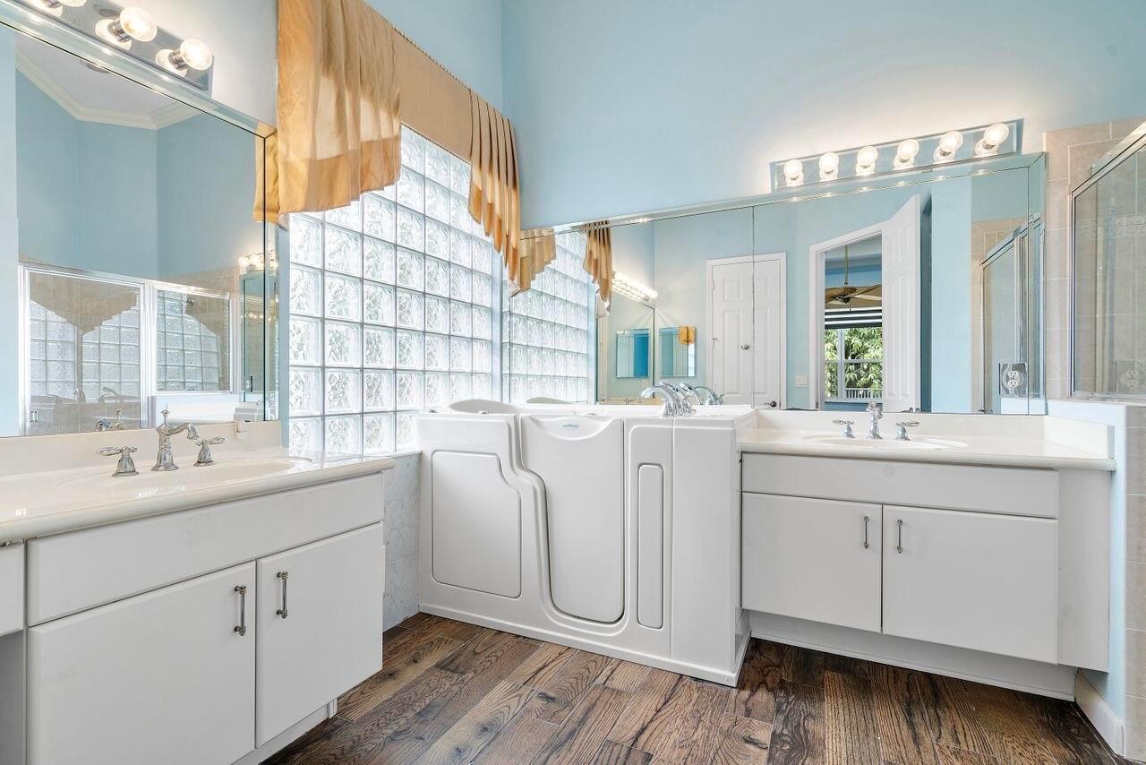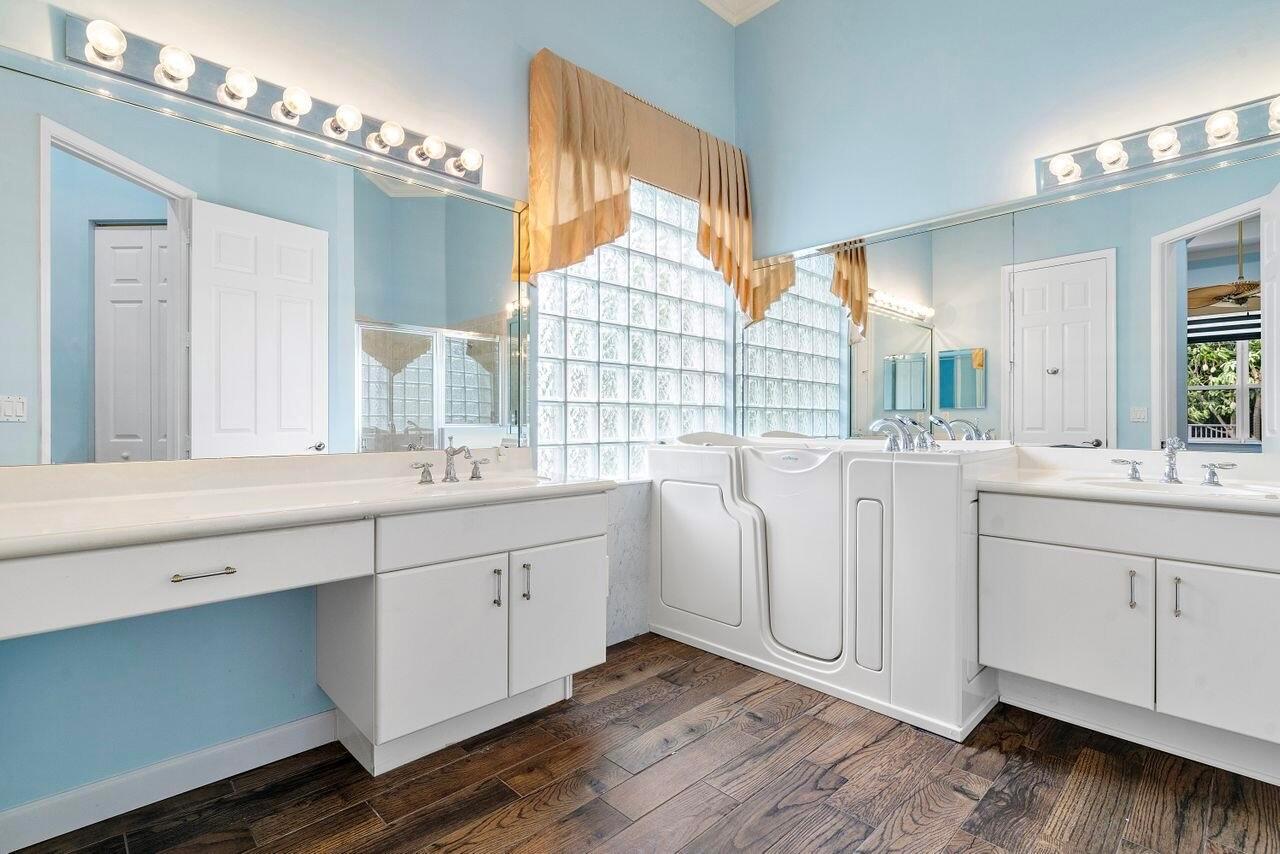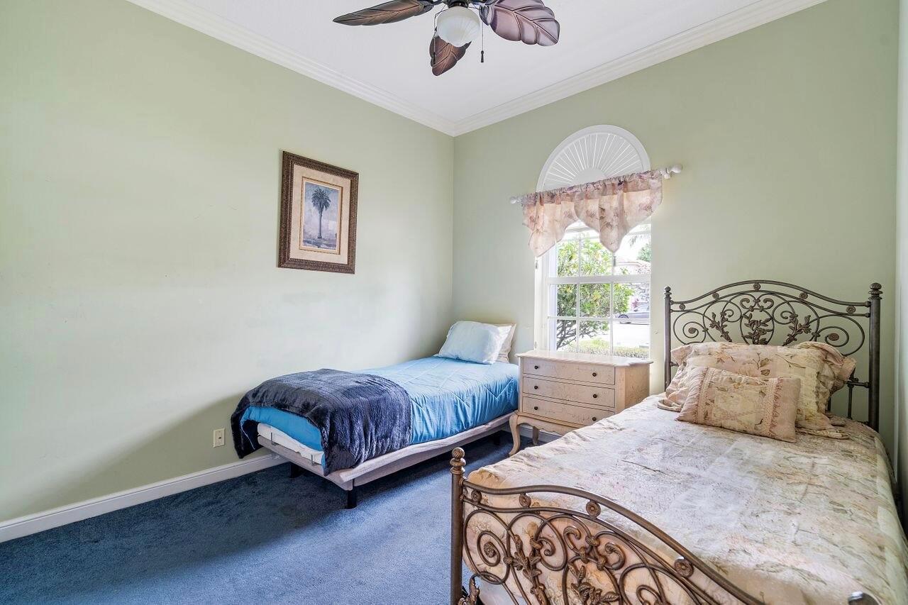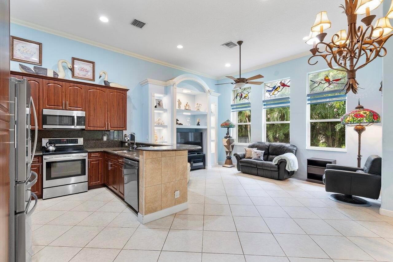 Rarely available and highly sought after 4/2.5 on a BIG LOT & quiet street. This Elegant model offers the LARGEST ONE STORY floor plan in the community. Located a short distance to the Clubhouse in the Estate Section. This impeccably kept property boasts just under 3,000 total square feet and 2350 square feet of under air living space.The property includes: Split Floor Plan, Big Double Door Grand Open Foyer Entrance,Full Back Up GENERAC Generator,Newer AC, Newer HWH, High Vaulted Ceilings, Stained glass custom windows, beautiful natural light with Southern Exposure and large windows, accordion shutters, updated kitchen, tile flooring , new carpet in bedrooms, large walk in closets, newer electrical panel, screened patio, Big back yard on a quiet cul-de-sac street