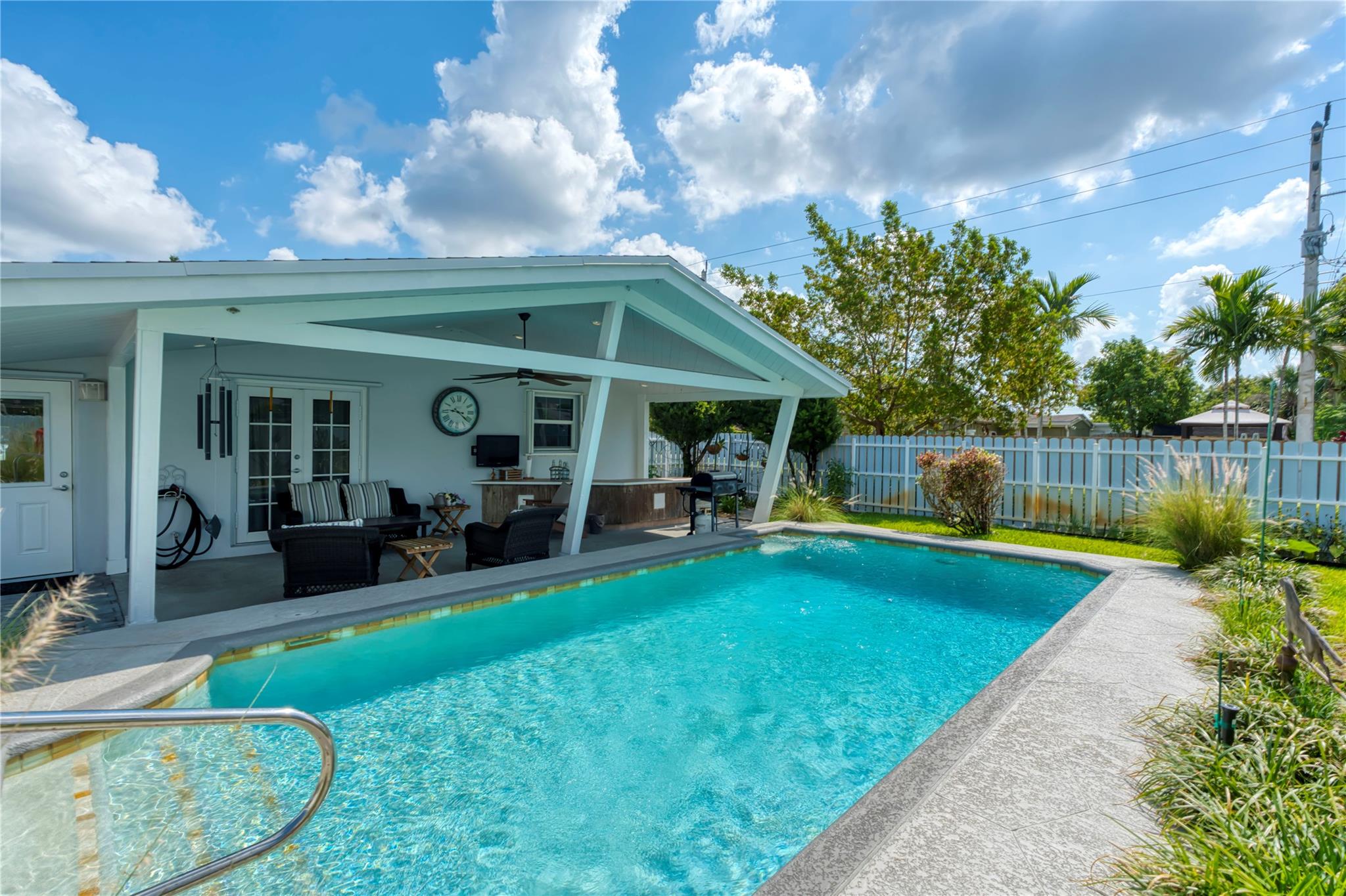 Welcome to this beautifully maintained Hollywood home that offers comfort, charm, and exceptional outdoor living! Enjoy a private backyard retreat with a sparkling pool, stylish patio, and plenty of room to entertain. The updated interior features a modern kitchen, renovated bath, and custom built-in cabinetry. Set on a corner lot with a shed and rare covered RV/boat storage. Whether you’re hosting friends or relaxing with family, this home has it all. Minutes from shops, restaurants, and top schools. Don’t miss this opportunity! This home showcases true pride of ownership, inside and out. Thoughtfully maintained and move-in ready, it’s ideal for those seeking a low-maintenance home with great functionality and convenience. Schedule your private tour today.