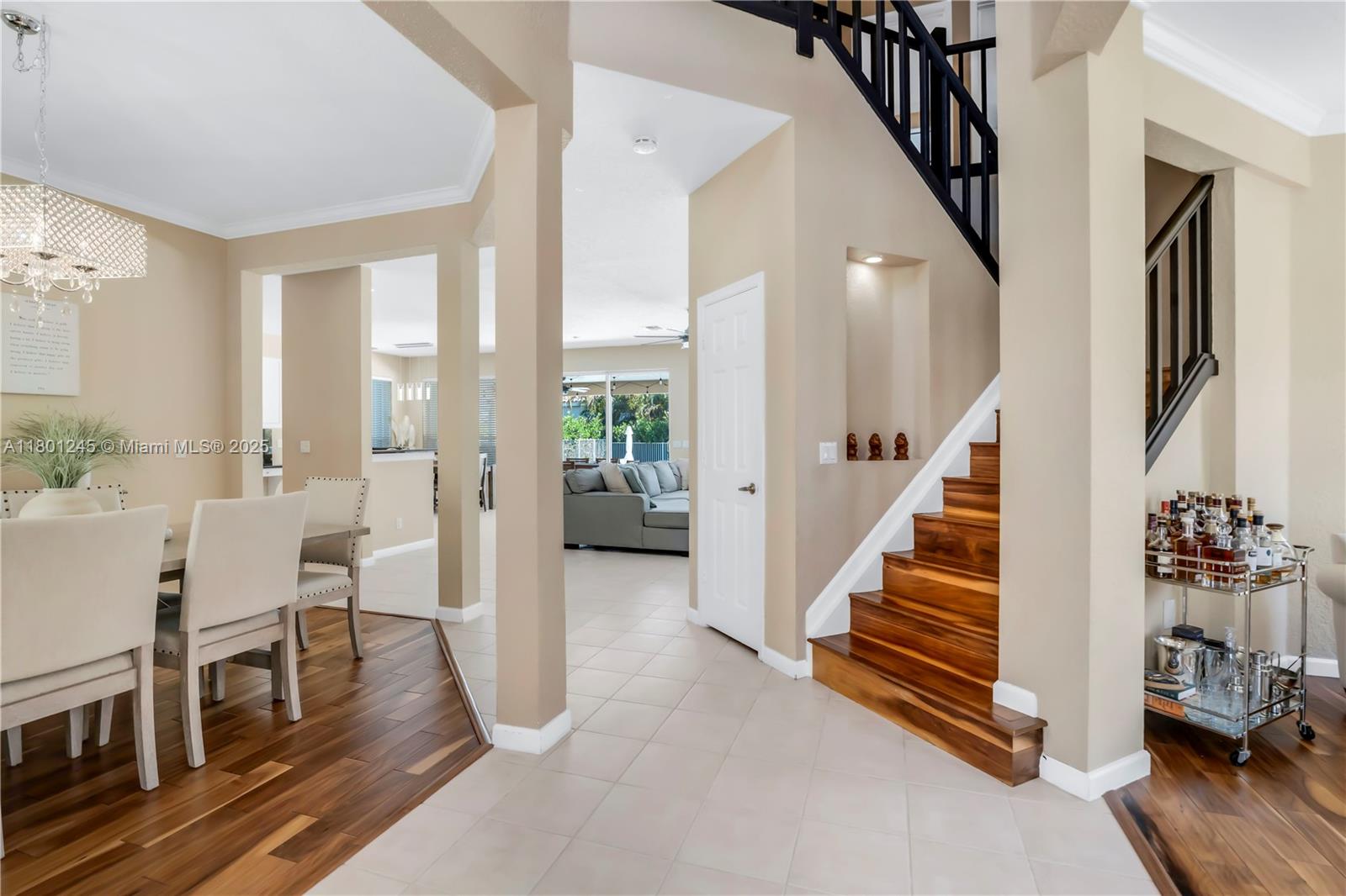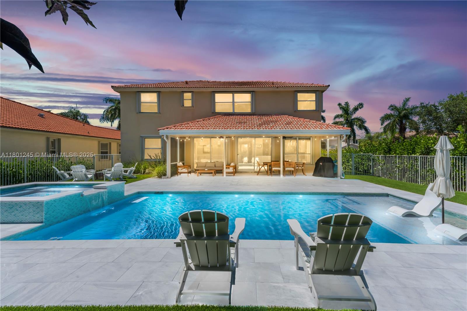 Welcome to the home of your dreams. This 5-bedroom, 3-bath home offers the perfect blend of comfort and style. A desirable layout includes 1 bedroom and a full bath on the main level. The home also features a mudroom with laundry and a generous walk-in pantry. The open-concept gourmet kitchen overlooks the inviting family room, where expansive windows provide spectacular views of the sparkling, newly built pool and spa—perfect for sunny summer days. Step outside to a large covered patio, ideal for entertaining. Upstairs, you'll find 4 additional bedrooms, including a luxurious primary suite that serves as a peaceful retreat. The en-suite bathroom offers a soaking tub, separate shower, and large walk-in closet. All bedrooms are generously sized and there is plenty of storage throughout.