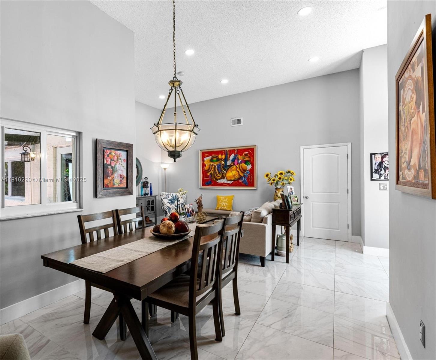 Beautifully renovated 3-bedroom, 2-bathroom Art Deco-style home, in serene, gated community. Open-concept layout featuring brand-new flooring, doors, lighting, updated bathrooms. The French-style kitchen upgraded refrigerator, stove, and dishwasher. This move-in ready home offers impact windows and doors, a roof just four years young, and a recently replaced AC, water heater, washer, and dryer. The spacious garage can easily be transformed into a fourth bedroom or an inspiring office space, already equipped with a generous wall-to-wall closet. Two terraces that open to a sprawling backyard — one of the largest in the community. Parking for 4 cars in front. Well-maintained neighborhood ,low $130/month HOA fee that includes 24/7 security & front lawn maintenance.