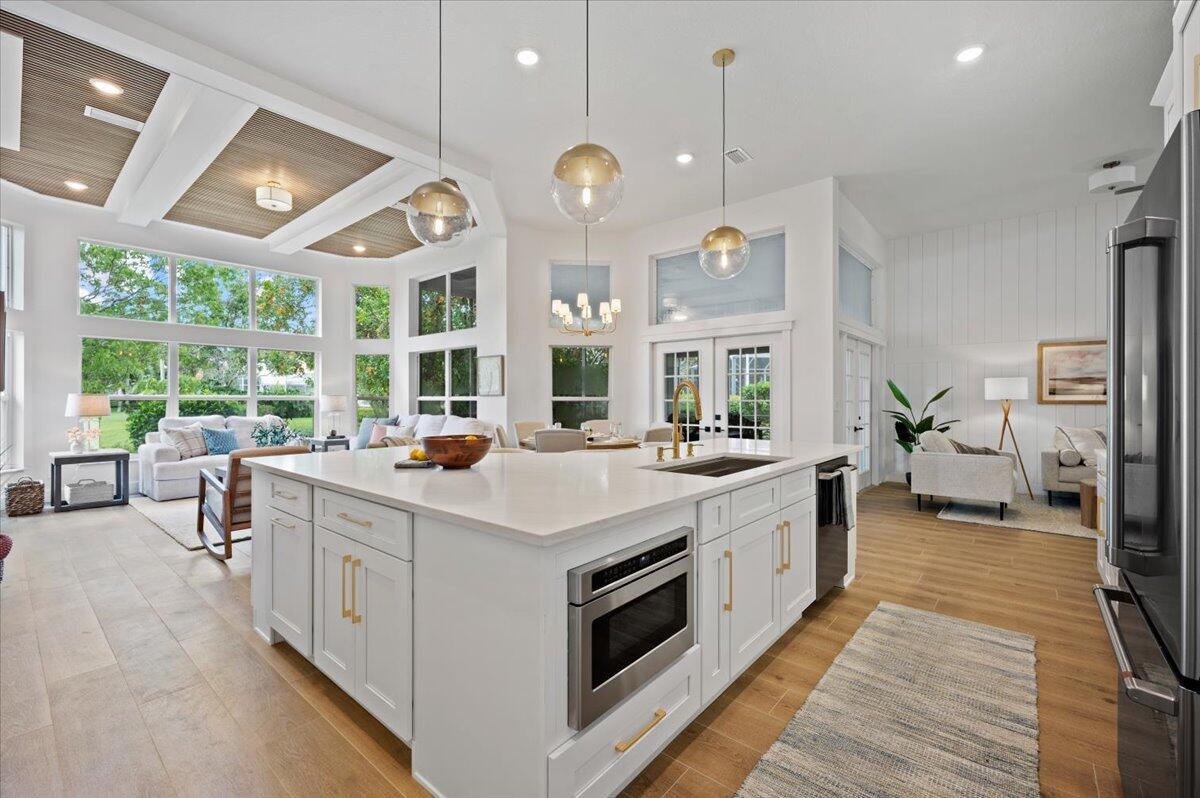 Located in one of SoFL's safest cities & top school districts, this stunning 5BR/3BA home sits in a gated country club community w/golf, tennis, clubhouse, restaurant & more. Fully renovated w/custom chef's kitchen, high-end appliances, Pottery Barn-style fireplace, designer ceiling beams, & spa-like primary suite w/huge walk-in closet. Enjoy serene pond views from the expansive screened porch w/wood-look tile carried from interior. Roof is 4 yrs old. Low-maint. HOA incl. lawn care, ext. paint, roof washing, cable & internet. Room for a pool!