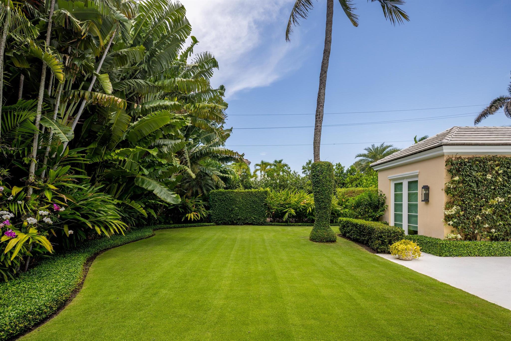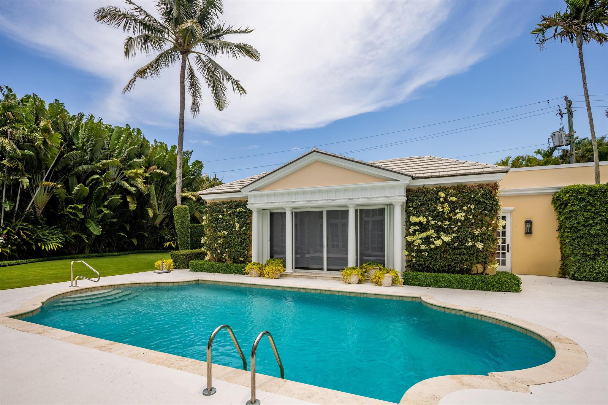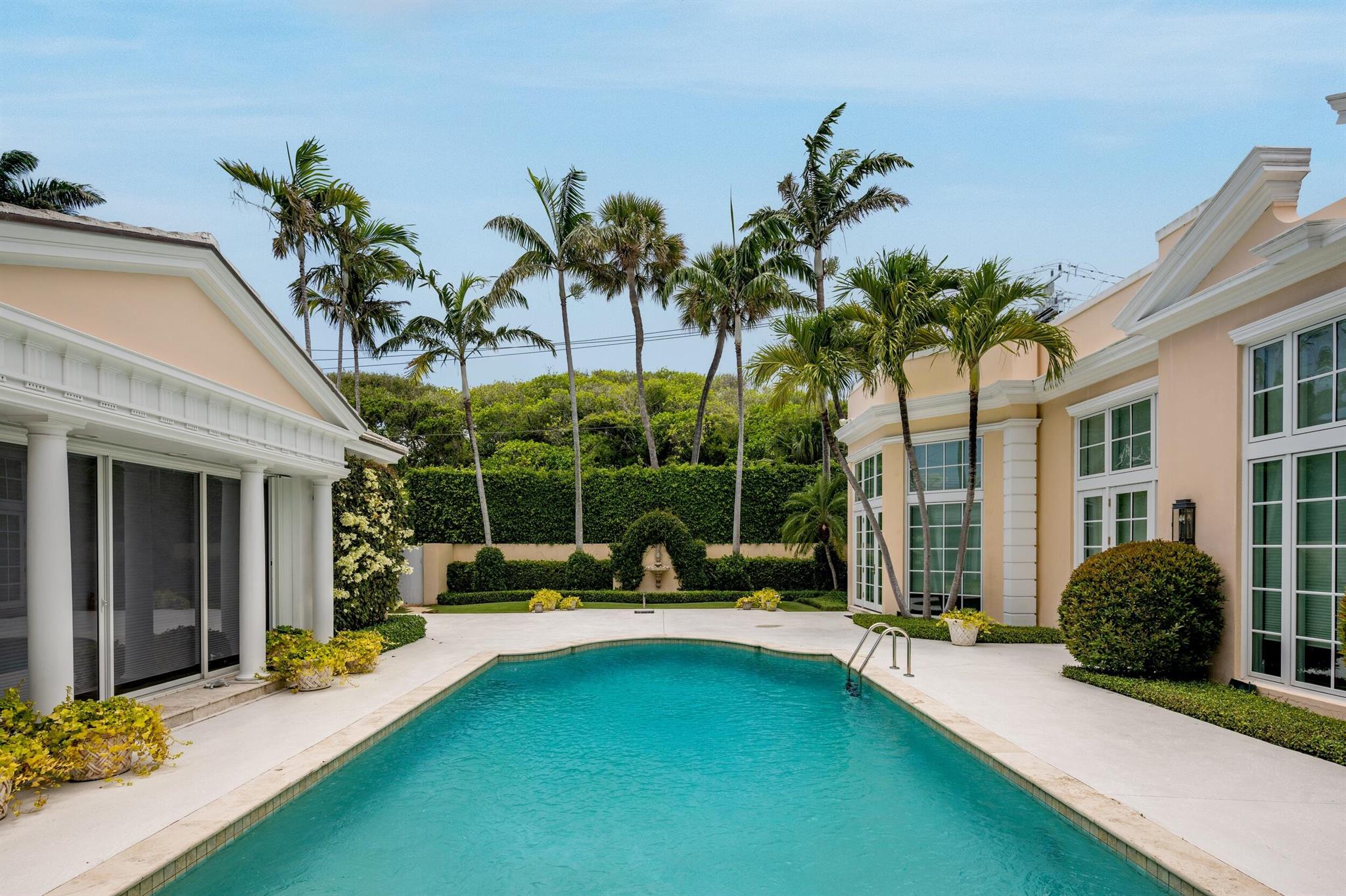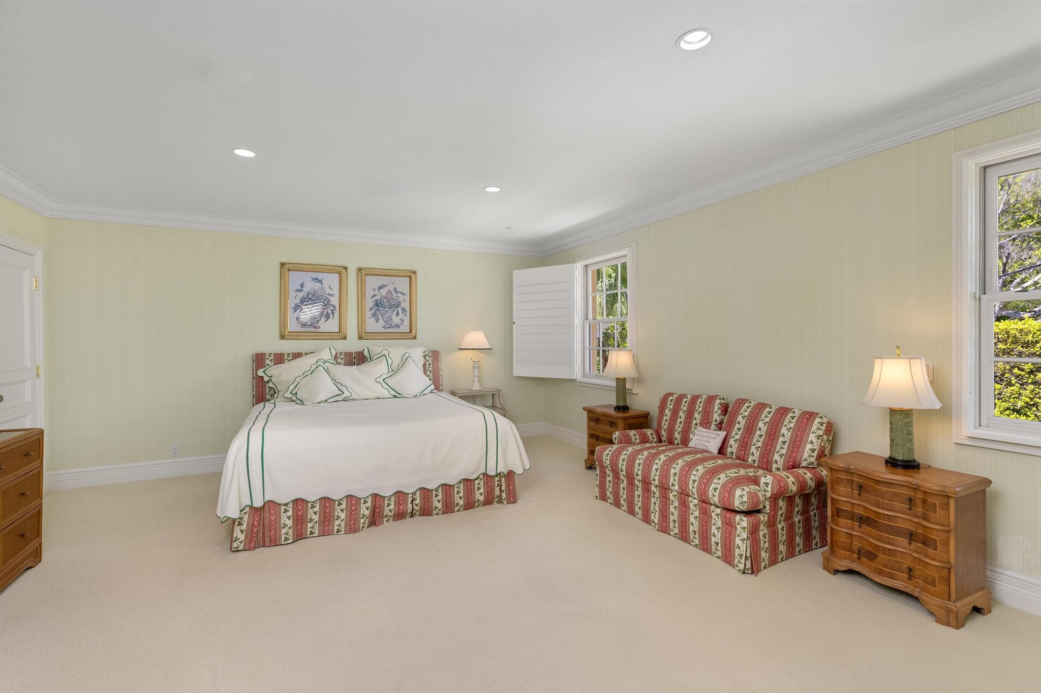 Regal Regency home with 4BR/5.3BA in fantastic Near North End, ocean block location. Situated on a rarely available lot on the sunny south side of Casa Bendita. Over 1/2 acre lot with lush landscaping and stunning pool separating main house and guest house. Features deeded beach access, high ceilings, spacious library, and over 7,000 total square feet.