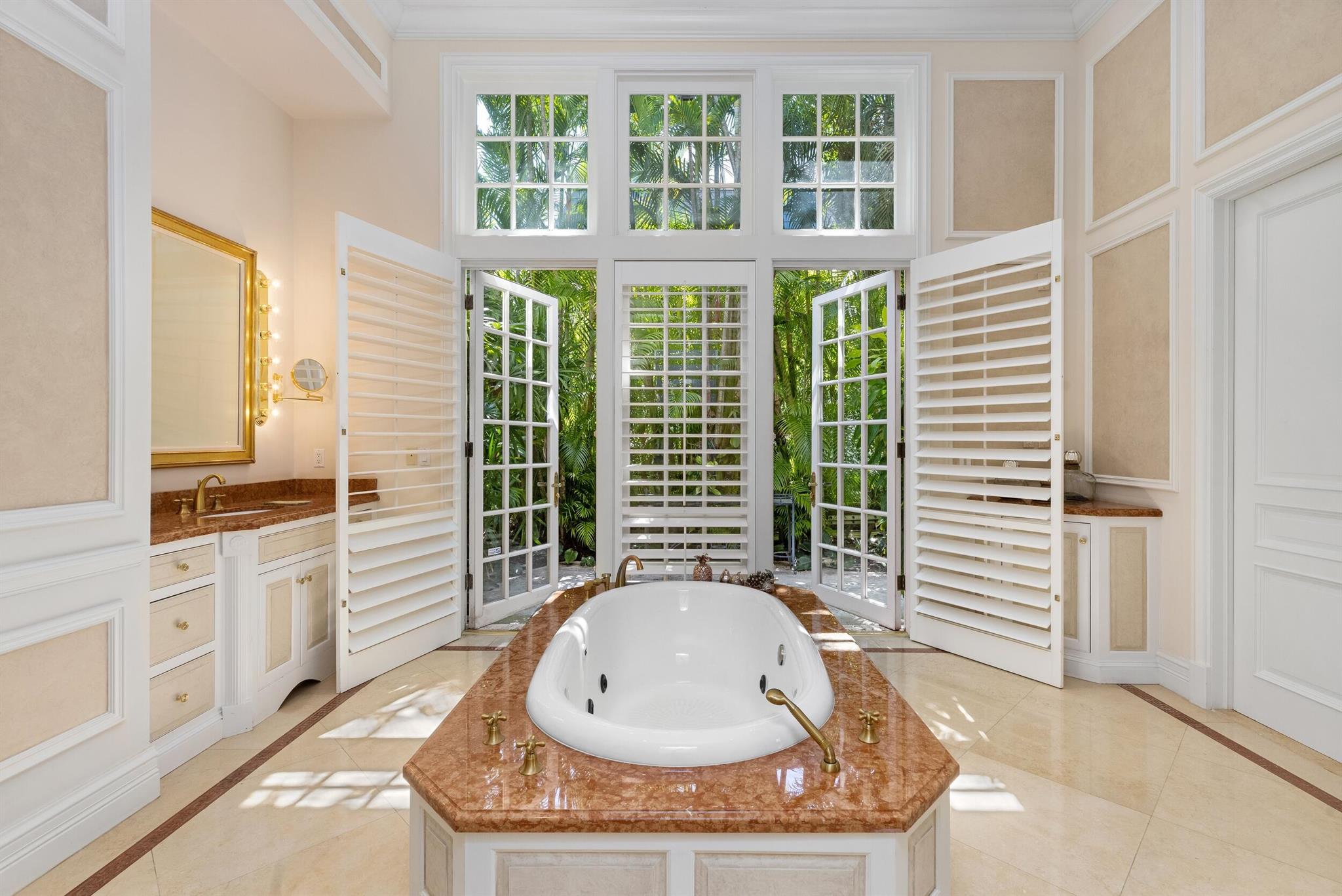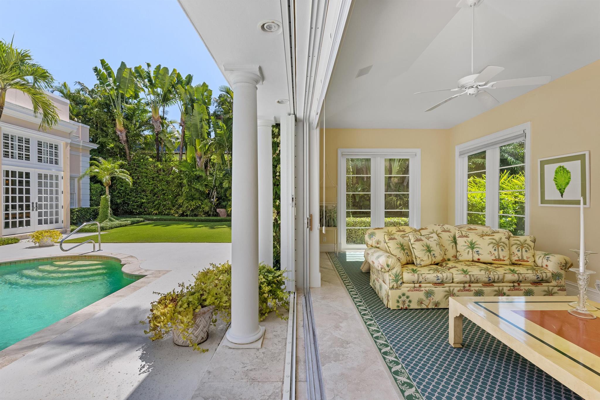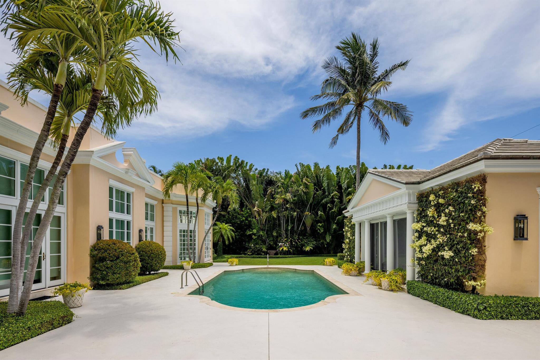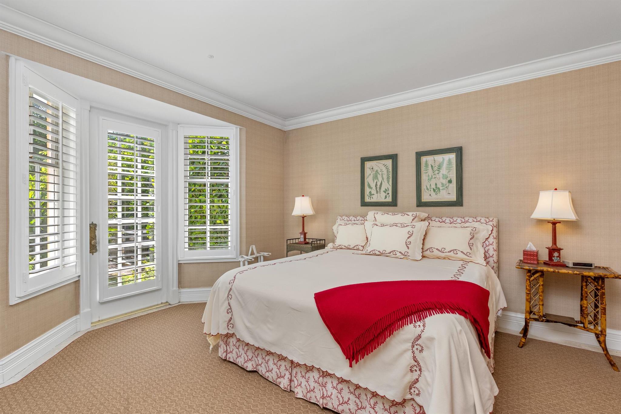 Regal Regency home with 4BR/5.3BA in fantastic Near North End, ocean block location. Situated on a rarely available lot on the sunny south side of Casa Bendita. Over 1/2 acre lot with lush landscaping and stunning pool separating main house and guest house. Features deeded beach access, high ceilings, spacious library, and over 7,000 total square feet.