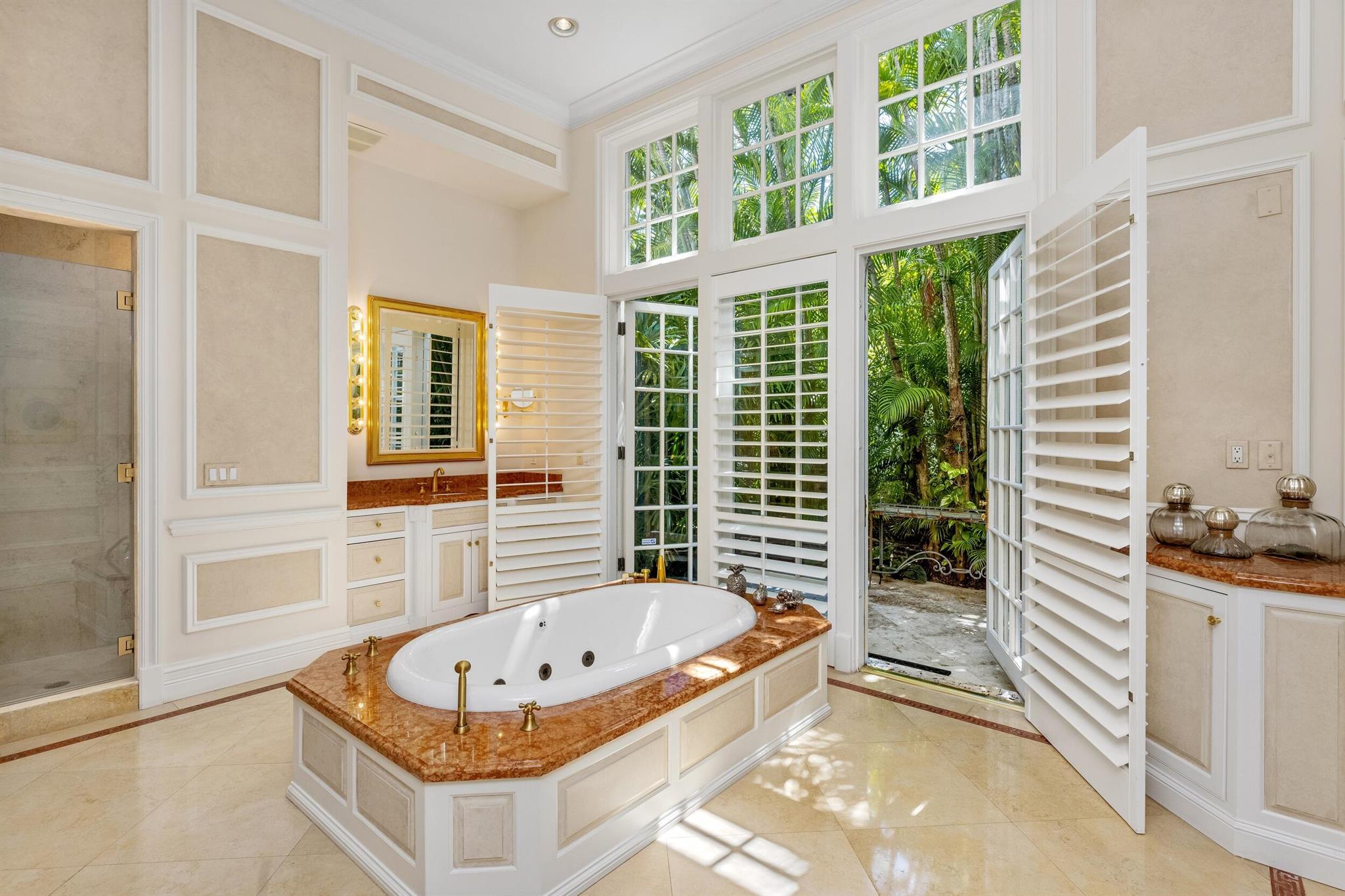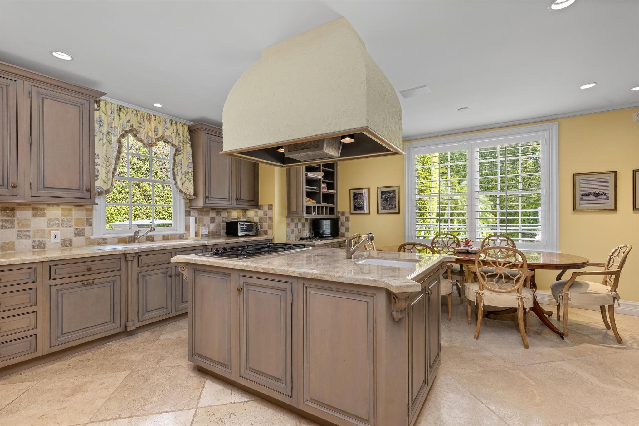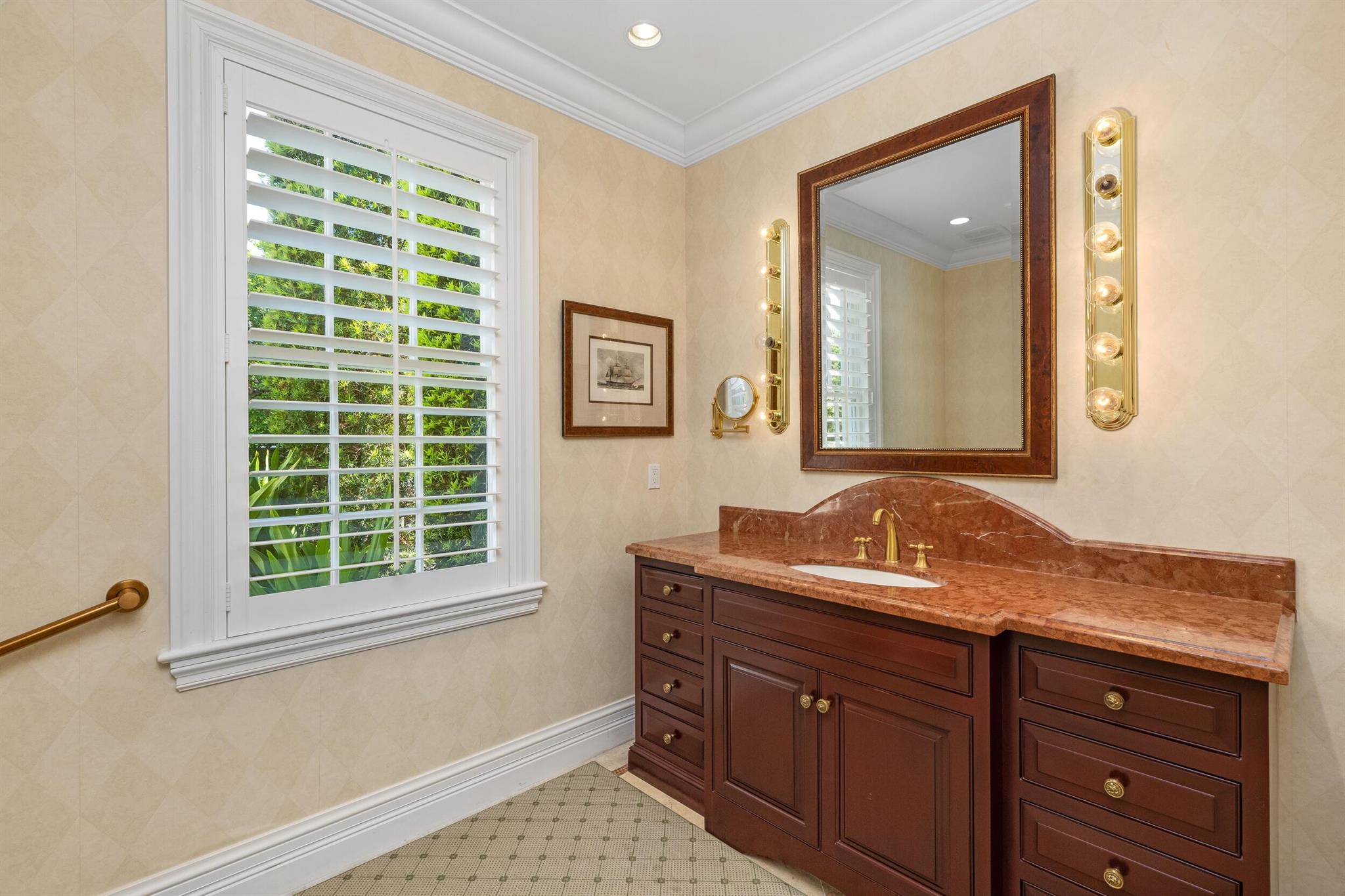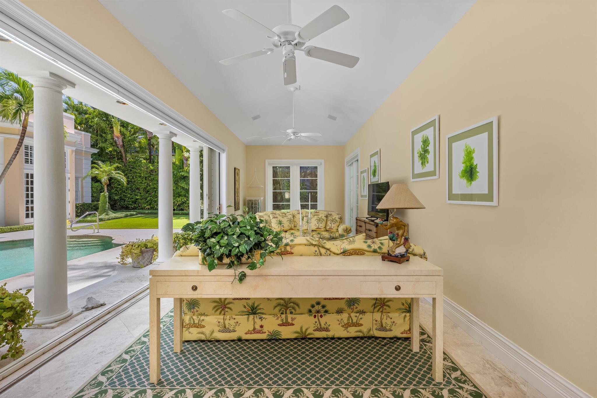 Regal Regency home with 4BR/5.3BA in fantastic Near North End, ocean block location. Situated on a rarely available lot on the sunny south side of Casa Bendita. Over 1/2 acre lot with lush landscaping and stunning pool separating main house and guest house. Features deeded beach access, high ceilings, spacious library, and over 7,000 total square feet.
