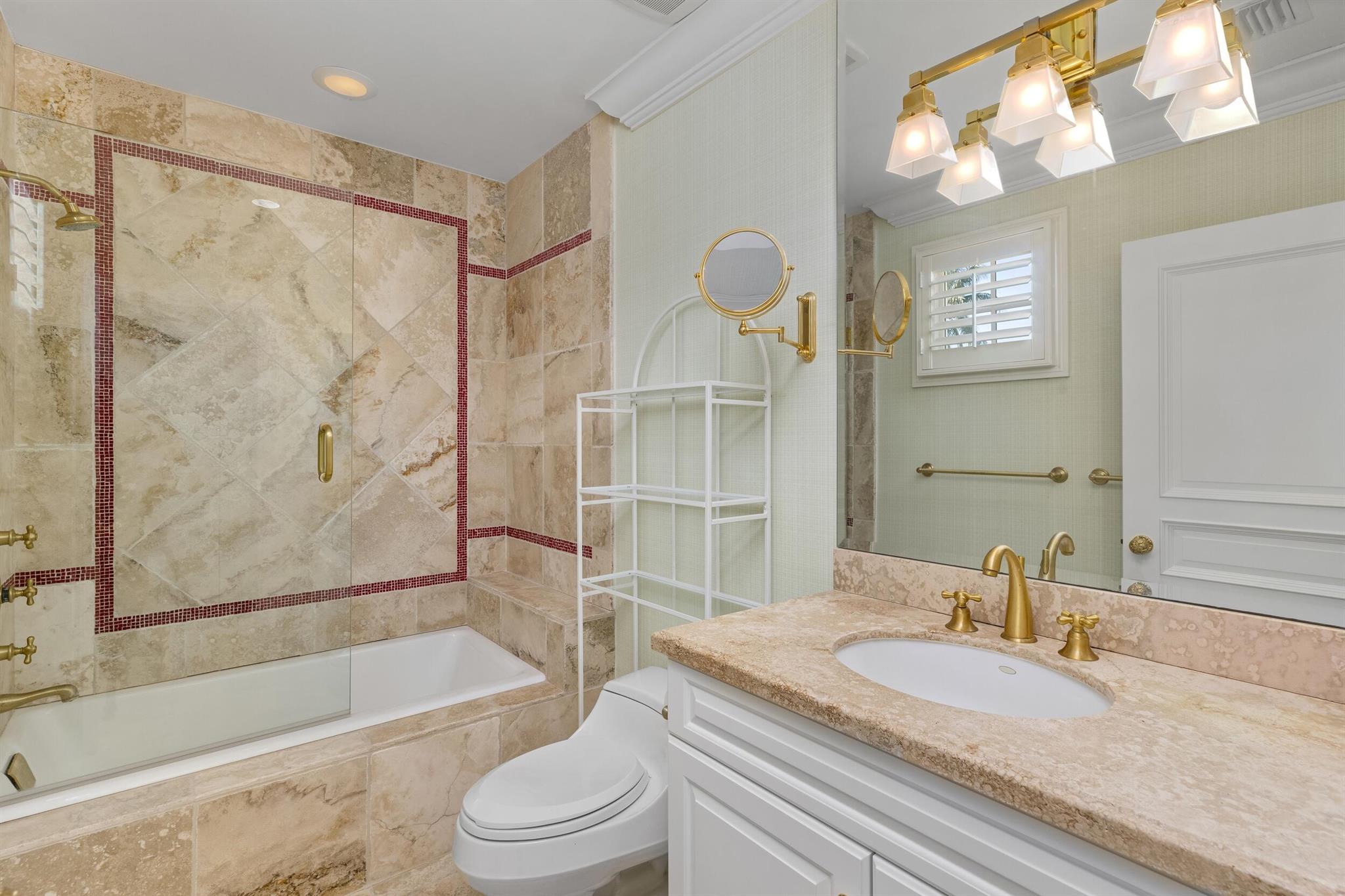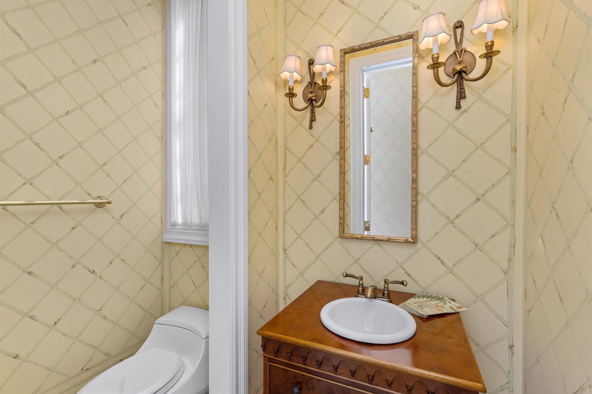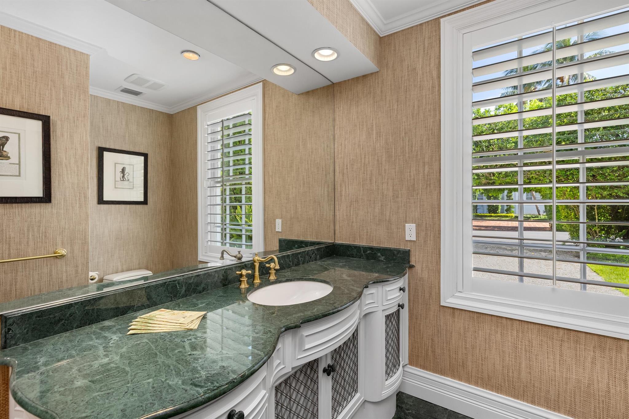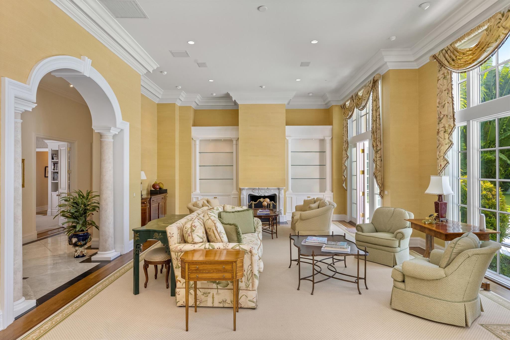 Regal Regency home with 4BR/5.3BA in fantastic Near North End, ocean block location. Situated on a rarely available lot on the sunny south side of Casa Bendita. Over 1/2 acre lot with lush landscaping and stunning pool separating main house and guest house. Features deeded beach access, high ceilings, spacious library, and over 7,000 total square feet.
