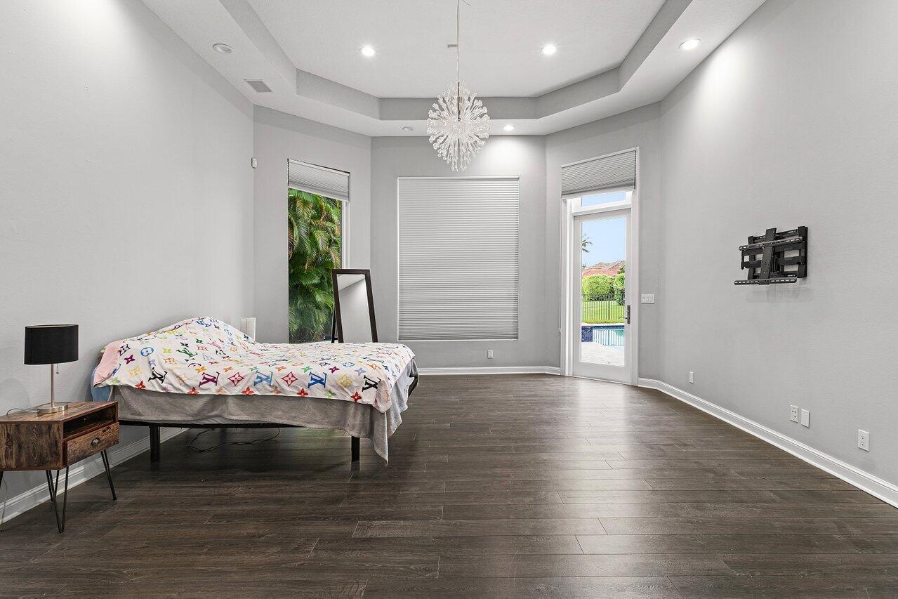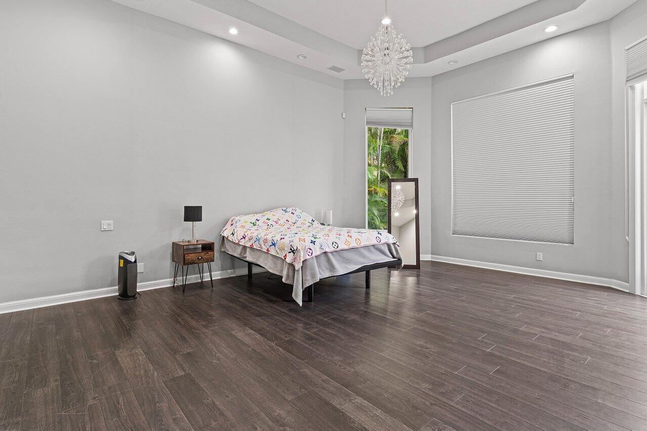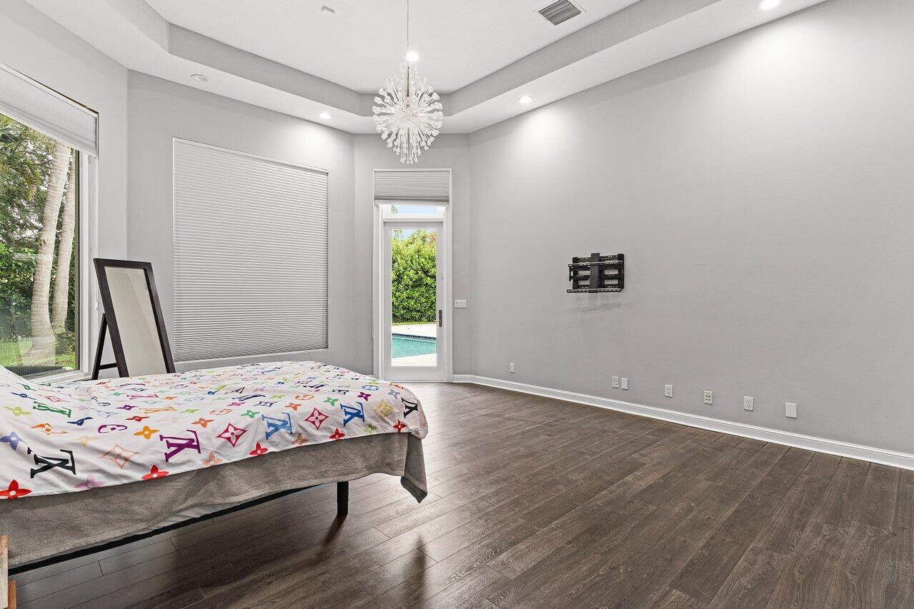 Luxurious Waterfront Estate in Mizner's PreserveWelcome to this exceptional estate, perfectly positioned on a premier cul-de-sac lot with sweeping panoramic water views and ultimate privacy. From the moment you step inside, you're greeted by soaring 30-foot ceilings, gleaming marble floors, and rich bamboo wood accents that define the home's luxurious ambiance. The grand open spaces are designed for both refined entertaining and everyday comfort.Enjoy spa-like indulgence with a serene steam shower and the peace of mind that comes with hurricane-impact windows throughout. The oversized bedrooms offer exceptional space, each providing a tranquil, retreat-like atmosphere.Step outside to your private oasis featuring a newly constructed pool, complete with a stunning jacuzzi.
