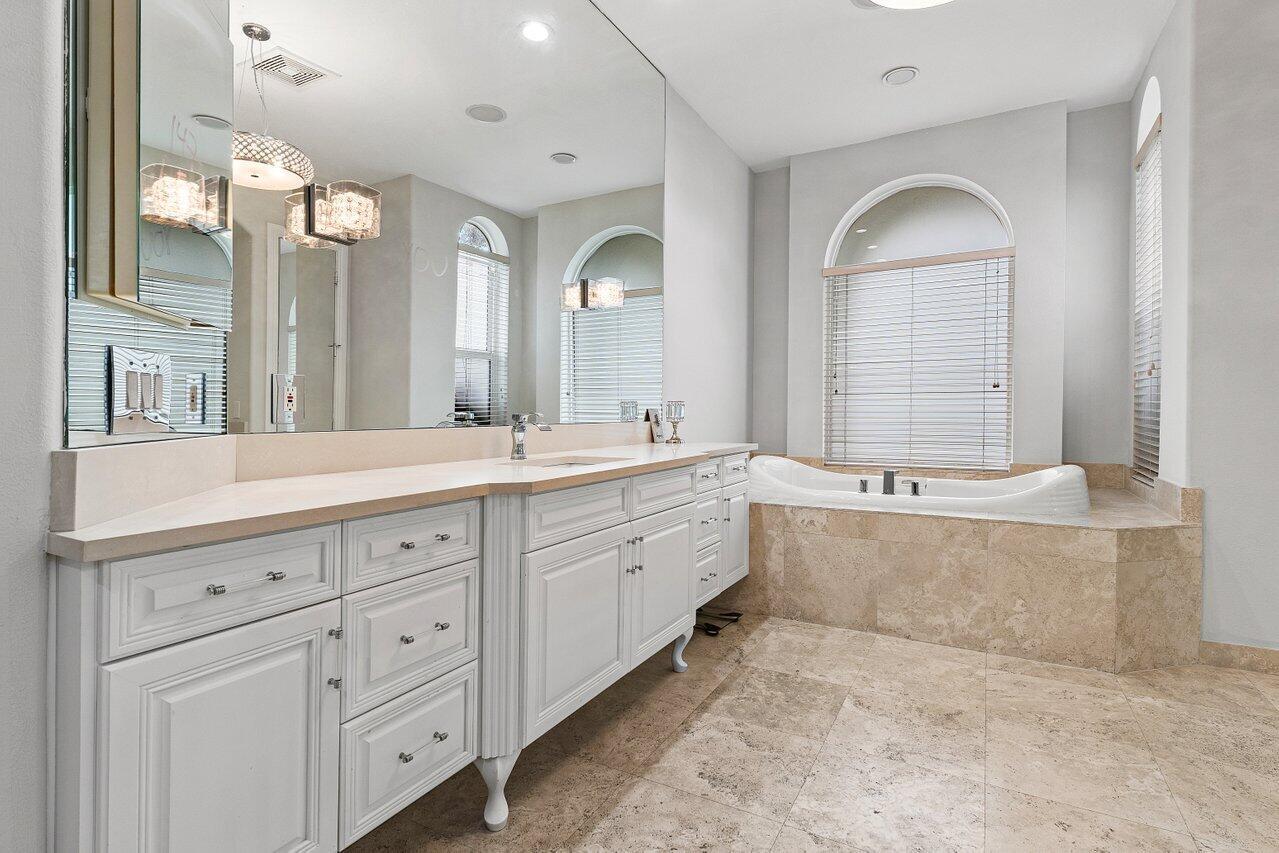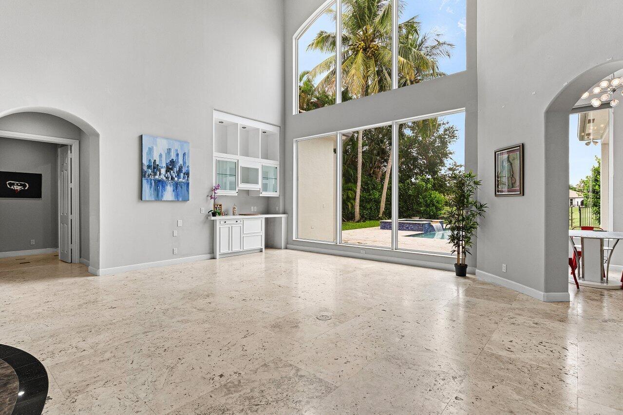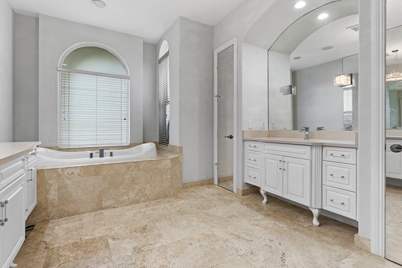 Luxurious Waterfront Estate in Mizner's PreserveWelcome to this exceptional estate, perfectly positioned on a premier cul-de-sac lot with sweeping panoramic water views and ultimate privacy. From the moment you step inside, you're greeted by soaring 30-foot ceilings, gleaming marble floors, and rich bamboo wood accents that define the home's luxurious ambiance. The grand open spaces are designed for both refined entertaining and everyday comfort.Enjoy spa-like indulgence with a serene steam shower and the peace of mind that comes with hurricane-impact windows throughout. The oversized bedrooms offer exceptional space, each providing a tranquil, retreat-like atmosphere.Step outside to your private oasis featuring a newly constructed pool, complete with a stunning jacuzzi.