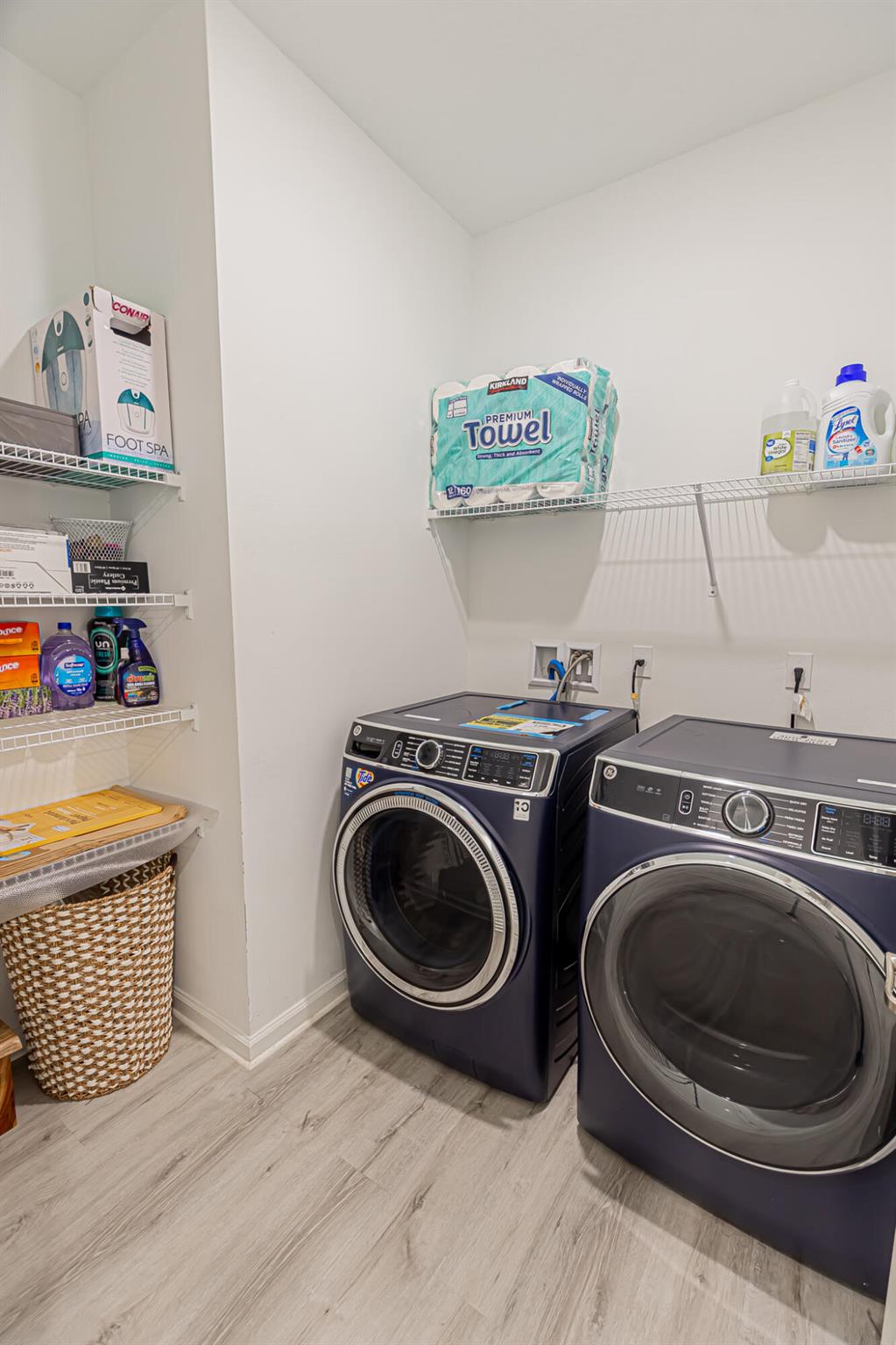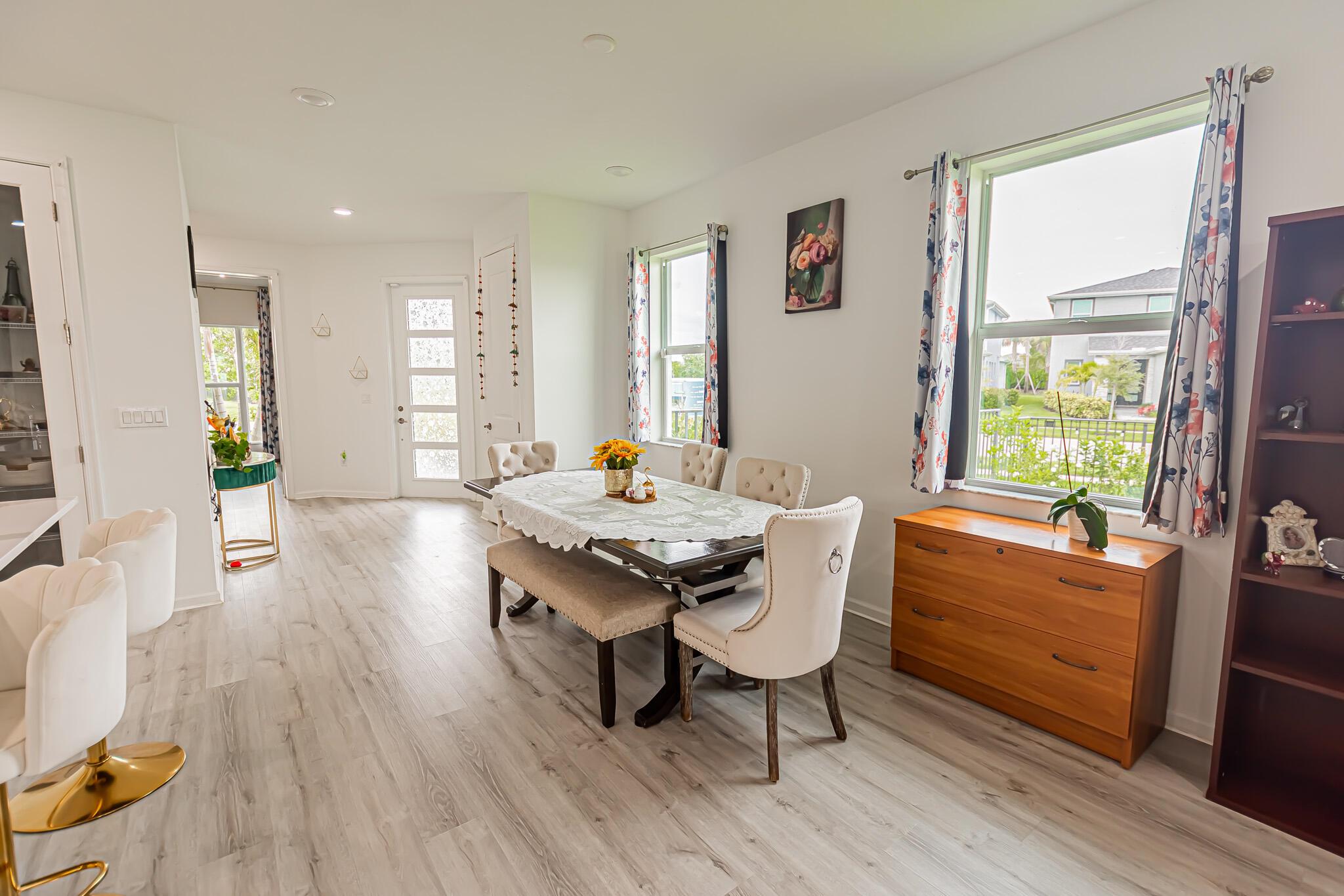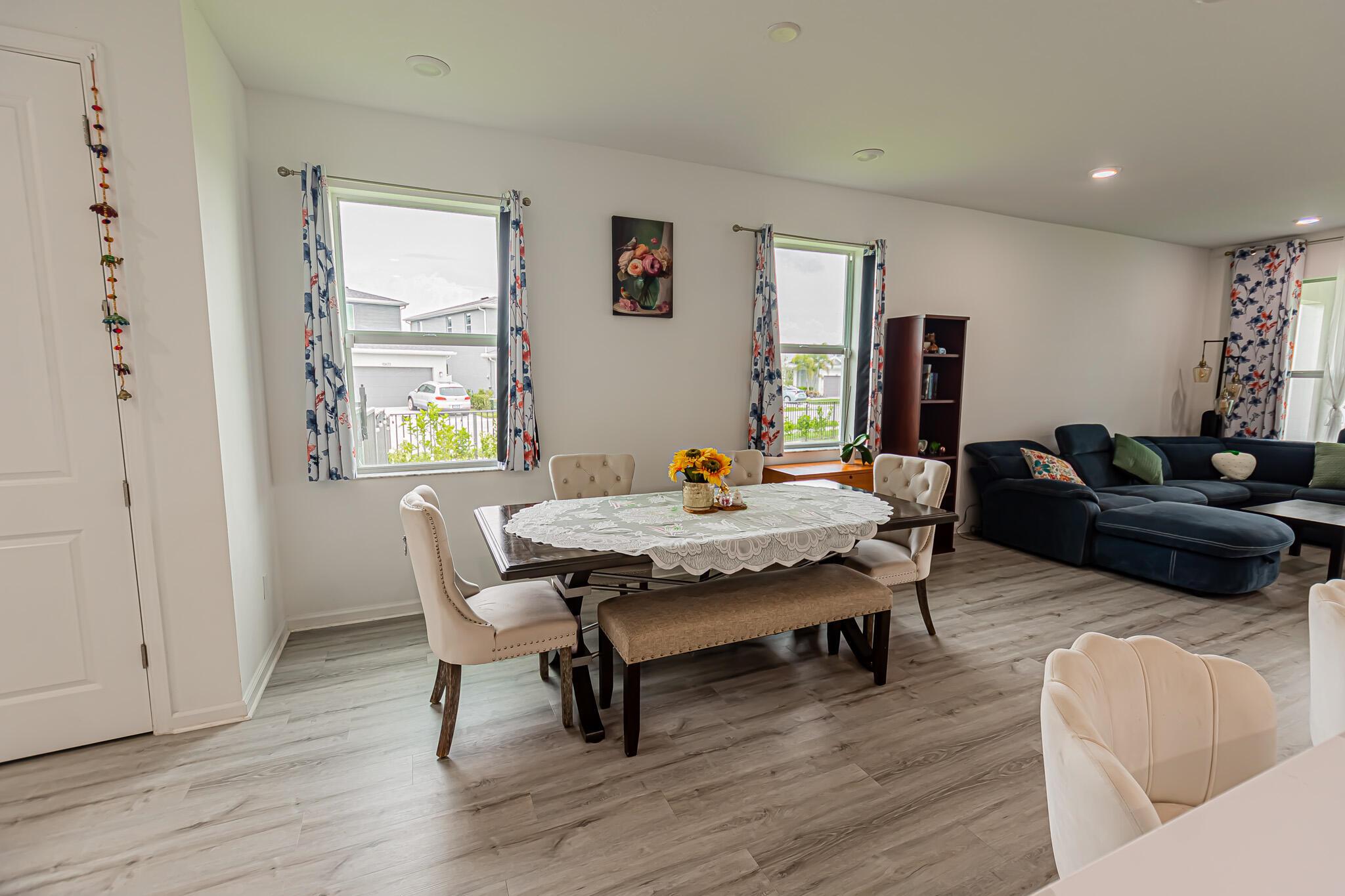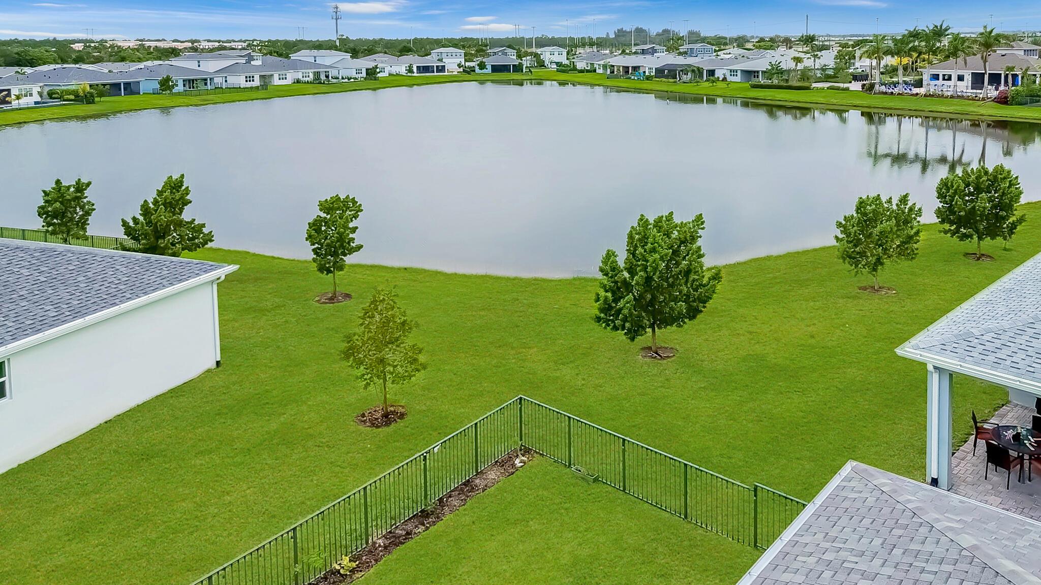 Emery at Tradition! Almost new 2/2/2 with Flex Room (easy 3rd bedroom) home is ready now! Oversized corner lot, fenced yard with covered lanai. Interior features tile and LVT flooring throughout. Open floor plan upgraded Kitchen with quartz counters, plenty of 42'' cabinets, pantry, gas cooking, vented stove. Whole house water softner system plus reverse osmosis for kitchen, high impact glass. French doors highligh flex room perfect for office, den or family room. HOA dues provide lawn care, cable, internet, community pool, more!