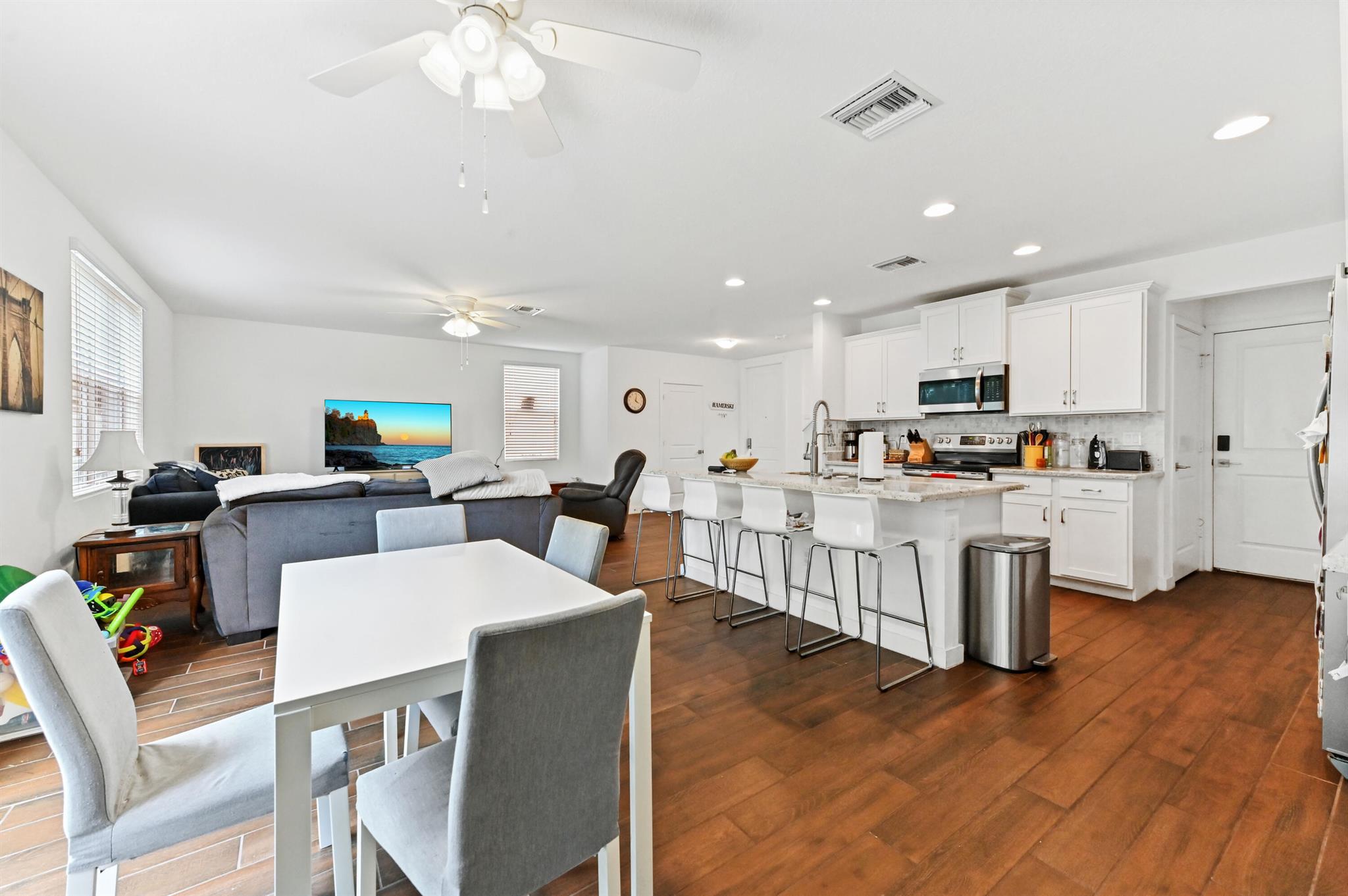 MOTIVATED SELLERS!!! Welcome to this beautifully maintained 2-story home in the desirable Ranchette Royale community built in 2019. Offering 2,078 sq ft of living space. This residence features 4 bedrooms, 2 full and 1 half bathrooms, perfectly designed for comfortable family living. The entry-level living area features an inviting open layout with stunning flooring throughout the living room, family room, and kitchen. The bedrooms are cozy, complete with carpeted floors for added comfort.The kitchen is a chef's delight, equipped with a convenient island featuring a single faucet and bar seating ideal for casual dining or entertaining.