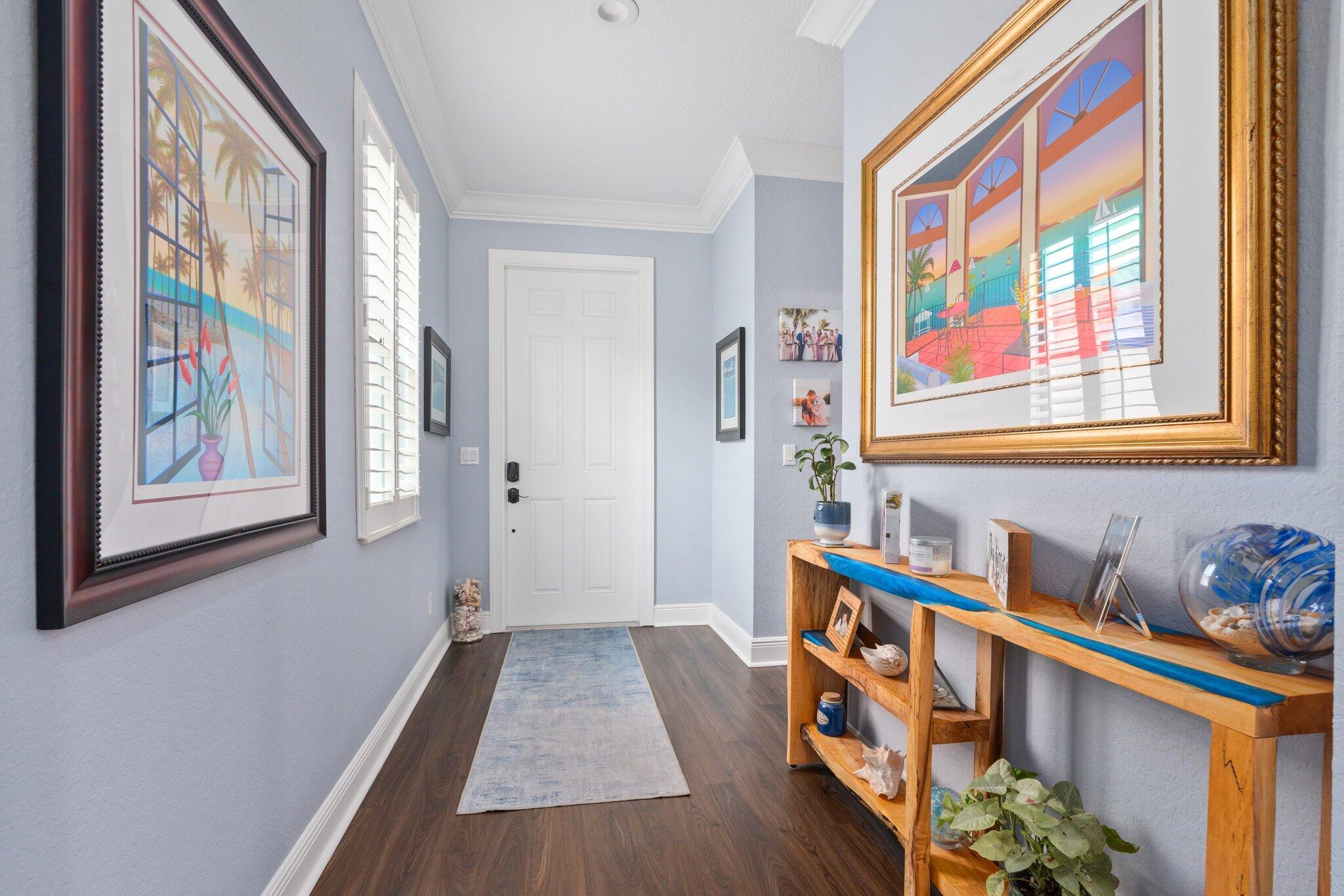 Fall in love with this perfect family home. This 3 bed, 3 bath, 2-car garage pool home is located in the highly sought-after gated community of Visconti. This light-filled home offers the open concept layout everyone desires, with a gourmet kitchen featuring custom 42'' cabinets with crown molding, soft-close drawers, a large pantry, quartz countertops, stainless steel appliances, and an oversized island with deep sink--perfect for entertaining. The luxurious primary suite boasts tray ceilings, a spacious walk-in closet, and a spa-like bath with dual vanities and a walk-in shower. Upstairs, a private bonus bedroom with full bath. Enjoy upgrades galore: impact glass, plantation shutters, designer lighting, crown molding, and an extended paver driveway.