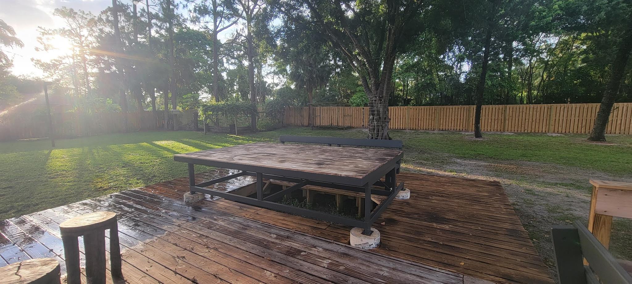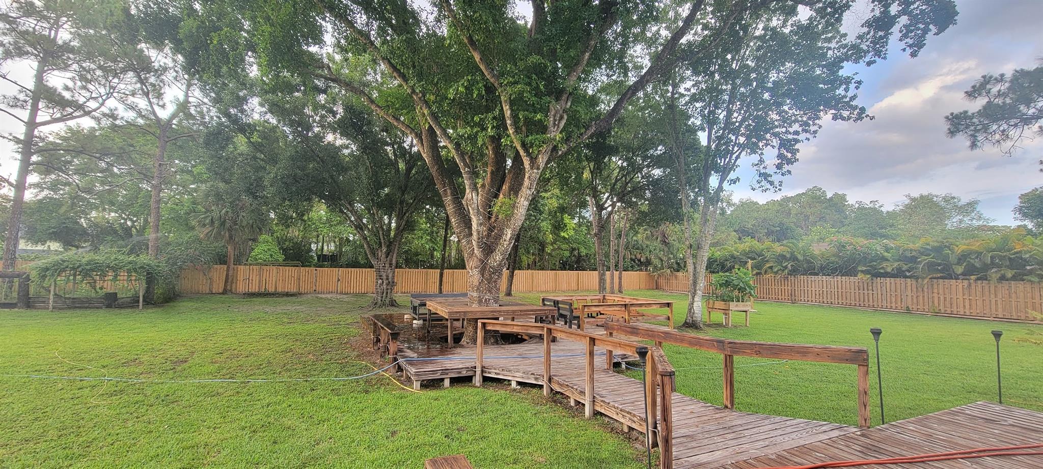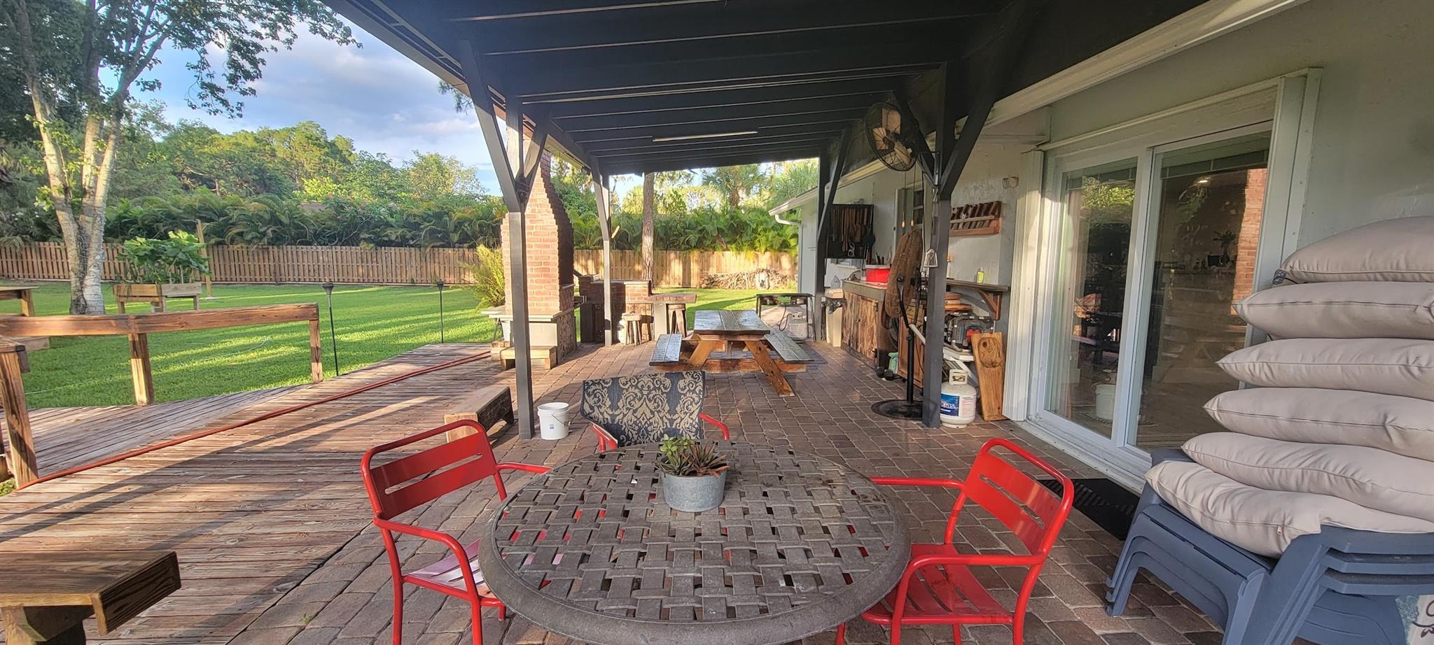 Beautiful single family home featuring 3 bedroom 2 bathroom with 2 car garage, circular driveway, in a 1.25 acres of land. This property has new wood fence on the sides, back, and aluminum fence in the entire front with two electronic gates with remote control and a directory box to get access for visitors. Accordion hurricane shutters, roof is 8 years old, water filtration system for well with the latest technology, air conditioning has been installed 4 years ago with 3.5 tons, circular driveway completely filled with rocks with cement. Backyard wood decks, outdoor lighting, barbecue built in, patio with sink. Gourmet kitchen, brand new Cafe refrigerator and range. Renovated bathrooms, ceramic floors throughout. New washer and dryer . Come visit this beauty! Less than 1 mile from 441.