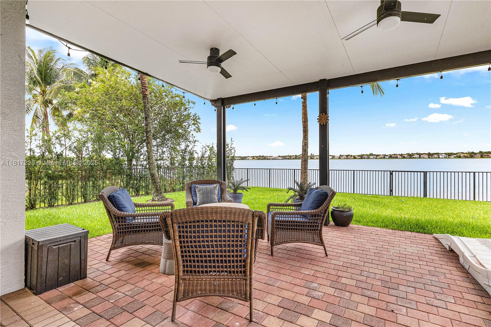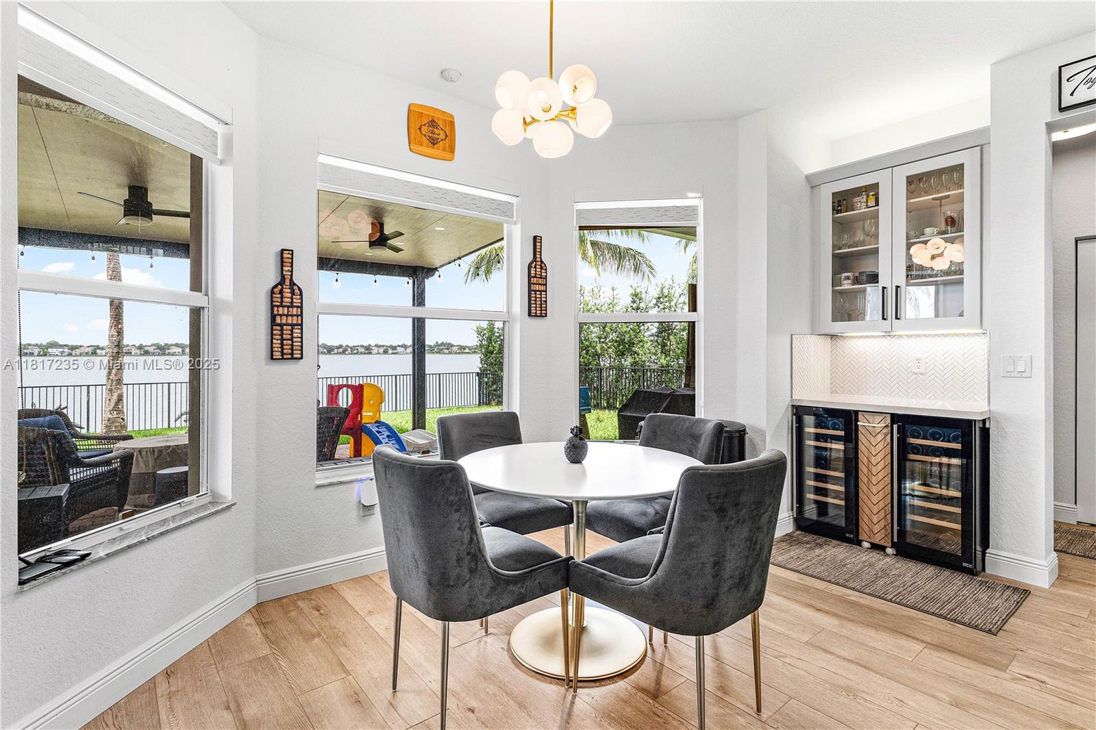Waterfront Sunset Falls home. Two Story home w/lake views from most every window. Featuring newly remodeled contemporary kitchen cabinetry & appliances, island quartz waterfall top, new flooring throughout, new water heater + freshly painted. This home is designed w/open concept kitchen, breakfast nook & family room. Formal living room & dining room. Main floor guest bedroom & bath. Upper-level Master Bedroom w/separate sitting area, 2 large walk-in closets, his/hers baths w/germ resistant door hardware, oversized lake view balcony. Upper Laundry. Fully fenced lakefront yard w/outdoor extended covered waterfront gathering area w/room for outdoor kitchen. Outdoor BUG Swat System. Roof Maintained. Sunset Falls is prof. managed w/amenities, resort style poos, tennis, basketball, fitness.