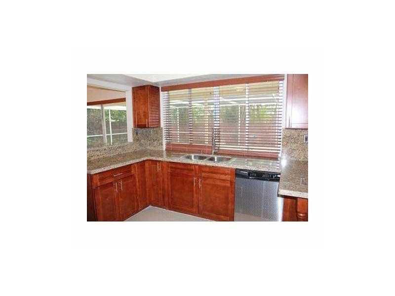 Spacious and bright home with screen enclosed pool. Fully updated with large porcelain floors throughout and wood flooring in bedrooms. Family room currently used as 4th bedroom. New kitchen with granite countertop and wood cabinets, Bathrooms with new va nities & granite countertops. Garage tastefully converted to in-law quarters with a half bath - owner willing revert to garage or give credit at closing. Large storage shed included in sale.