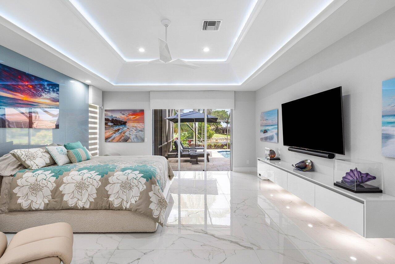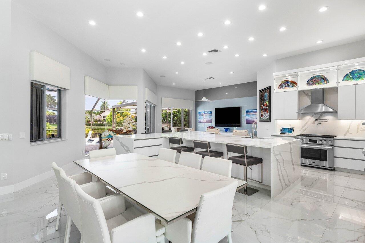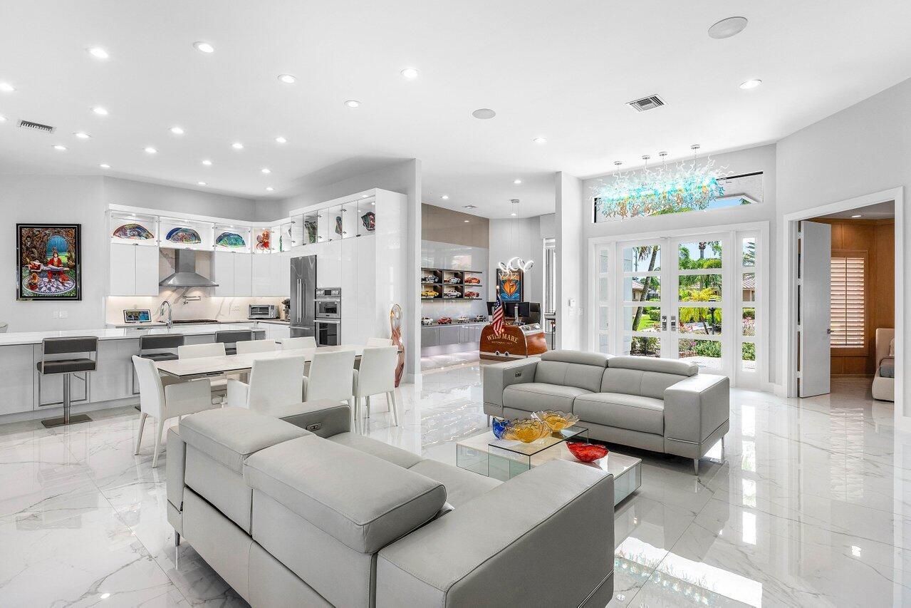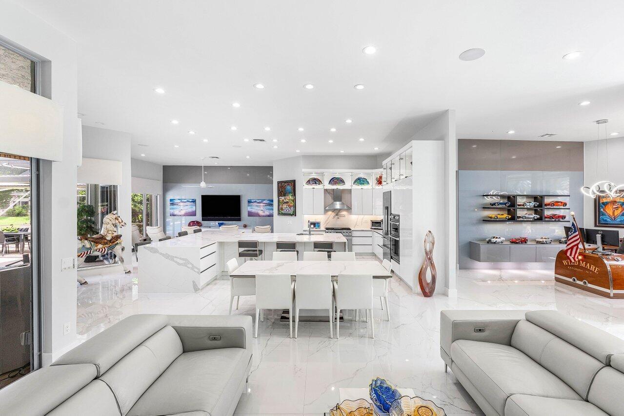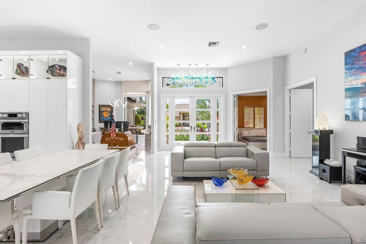 Welcome to this exquisitely renovated four-bedroom three bath luxury residence nestled in the heart of the sought-after Stonebridge Country Club. This is an opportunity to acquire a ''move-in, nothing needed'' home. Meticulously updated inside and out over the past two years ago with no expense spared, this elegant home blends timeless sophistication with modern comforts, offering the finest in South Florida living. From the moment you step inside, you're greeted by expansive living spaces adorned with designer porcelain tile flooring throughout. New custom cabinetry including floating cabinets with under lighting were installed in every room, providing the clean minimalist look awaiting your personal touch for accents.