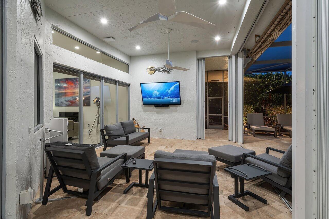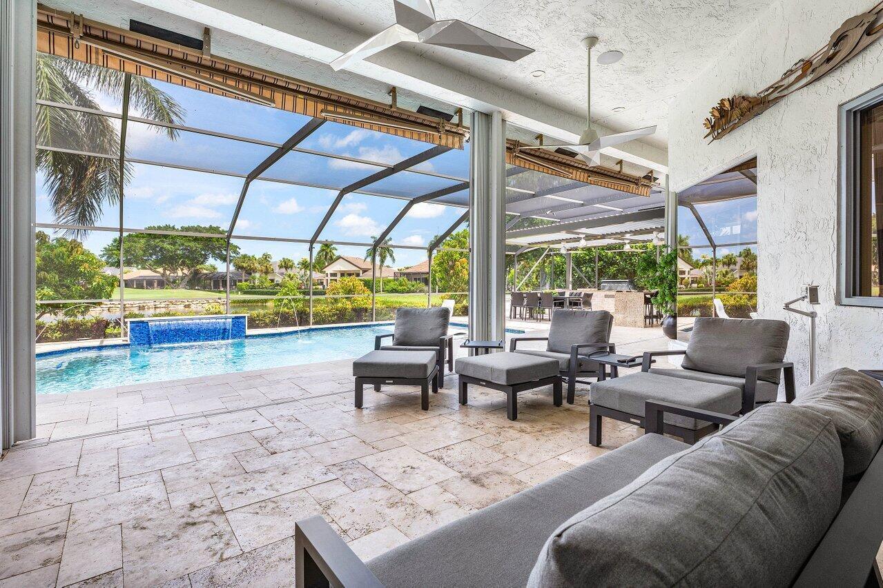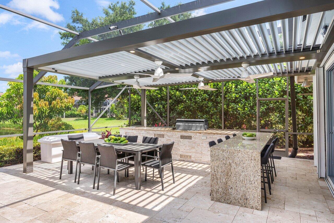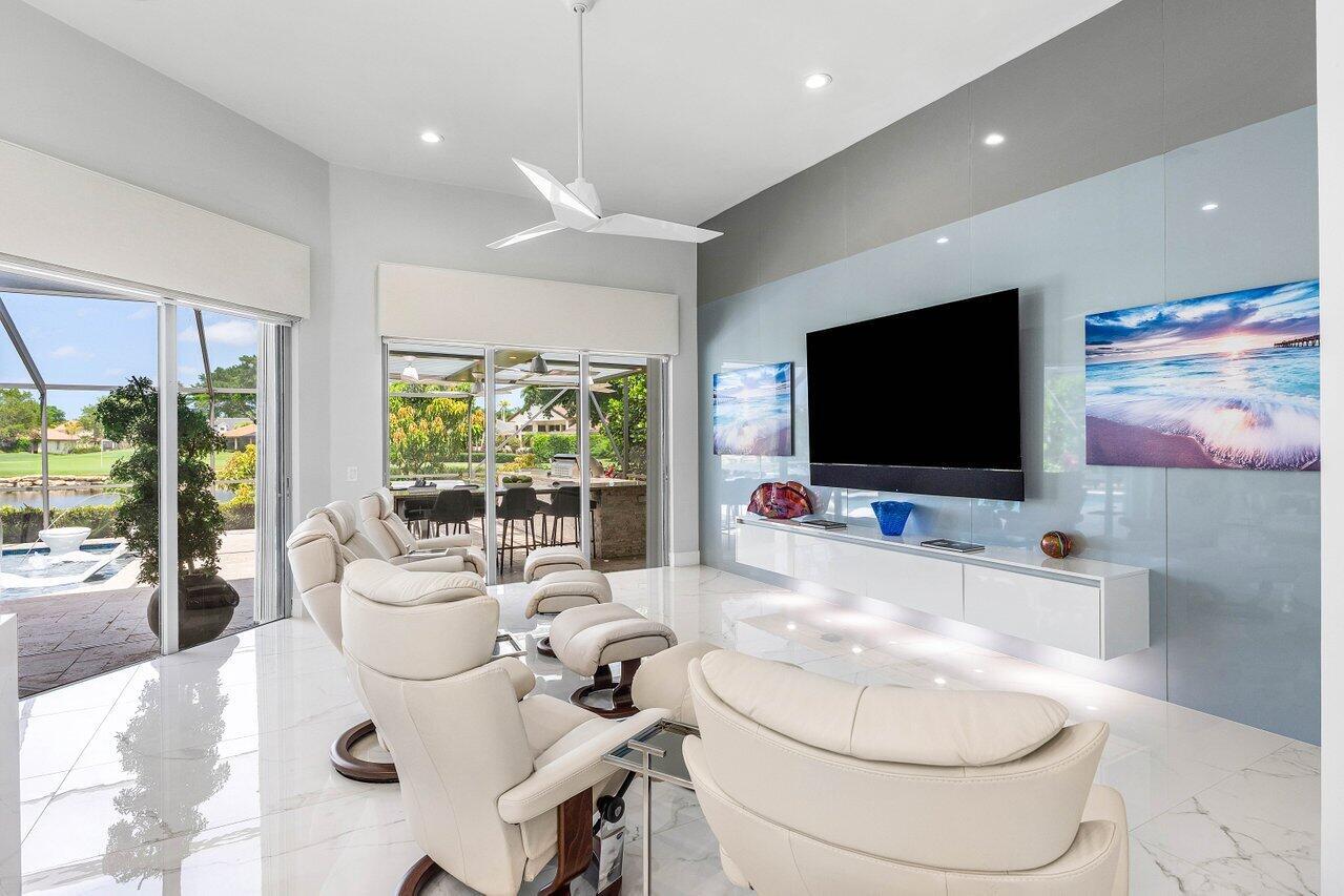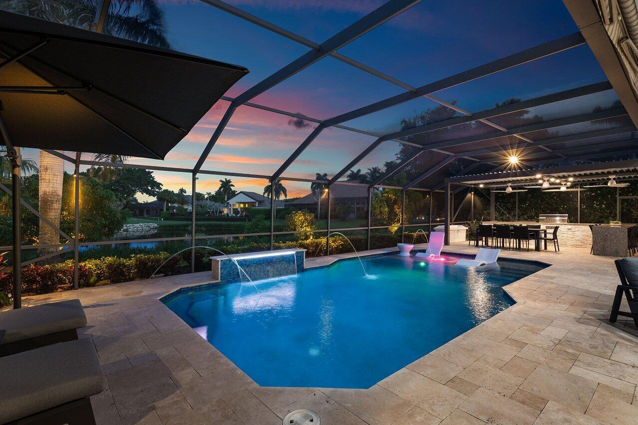 Welcome to this exquisitely renovated four-bedroom three bath luxury residence nestled in the heart of the sought-after Stonebridge Country Club. This is an opportunity to acquire a ''move-in, nothing needed'' home. Meticulously updated inside and out over the past two years ago with no expense spared, this elegant home blends timeless sophistication with modern comforts, offering the finest in South Florida living. From the moment you step inside, you're greeted by expansive living spaces adorned with designer porcelain tile flooring throughout. New custom cabinetry including floating cabinets with under lighting were installed in every room, providing the clean minimalist look awaiting your personal touch for accents.
