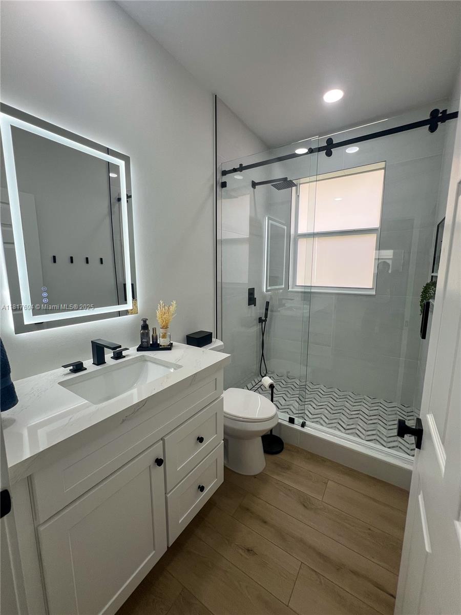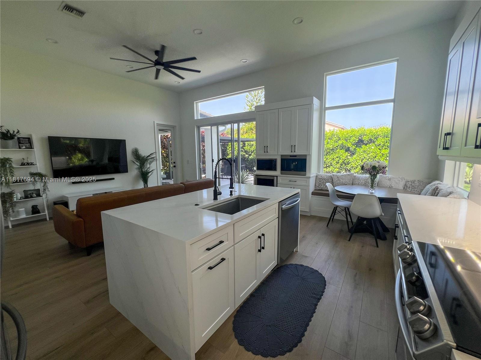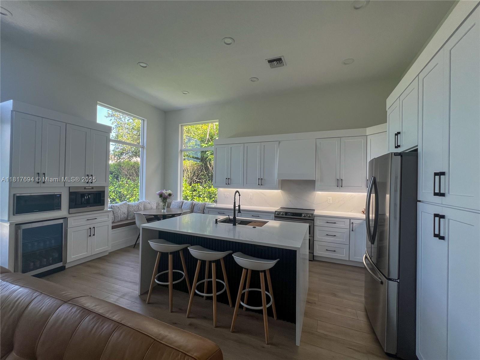 Stunning fully renovated 3BR/2BA home in sought-after Parkland with top-rated schools. Features a flexible extra room—perfect as a 4th bedroom, office, or playroom. Open-concept layout with brand-new kitchen including quartz countertops, waterfall island, built-in coffee maker & cozy breakfast nook. Spacious primary suite with 10-ft barn door, modern slat accent wall, and spa-like bathroom. Home includes new roof, impact windows/doors, new A/C unit, and finished garage. One bedroom includes built-in office. Large backyard with covered patio & modern pergola—ideal for entertaining. Better than new construction, turnkey, and move-in ready