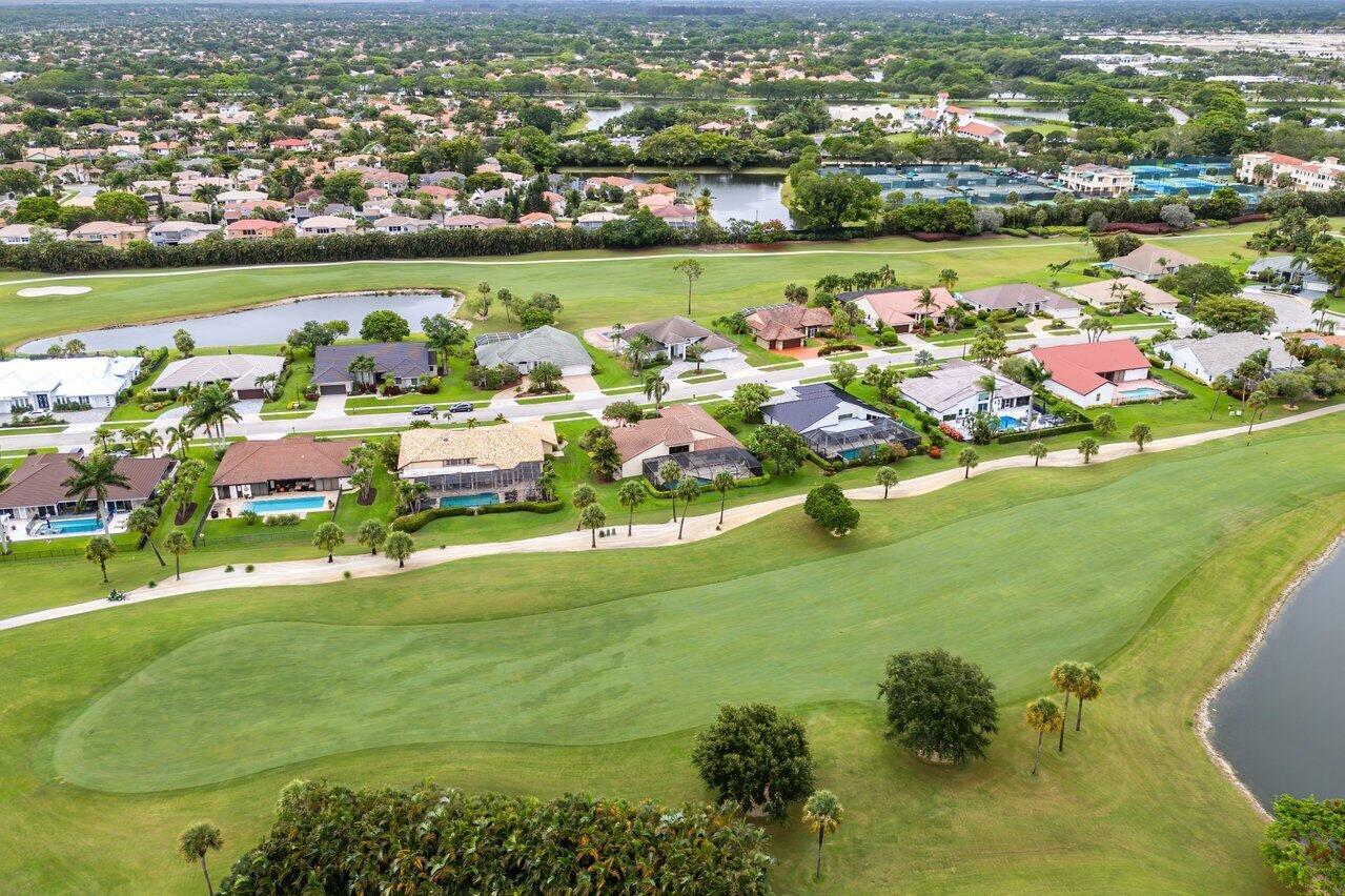 Spectacular golf course views from this 2-bedroom, 3.5-bath home featuring two expansive primary suites and a versatile office/den that can easily serve as a third bedroom. The open-concept layout boasts soaring 16-ft ceilings and dramatic double-height windows, flooding the home with natural light. Additional features include a separate golf cart entrance, two-car garage, laundry room, and a generous lot with mature fruit trees and panoramic fairway views. Roof replaced in 2018. Boca Woods Country Club Community offers resort style amenities, including two championship golf courses, Har Tru tennis courts, pickleball courts, state of the art fitness center, spa, game room, fully renovated clubhouse with fine dining and much more! Mandatory Country Club membership required $120,000.
