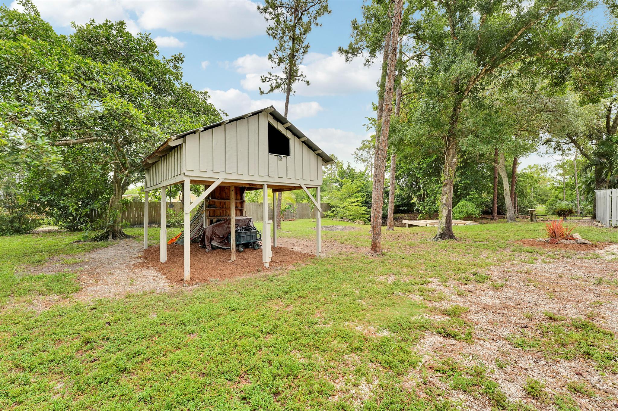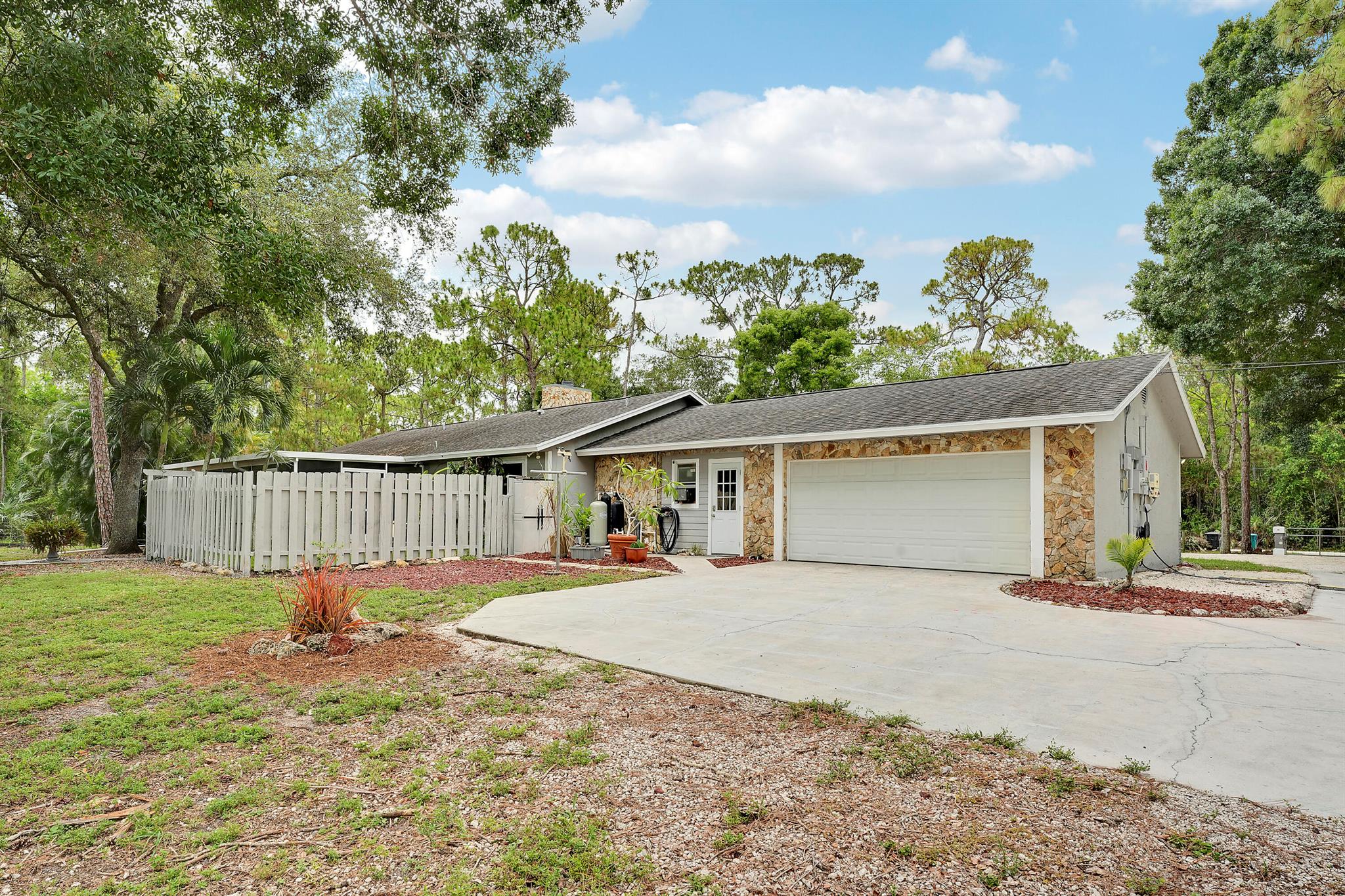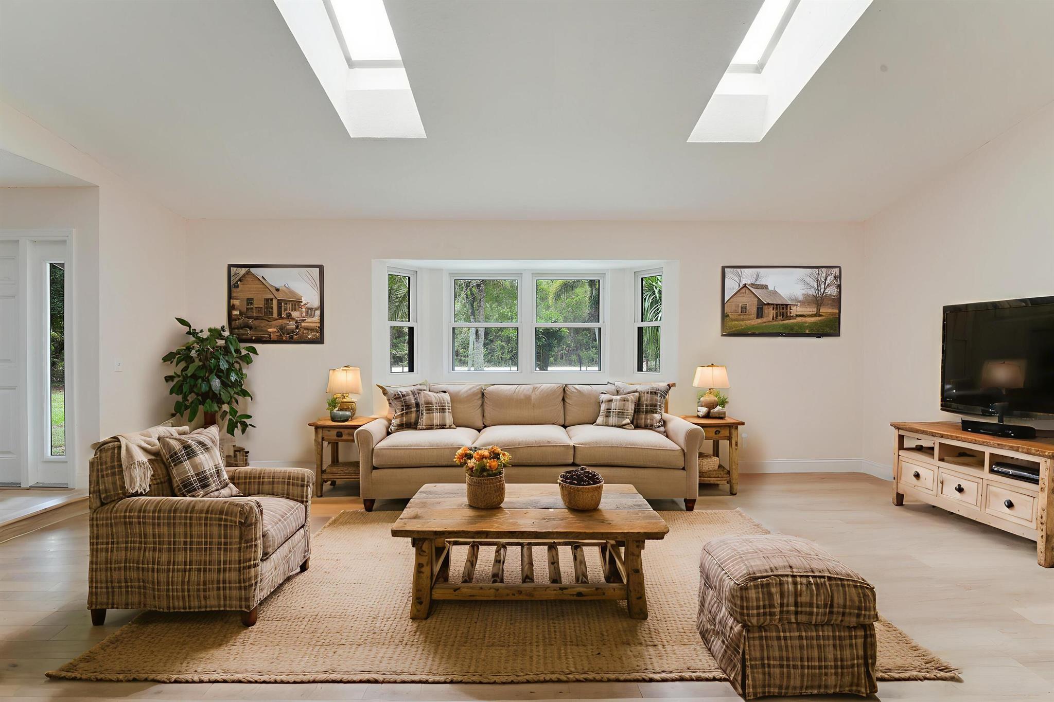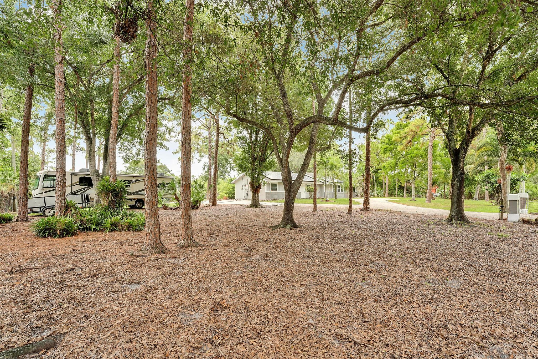 The sellers loves this home, property, and community so much and will be sad to leave it, only moving away to be closer to to their parents/grandparents. You will love the peacocks, ducks and chickens roaming around the neighborhood. You'll love relaxing on the deck next to the pond and hanging out with the turtles and fish. You want tranquility? Here it is. Plus brand new vinyl plank flooring, newer AC, paid for solar panels, as well as newly painted walls and cabinets to give an extra feeling of space and light. Add in the safety of the impact windows and skylights and you'll feel safe and secure inside and out. Huge office, extra large garage, barn, and shed. A gem of a property, the best value in the Acreage, and priced to sell ''UNDER THE APPRAISED VALUE. Make this loved home yours.