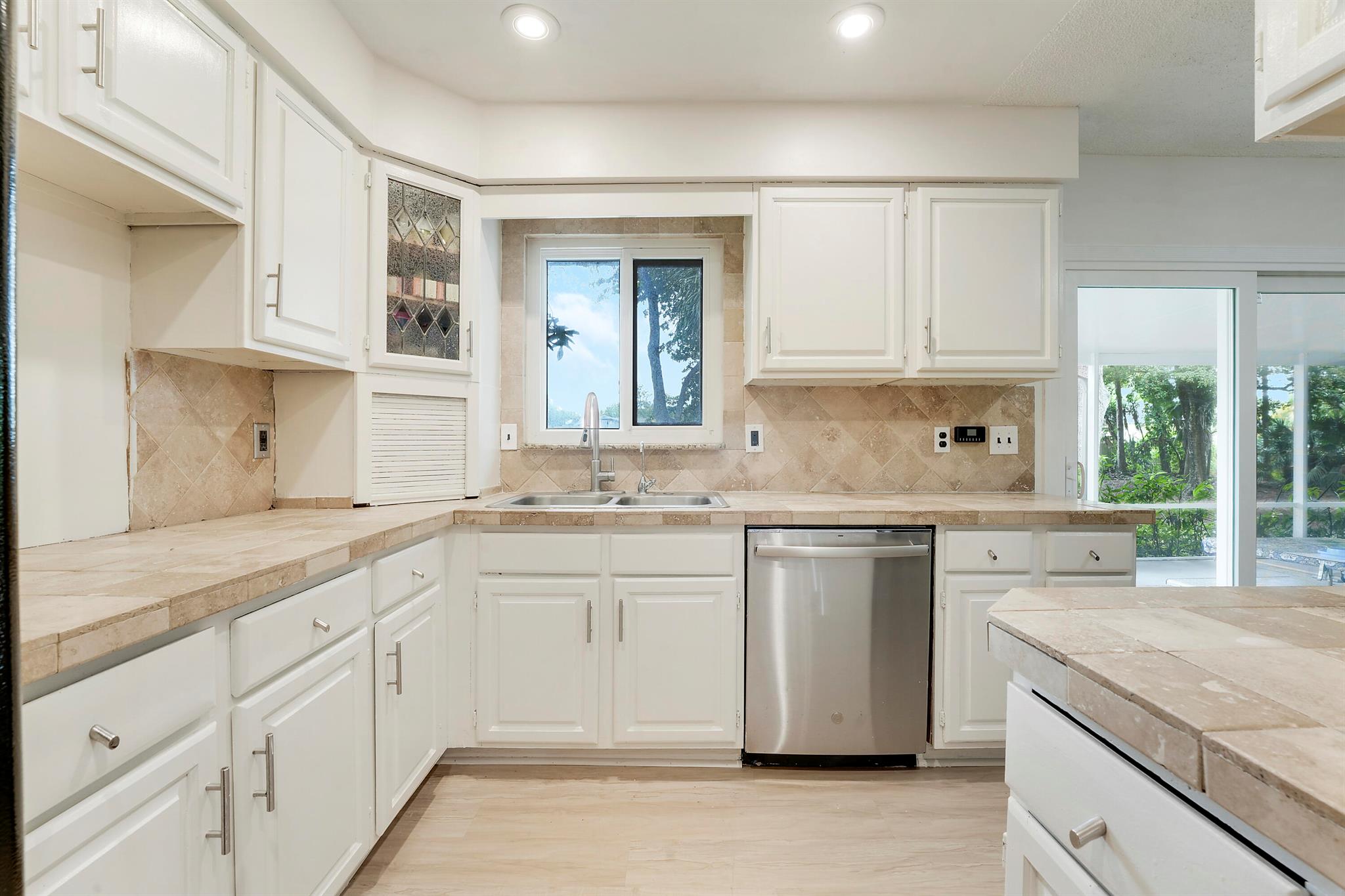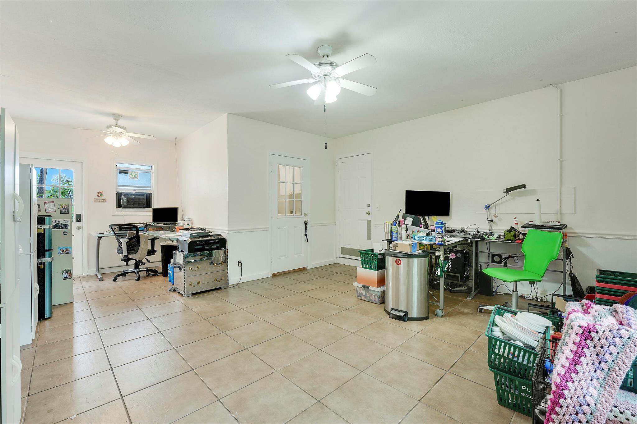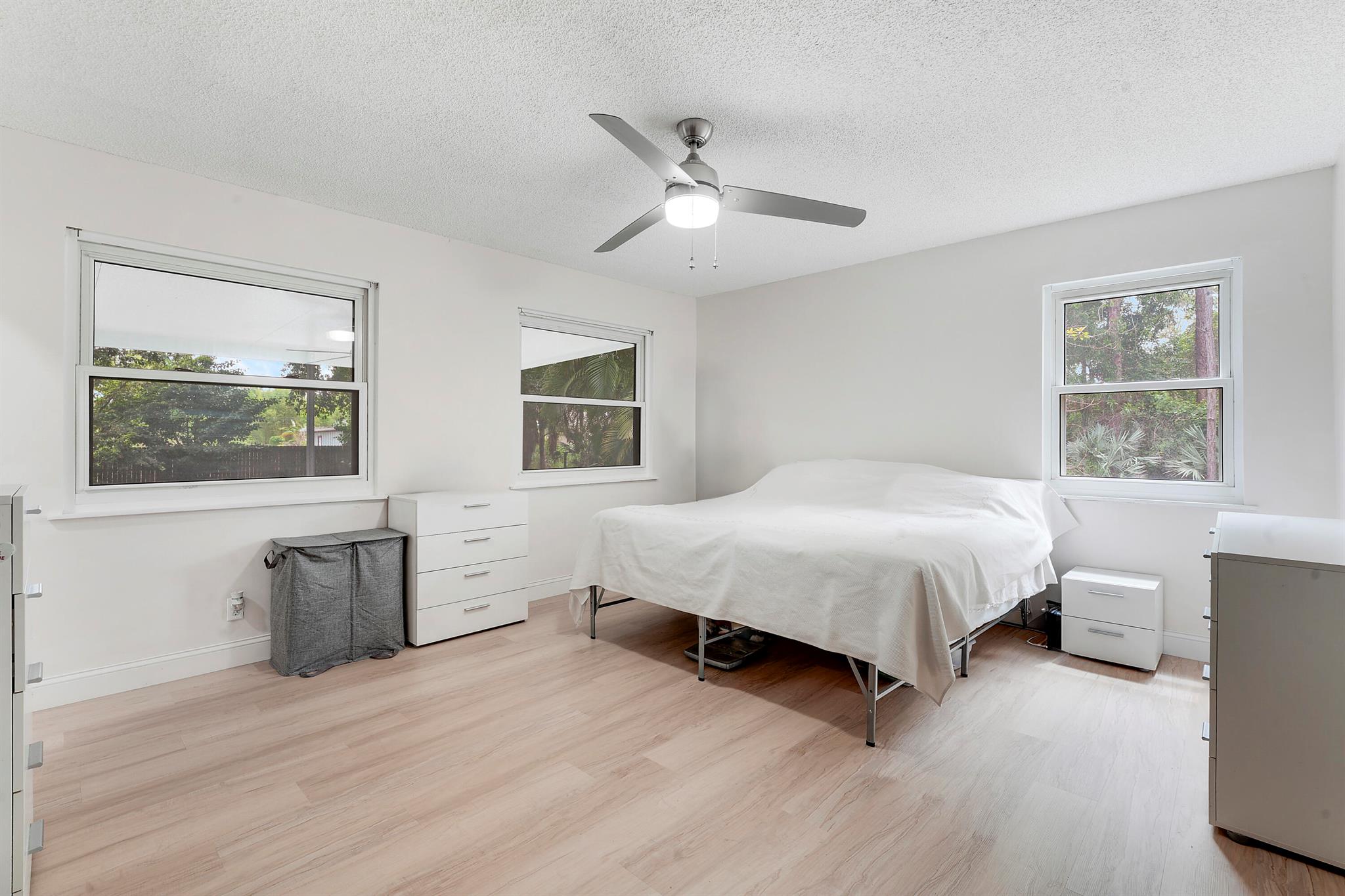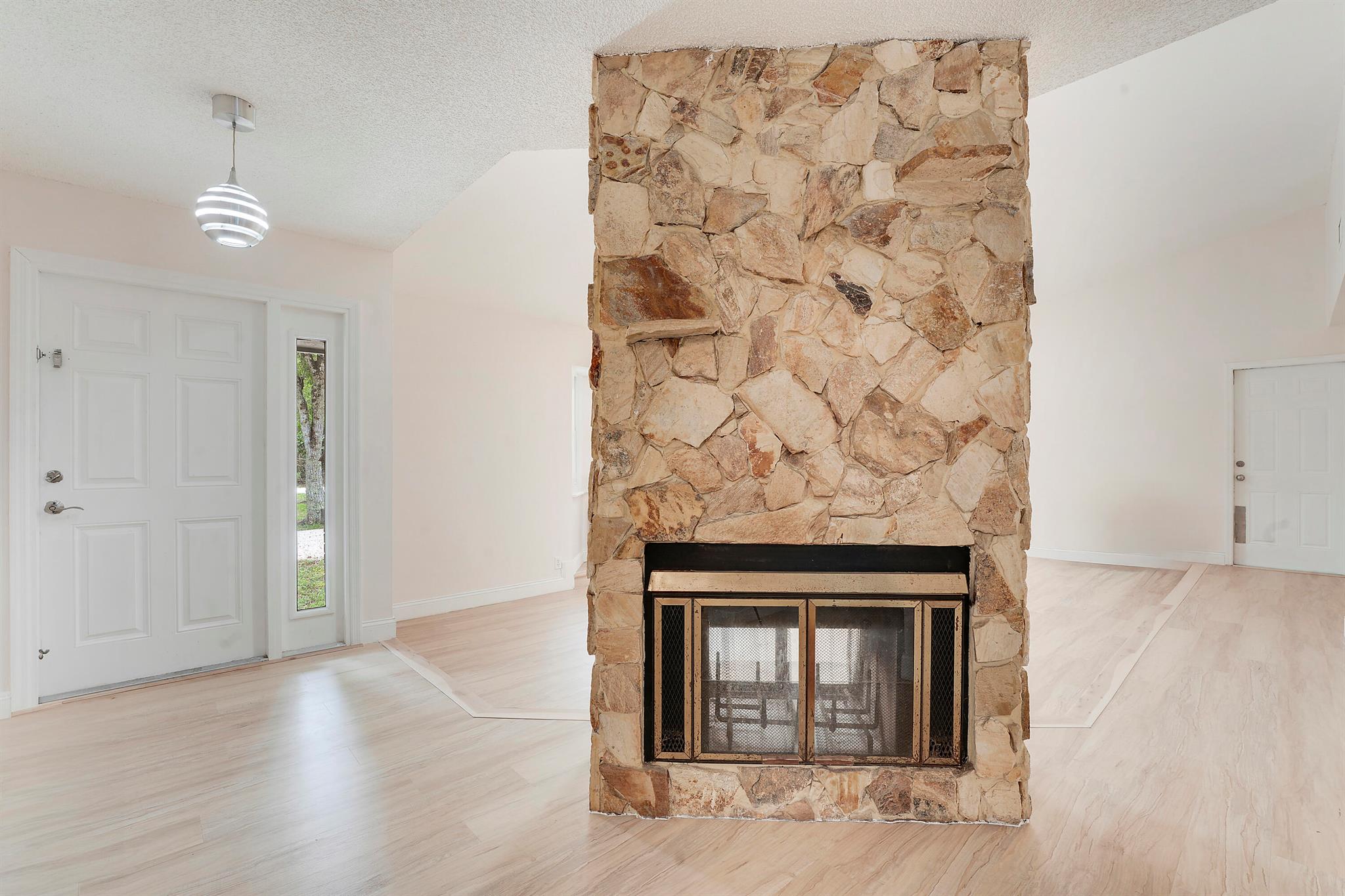 The sellers loves this home, property, and community so much and will be sad to leave it, only moving away to be closer to to their parents/grandparents. You will love the peacocks, ducks and chickens roaming around the neighborhood. You'll love relaxing on the deck next to the pond and hanging out with the turtles and fish. You want tranquility? Here it is. Plus brand new vinyl plank flooring, newer AC, paid for solar panels, as well as newly painted walls and cabinets to give an extra feeling of space and light. Add in the safety of the impact windows and skylights and you'll feel safe and secure inside and out. Huge office, extra large garage, barn, and shed. A gem of a property, the best value in the Acreage, and priced to sell ''UNDER THE APPRAISED VALUE. Make this loved home yours.