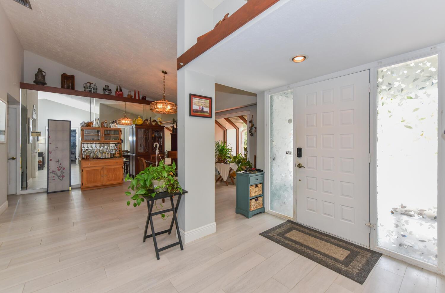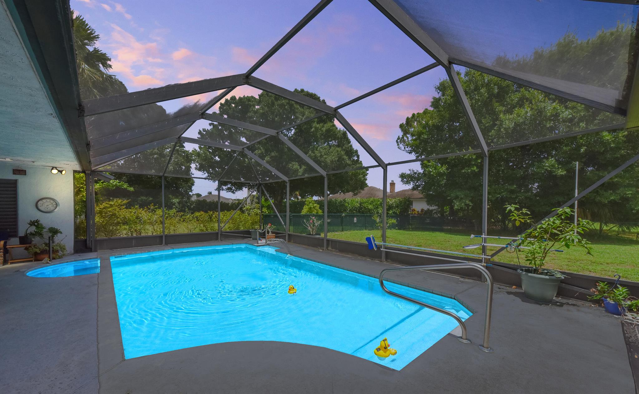 Beautiful Pool home located in the popular Sandpiper Bay area. This home features tile plank flooring, white kitchen cabinets, s/s appliances (2020) & granite counters. The roof & hot water heater were replaced in 2022. The pocketed sliders lead to the pool and spa where you can relax in your private back yard, fully fenced for pets and kids. The yard is chock full of fruit and olive trees. The shed includes electrical power. The home includes generator hookup for a portable generator. New pool pump and new motor for pool heater. Conveniently located close to the Treasure Coast Mall, downtown Jensen, downtown Stuart, & Stuart Beach. Ring doorbell, garage refrigerator & freezer do not convey.
