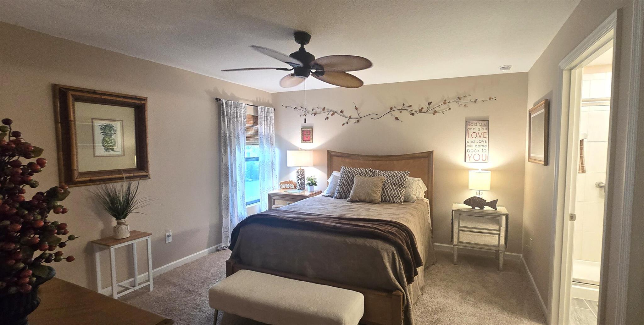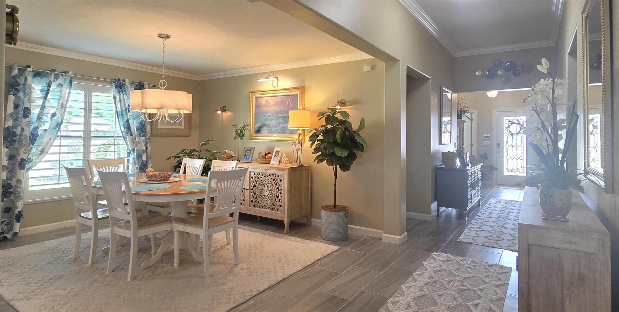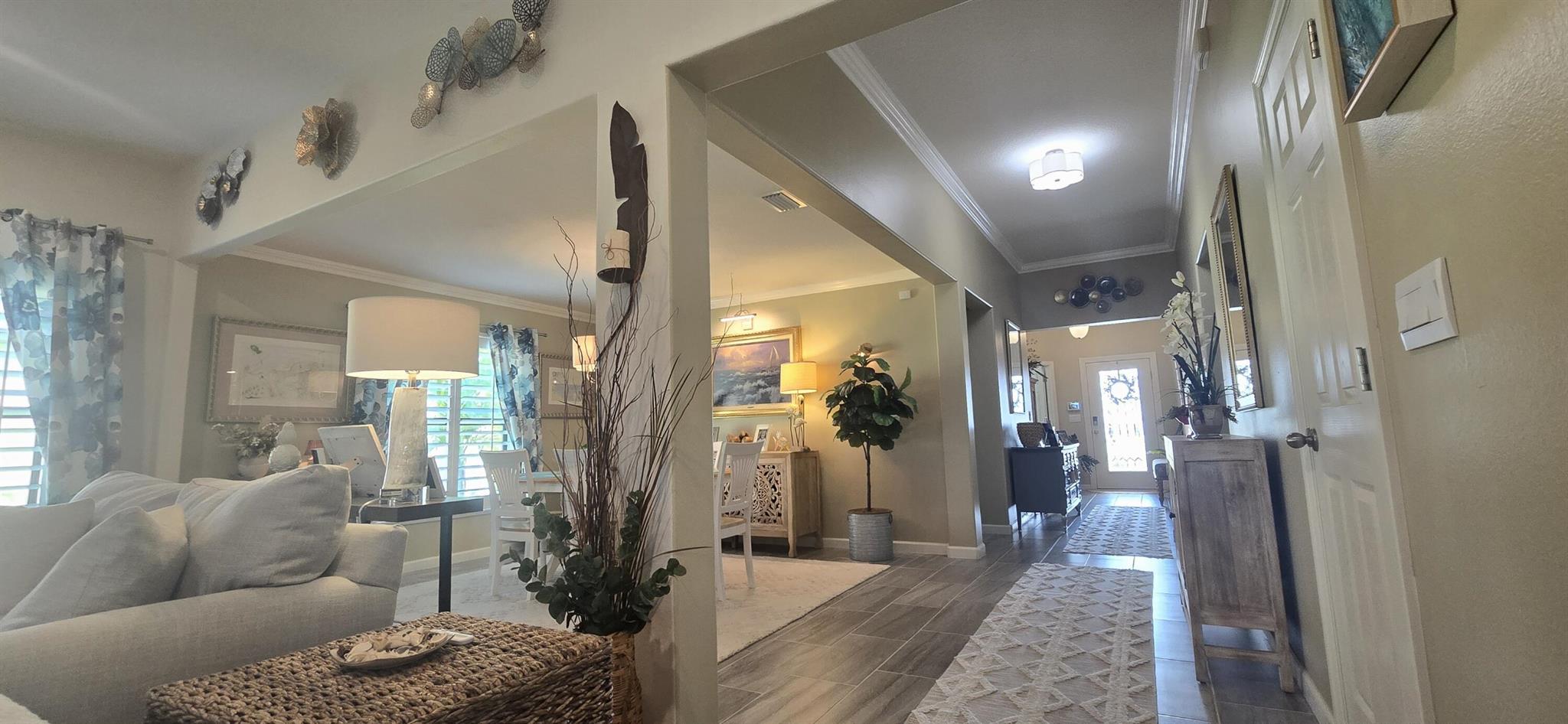 Assumable VA Loan at 3.125%! Incredible opportunity for qualified buyers--significantly below current rates (subject to VA/lender approval). Turn-key gem just 7 miles from Vero Beach's stunning coastline, boutique shopping, dining, and cultural hotspots. Includes private guest suite with separate entrance--ideal for multi-gen living or income. Crown molding, brand-new flooring, and high-end finishes throughout. Lake views from dining and primary suite. Gourmet kitchen with walk-in pantry. Screened lanai, smart security, and upgraded electrical round out this exceptional home.