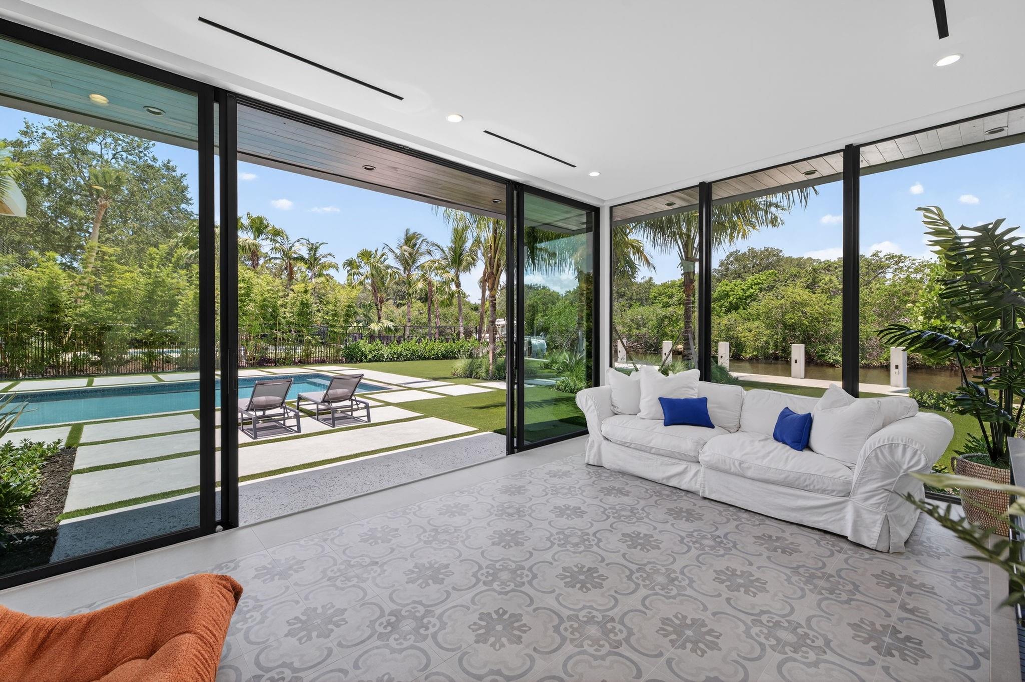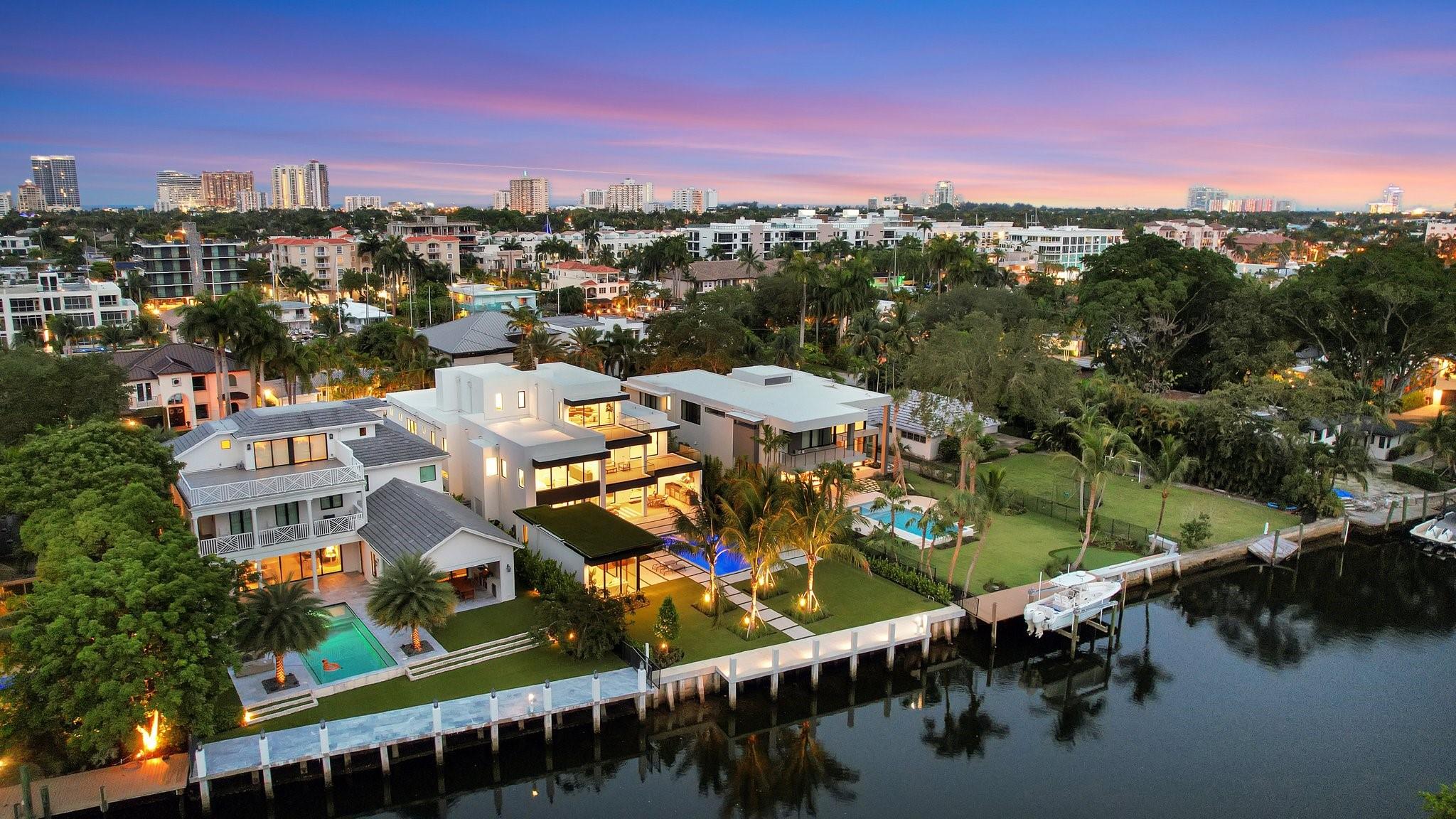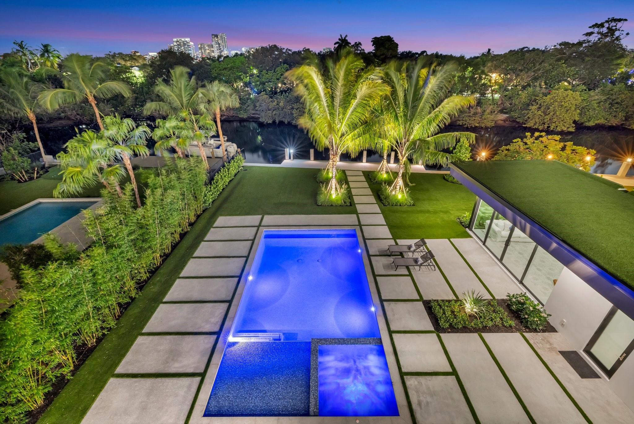 Extraordinary & unique waterfront residence newly completed by Gulf Building & move-in ready! Enjoy rare large 14,443 sf property with peace & tranquility of park-like setting on wide waterway, allows privacy to pool area & residence. Views overlook waterway, mangroves & park. Enjoy close by Anne Beck park & Las Olas. Villa Stranahan offers highly innovative 3 level floorplan plus a totally separate pool pavilion (perfect office/gym/guest house). Multiple indoor-outdoor entertaining areas, covered terrace & Summer kitchen. Many custom features. Chef's kitchen, butler's pantry, great room, separate media/club room, fabulous primary suite, separate closets. Entire 3rd level guest/entertaining area, elevator access & large private balcony. Newer concrete sea wall/dock.