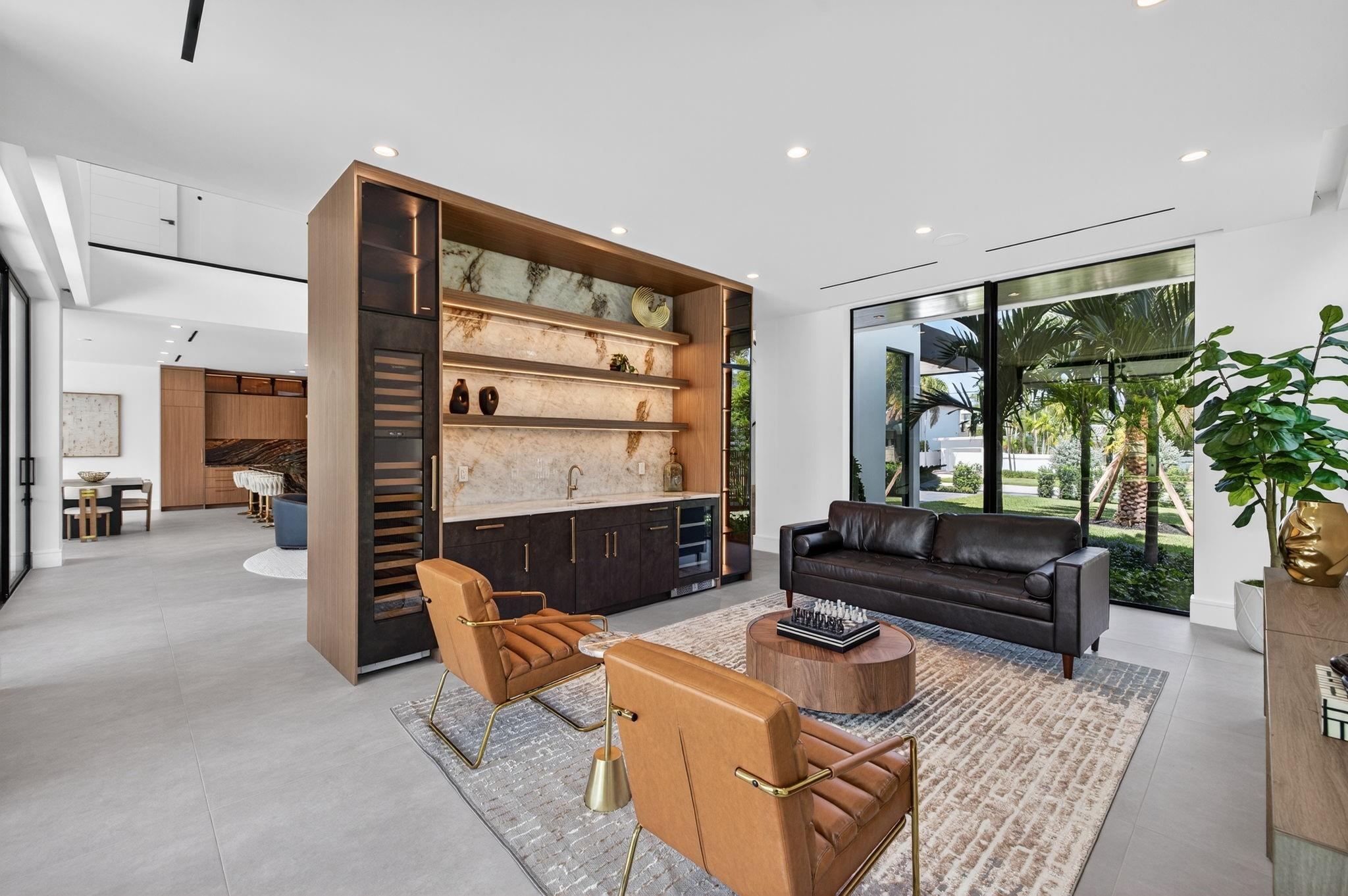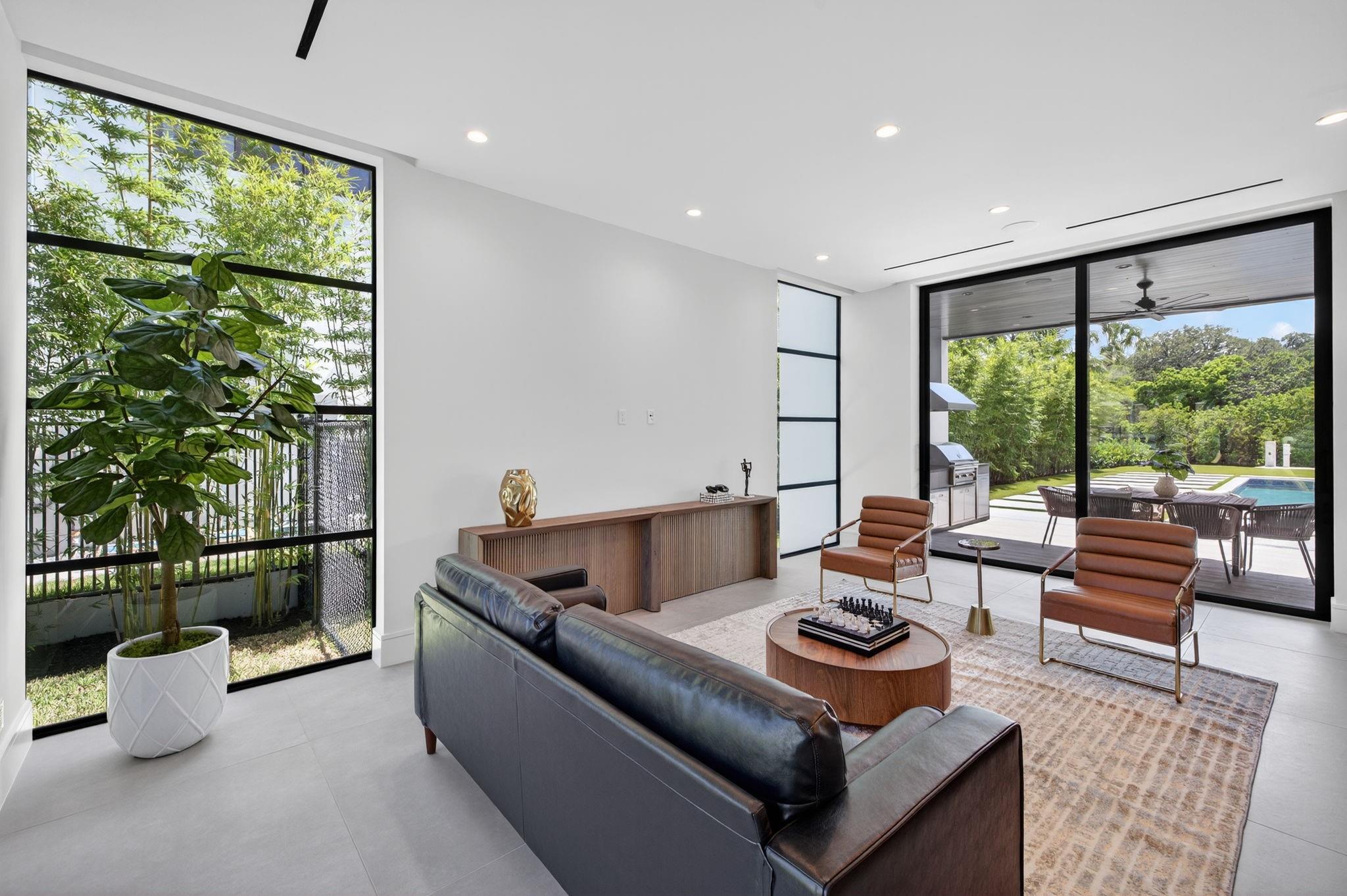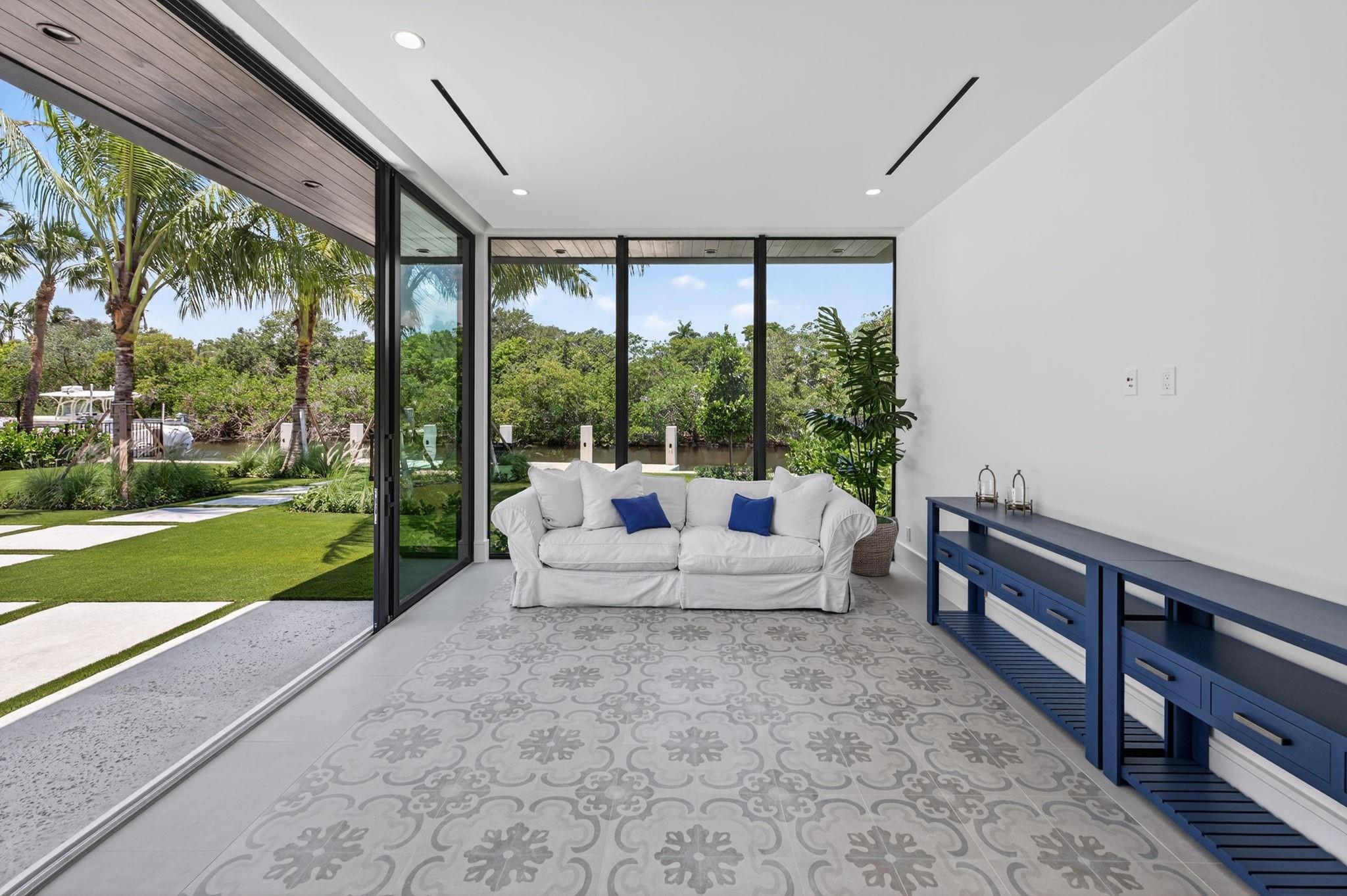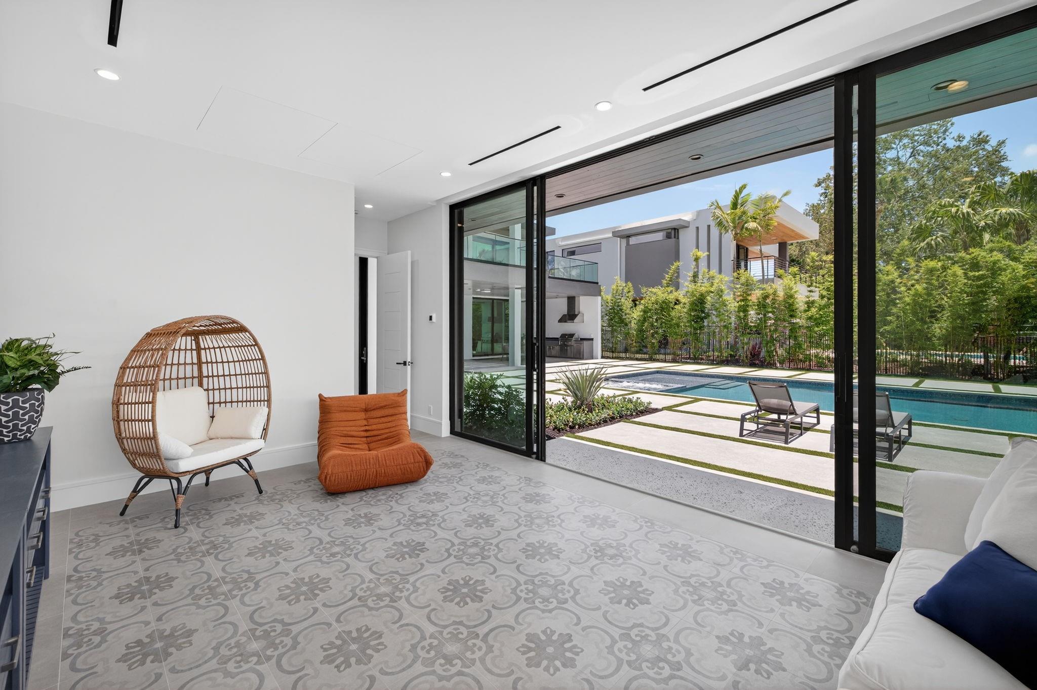Extraordinary & unique waterfront residence newly completed by Gulf Building & move-in ready! Enjoy rare large 14,443 sf property with peace & tranquility of park-like setting on wide waterway, allows privacy to pool area & residence. Views overlook waterway, mangroves & park. Enjoy close by Anne Beck park & Las Olas. Villa Stranahan offers highly innovative 3 level floorplan plus a totally separate pool pavilion (perfect office/gym/guest house). Multiple indoor-outdoor entertaining areas, covered terrace & Summer kitchen. Many custom features. Chef's kitchen, butler's pantry, great room, separate media/club room, fabulous primary suite, separate closets. Entire 3rd level guest/entertaining area, elevator access & large private balcony. Newer concrete sea wall/dock.