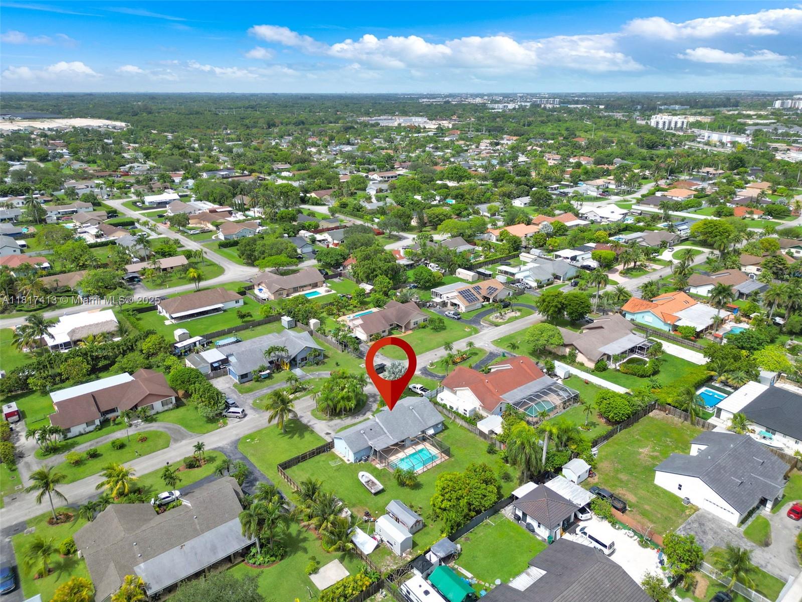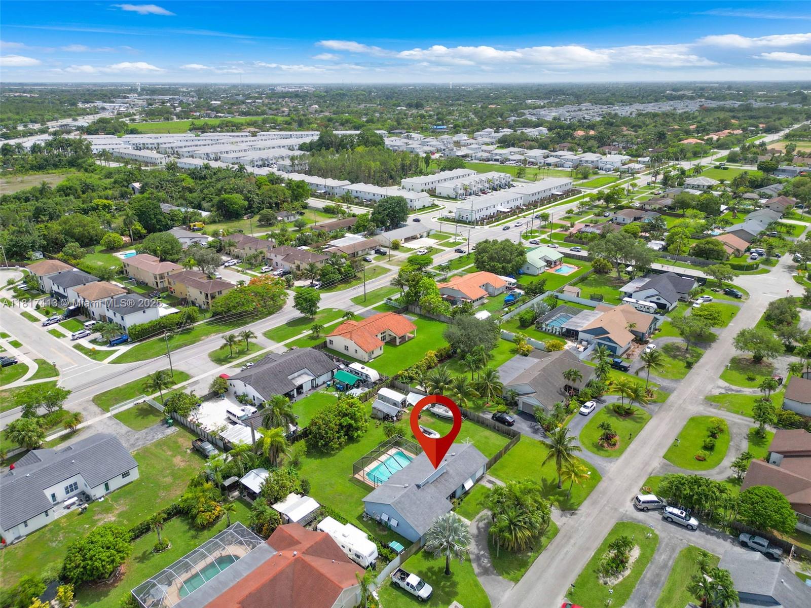 Well-kept 3-bed, 2-bath home in a peaceful Homestead neighborhood on a 1/4+ acre lot. Features a screened-in pool, updated kitchen with modern finishes, and split floorplan with all bedrooms on the same side. Spacious primary bedroom includes a walk-in closet. Enjoy a large backyard with mature mango and banana trees—plenty of space for entertaining or gardening or parking for RV's or Boats. No HOA or Restrictions. Spacious Garage which includes an additional laundry and extra storage room. Large circular driveway with plenty of guest parking.Quick access to US-1, Turnpike, shopping, and schools.