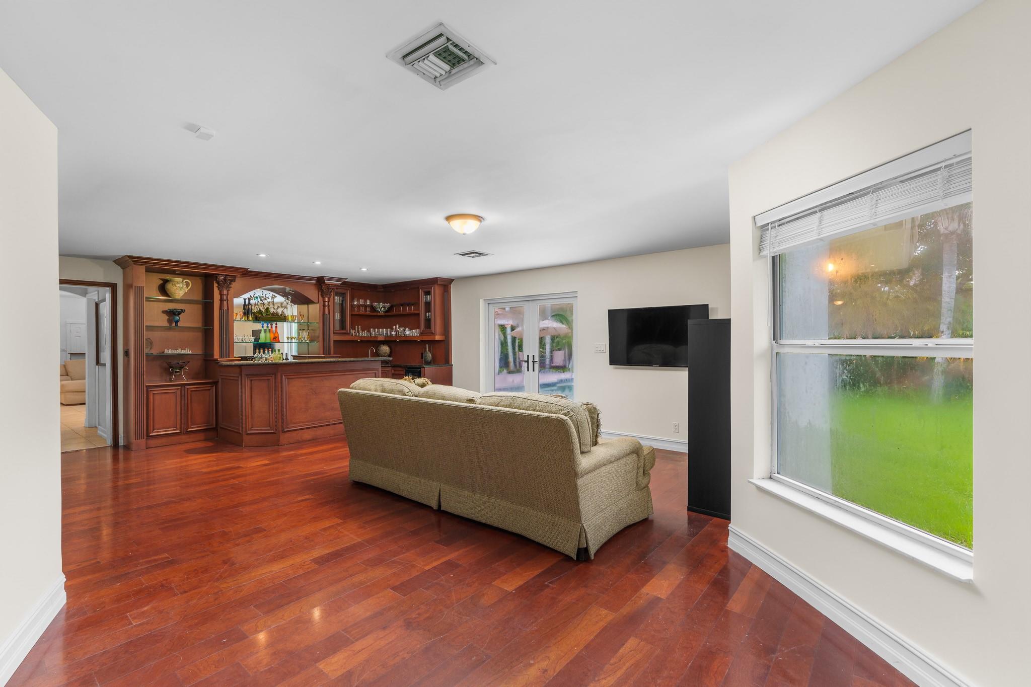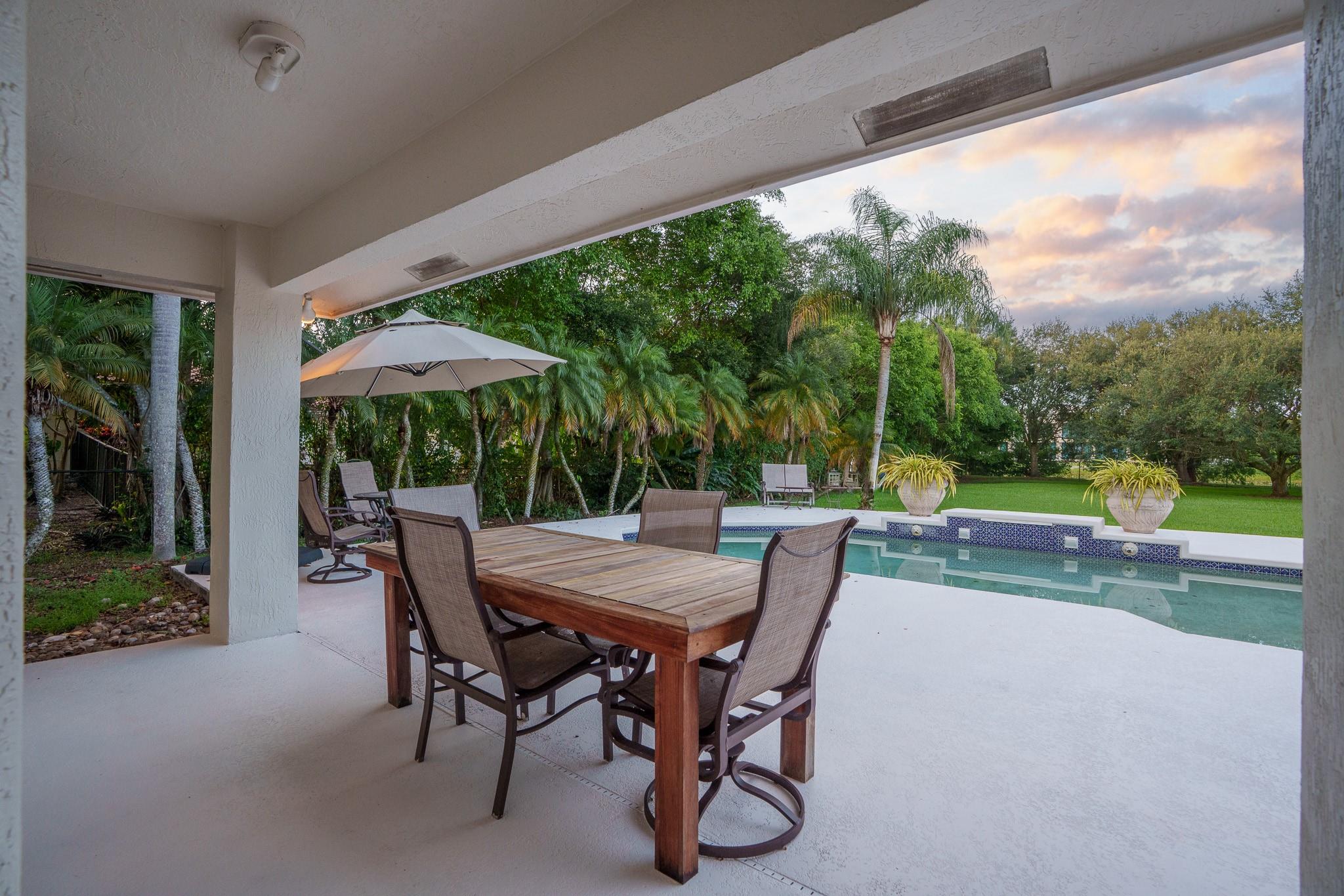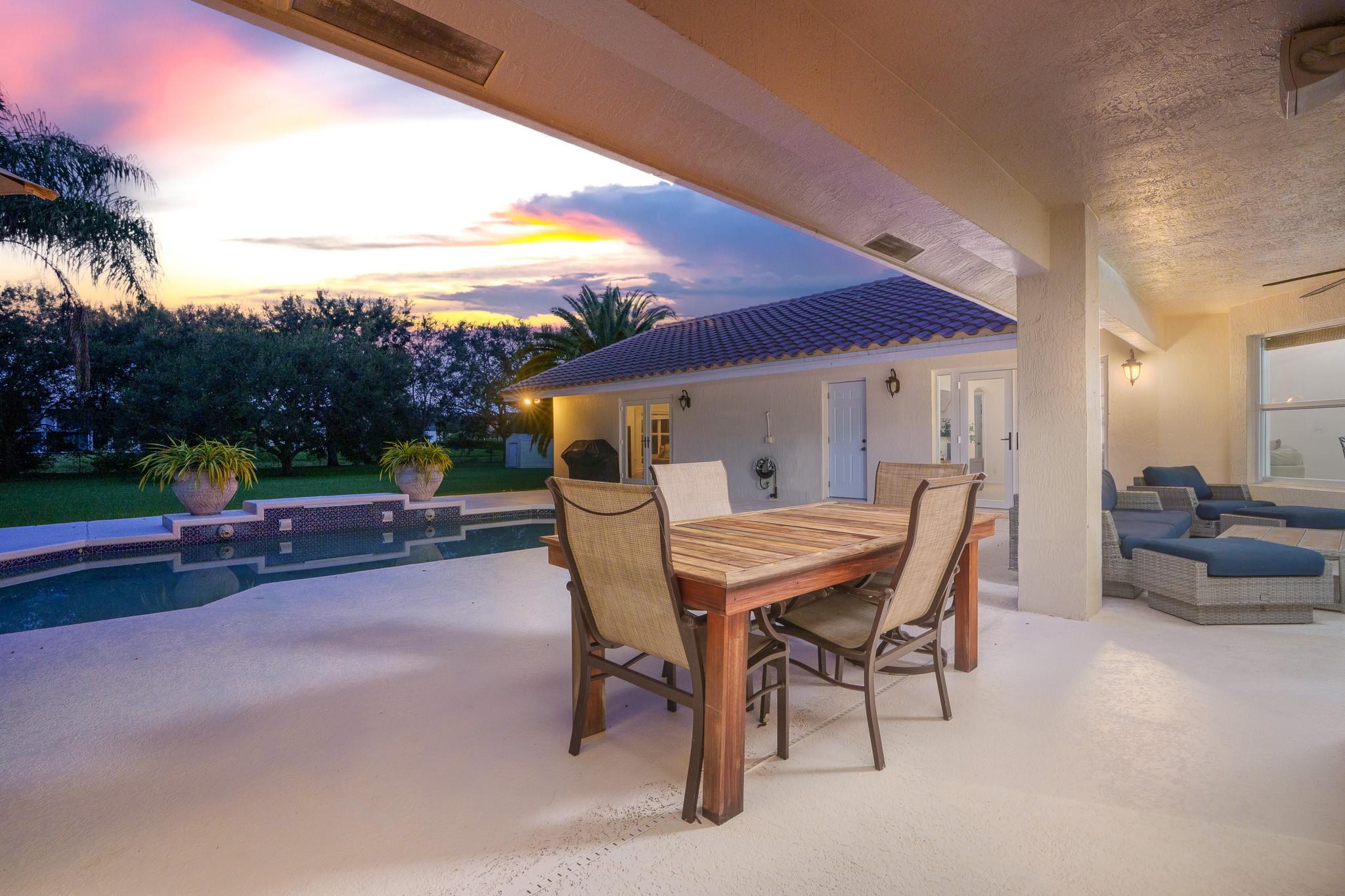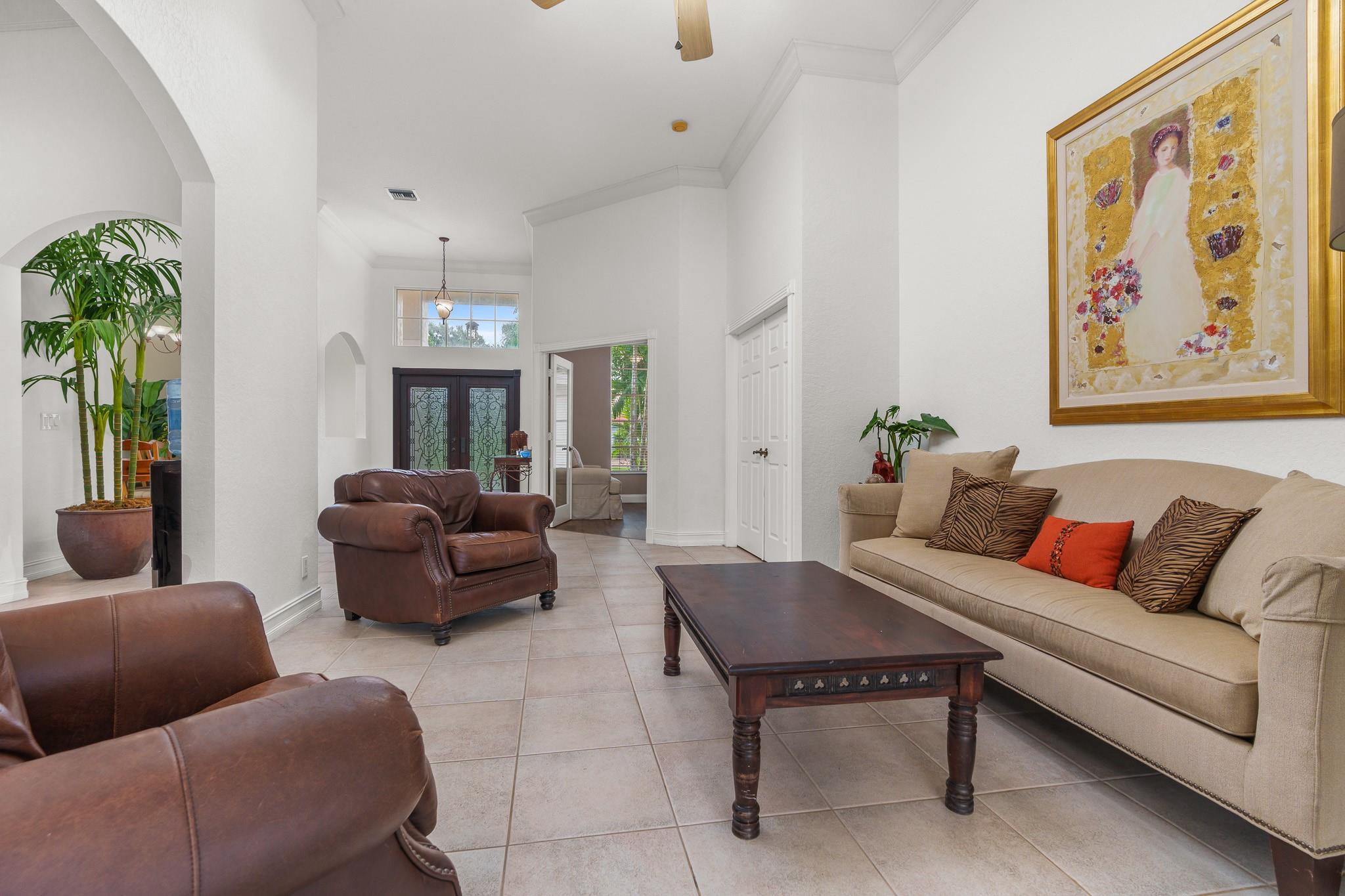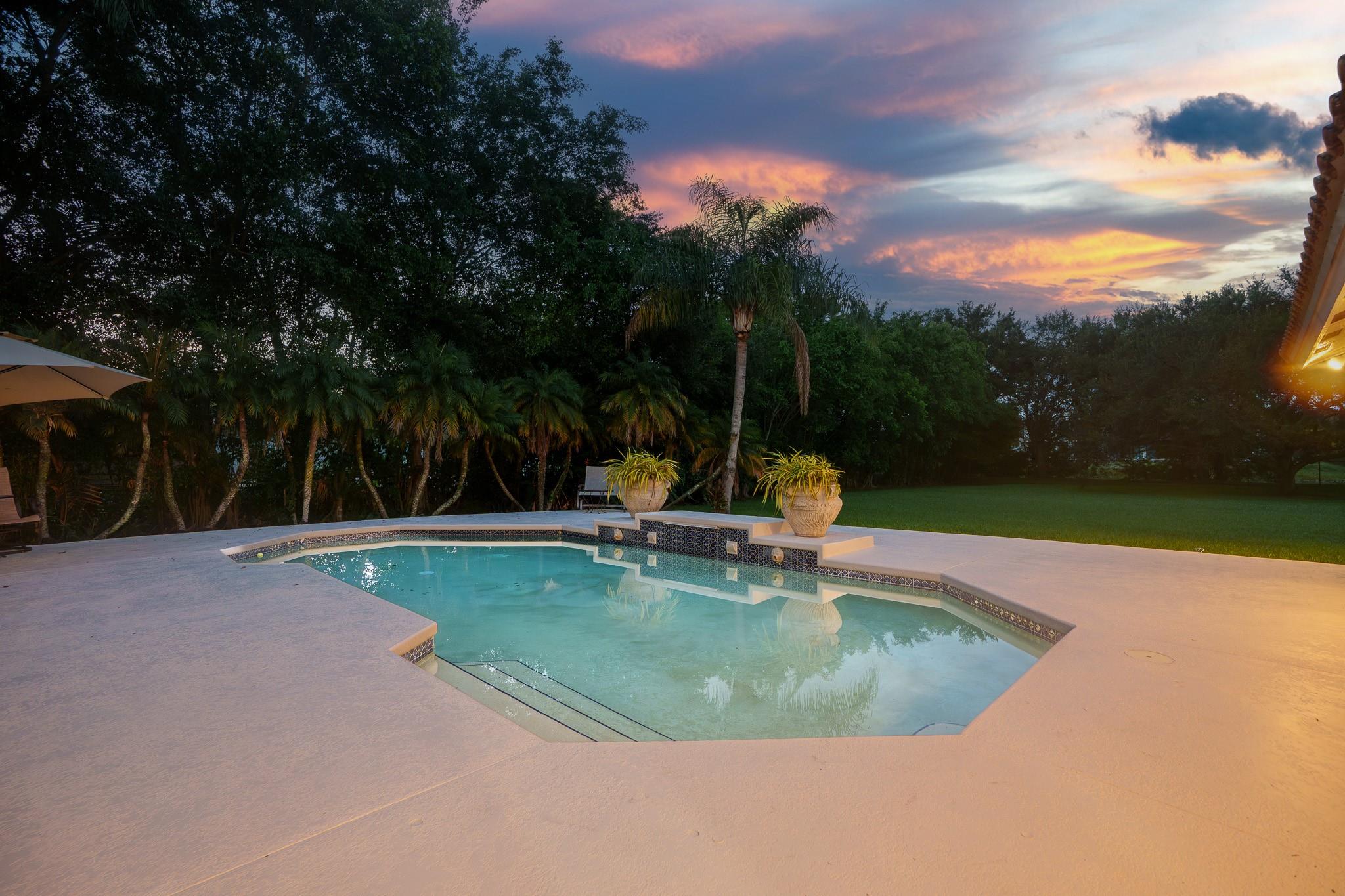 Nestled in a charming and quaint community of just 39 homes, this one-story home is just perfection. The roof was replaced in 2023, and in 2024, hurricane impact windows and doors were elegantly installed, ensuring both safety and style. Freshly painted inside and out, the residence boasts an impressive layout featuring six bedrooms, three bathrooms, and a three-car garage . Enjoy versatile living with a den that can easily serve as a theater, game room, or gym. Step outside to your own serene oasis, complete with a sparkling pool and a sprawling yard that leads directly to the water. The interior showcases tile flooring in the social areas for easy maintenance, while the bedrooms feature rich wood floors. The kitchen is equipped with stainless steel appliances, ideal for the home chef.