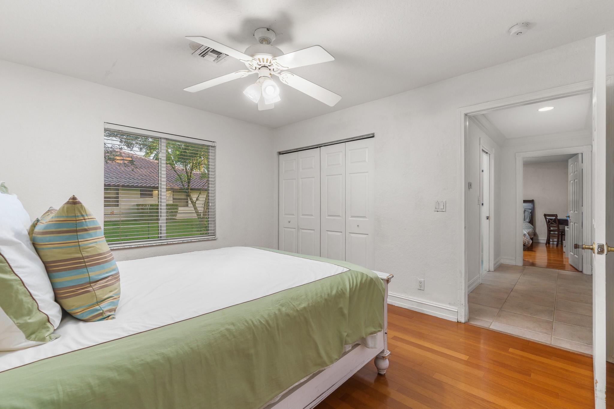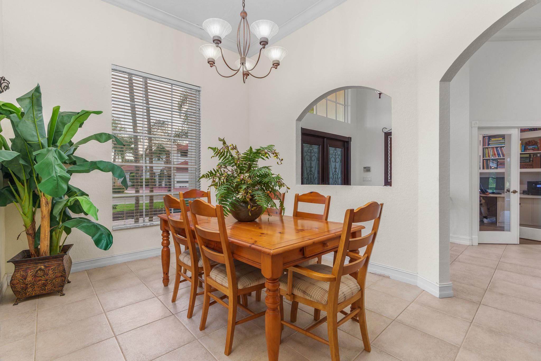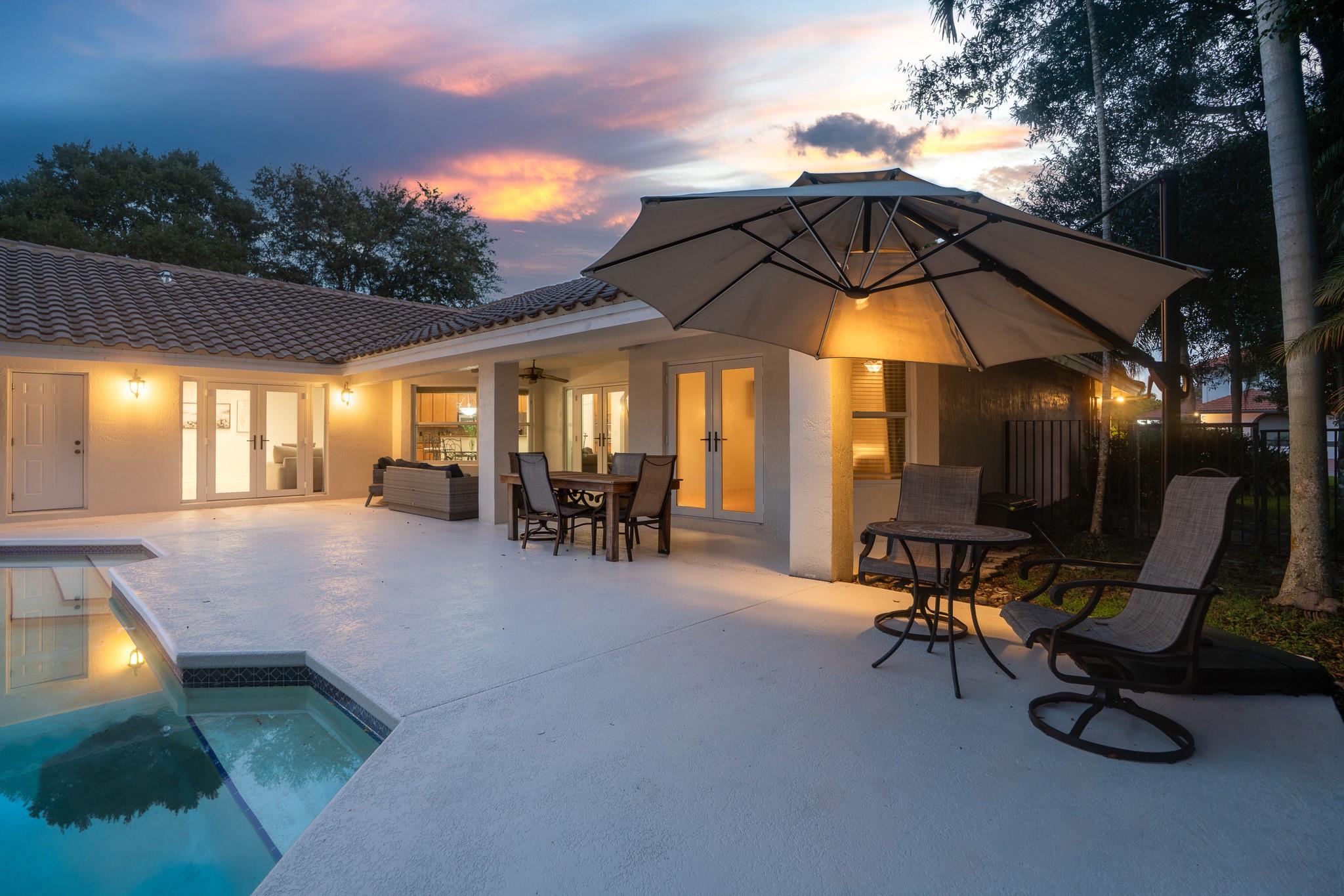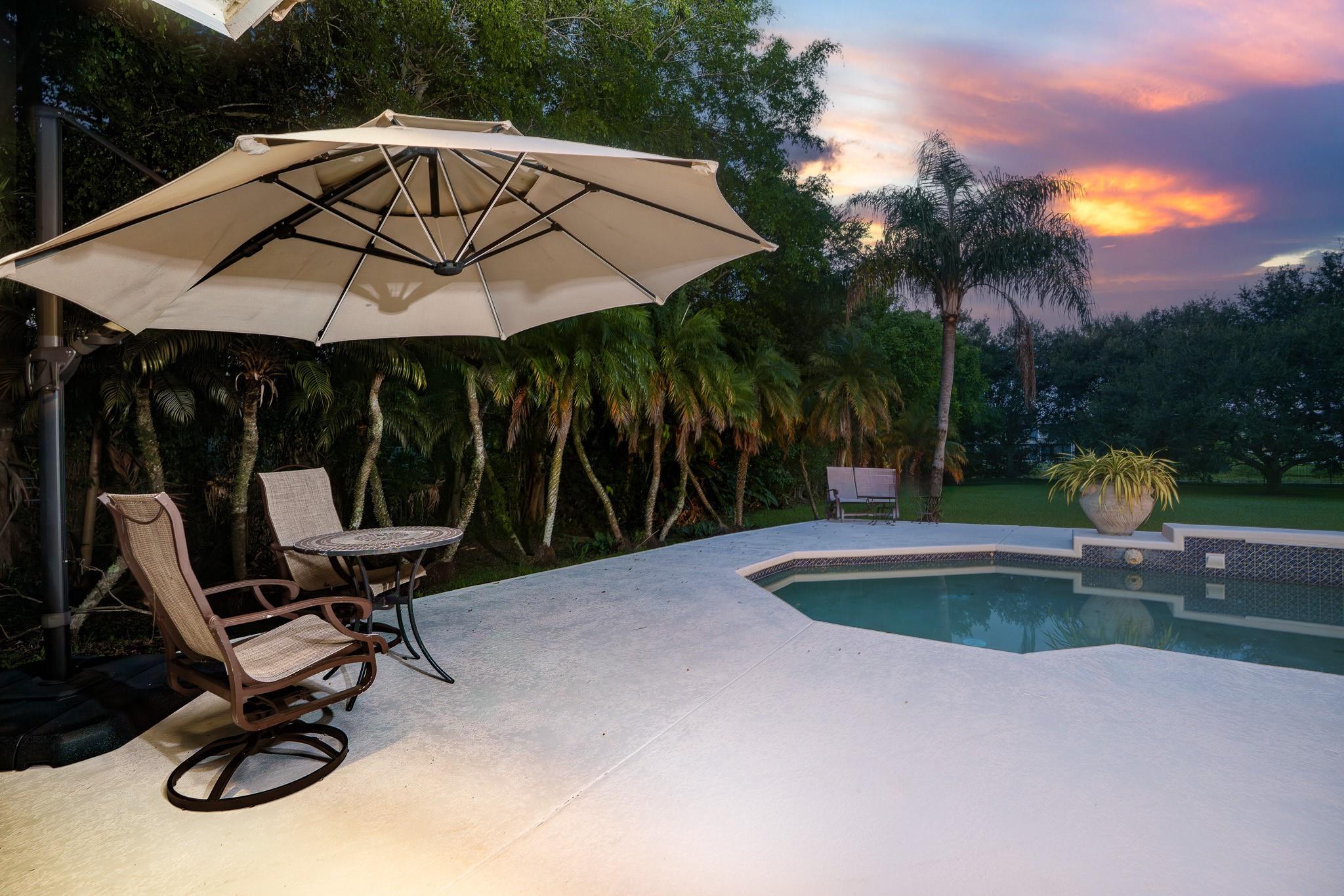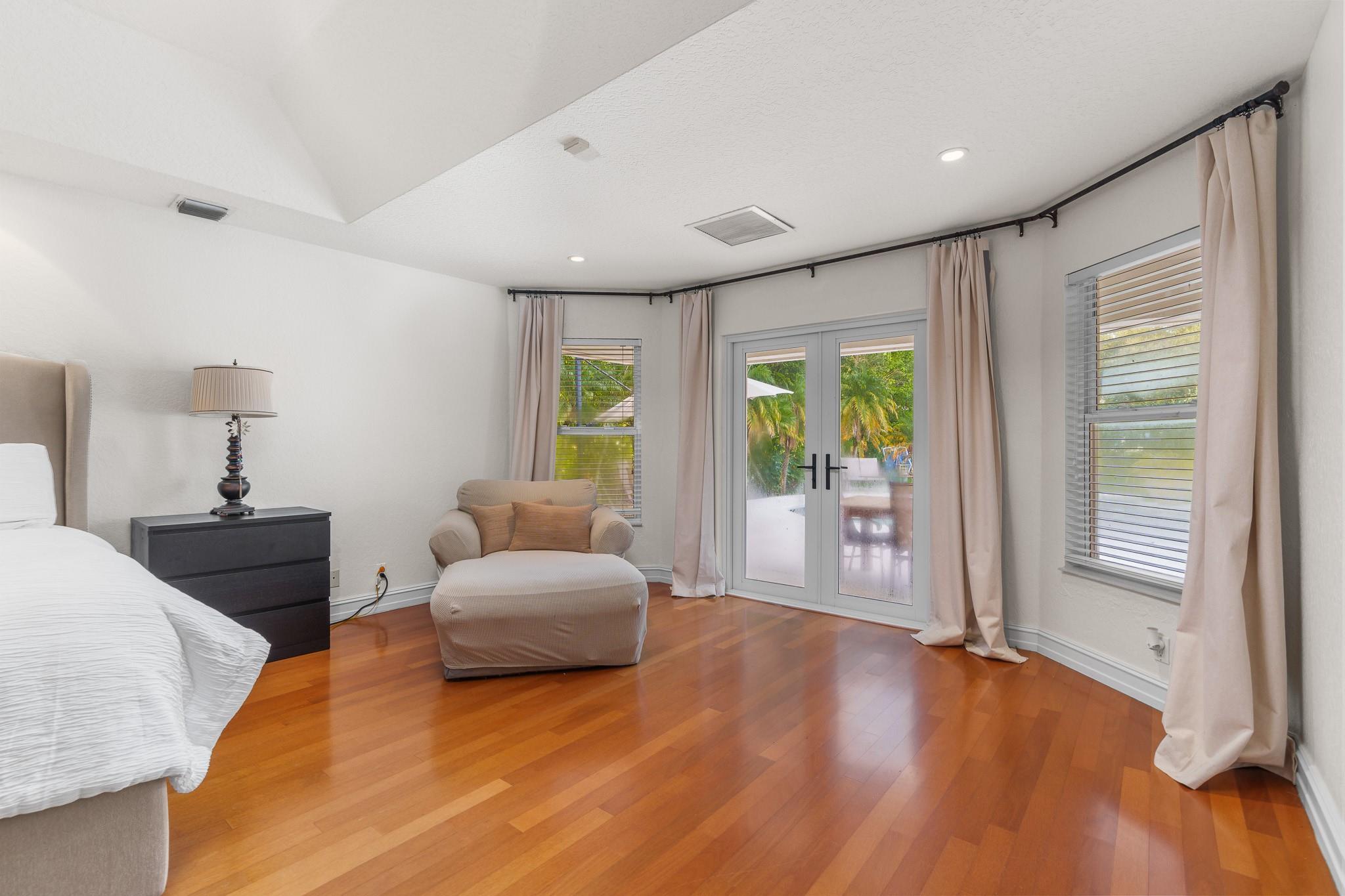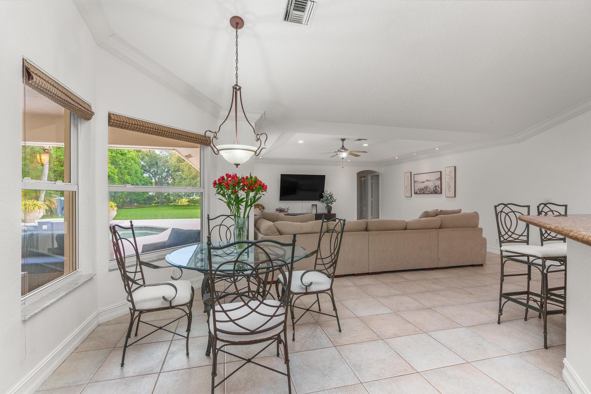 Nestled in a charming and quaint community of just 39 homes, this one-story home is just perfection. The roof was replaced in 2023, and in 2024, hurricane impact windows and doors were elegantly installed, ensuring both safety and style. Freshly painted inside and out, the residence boasts an impressive layout featuring six bedrooms, three bathrooms, and a three-car garage . Enjoy versatile living with a den that can easily serve as a theater, game room, or gym. Step outside to your own serene oasis, complete with a sparkling pool and a sprawling yard that leads directly to the water. The interior showcases tile flooring in the social areas for easy maintenance, while the bedrooms feature rich wood floors. The kitchen is equipped with stainless steel appliances, ideal for the home chef.