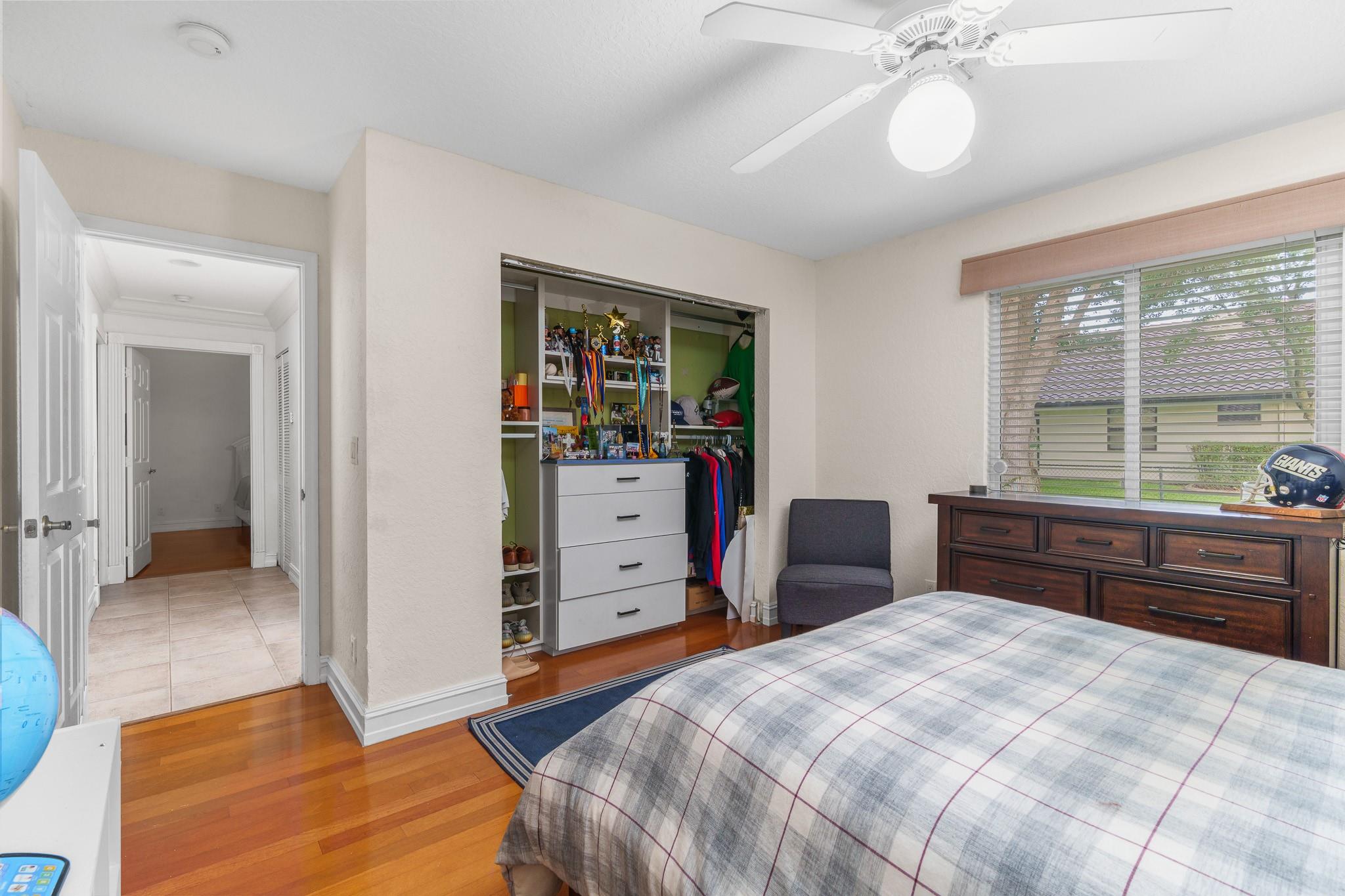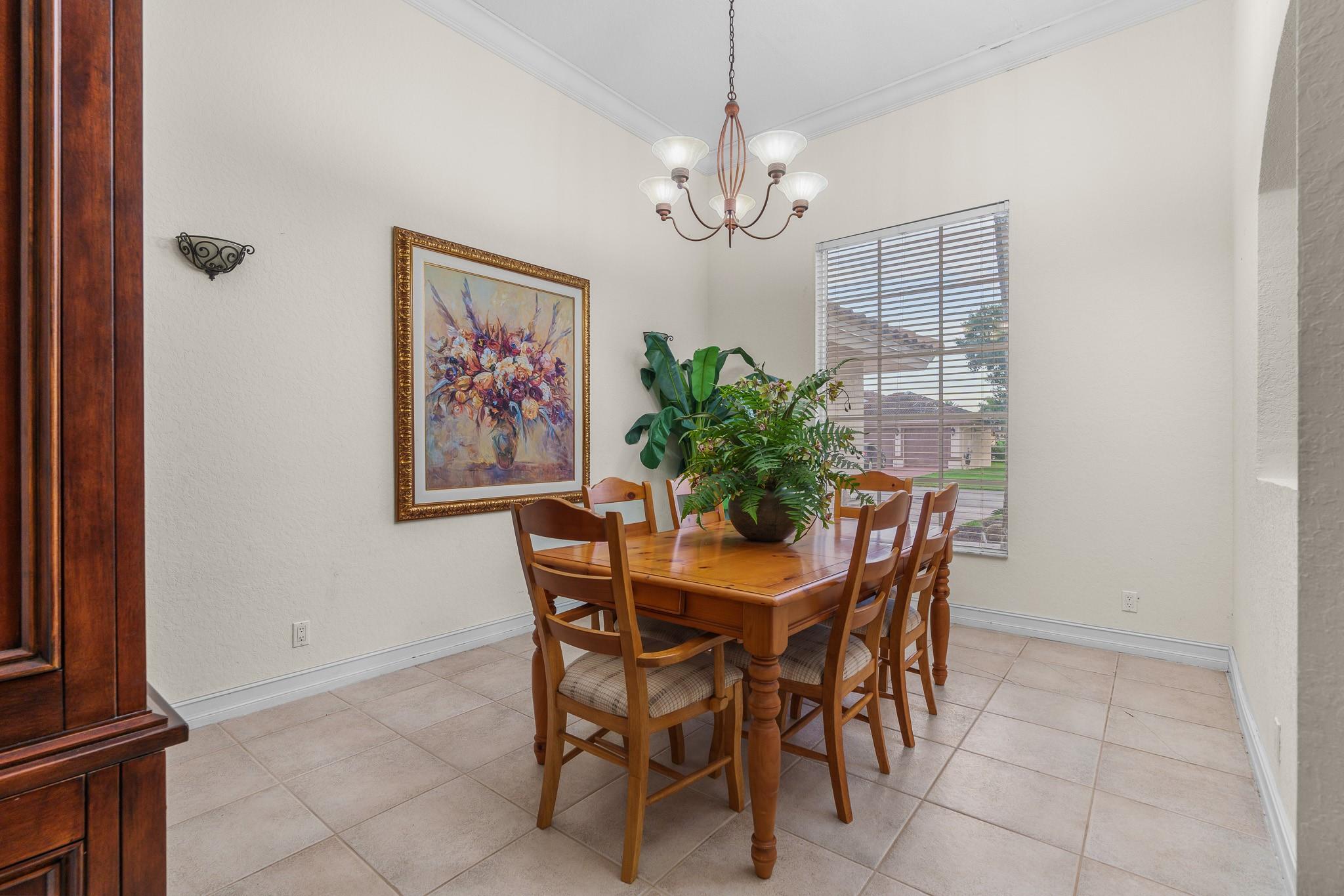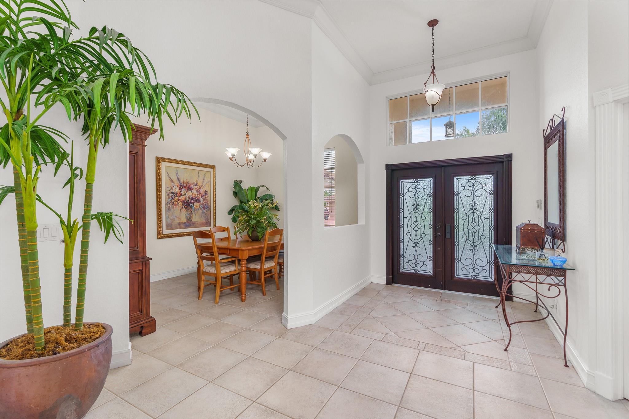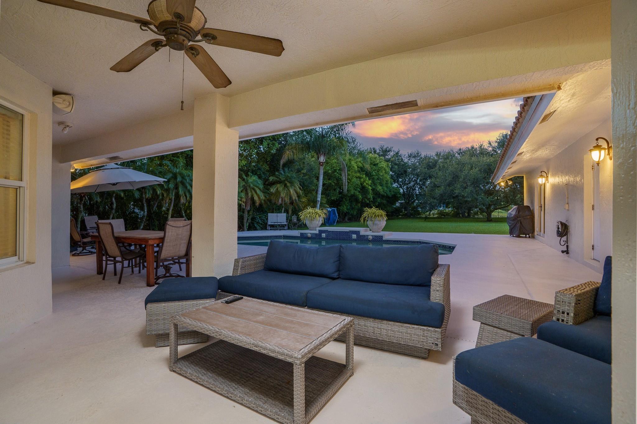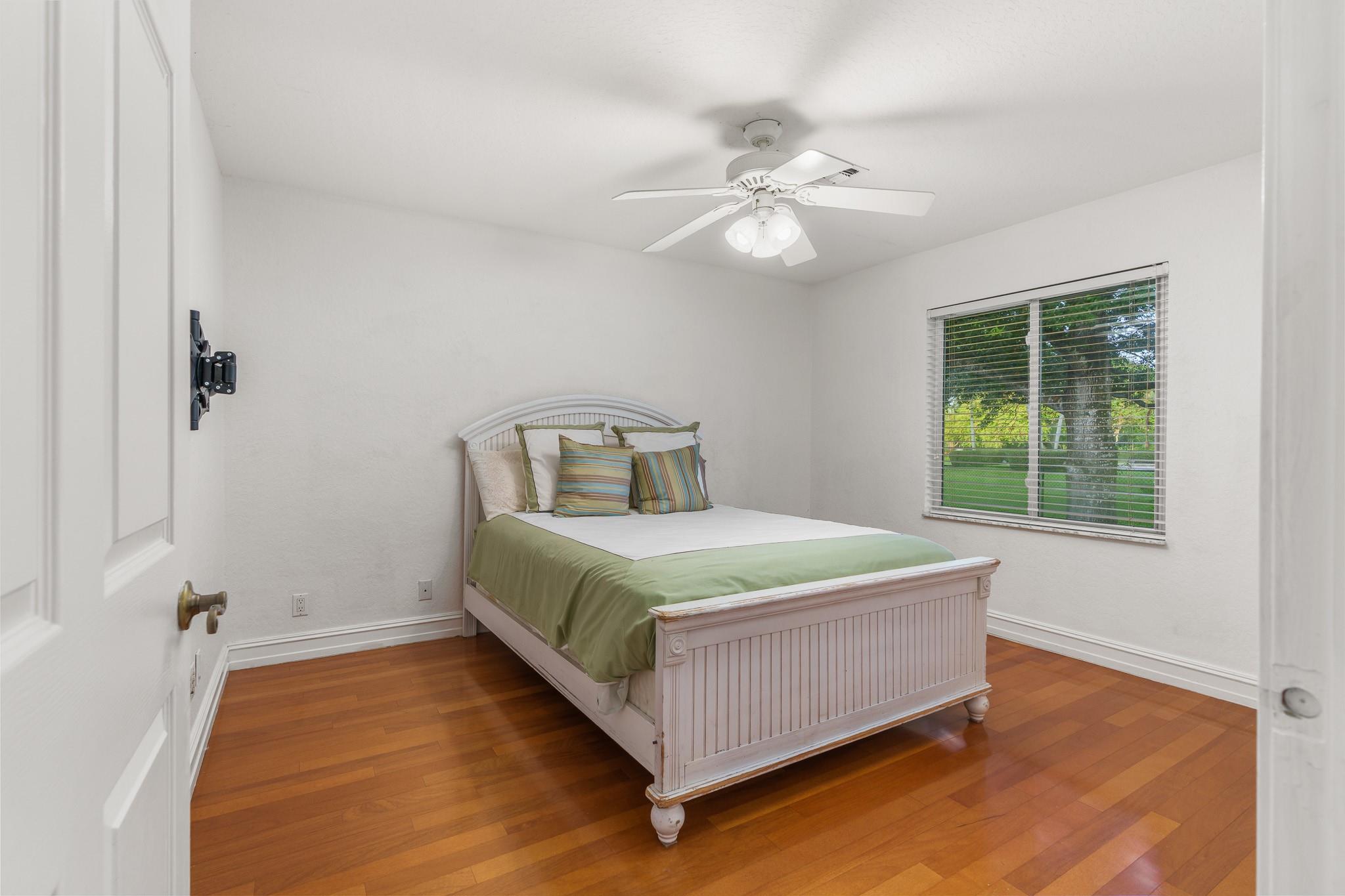 Nestled in a charming and quaint community of just 39 homes, this one-story home is just perfection. The roof was replaced in 2023, and in 2024, hurricane impact windows and doors were elegantly installed, ensuring both safety and style. Freshly painted inside and out, the residence boasts an impressive layout featuring six bedrooms, three bathrooms, and a three-car garage . Enjoy versatile living with a den that can easily serve as a theater, game room, or gym. Step outside to your own serene oasis, complete with a sparkling pool and a sprawling yard that leads directly to the water. The interior showcases tile flooring in the social areas for easy maintenance, while the bedrooms feature rich wood floors. The kitchen is equipped with stainless steel appliances, ideal for the home chef.