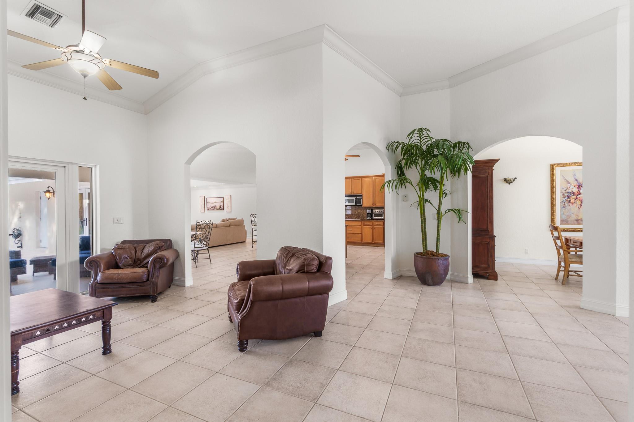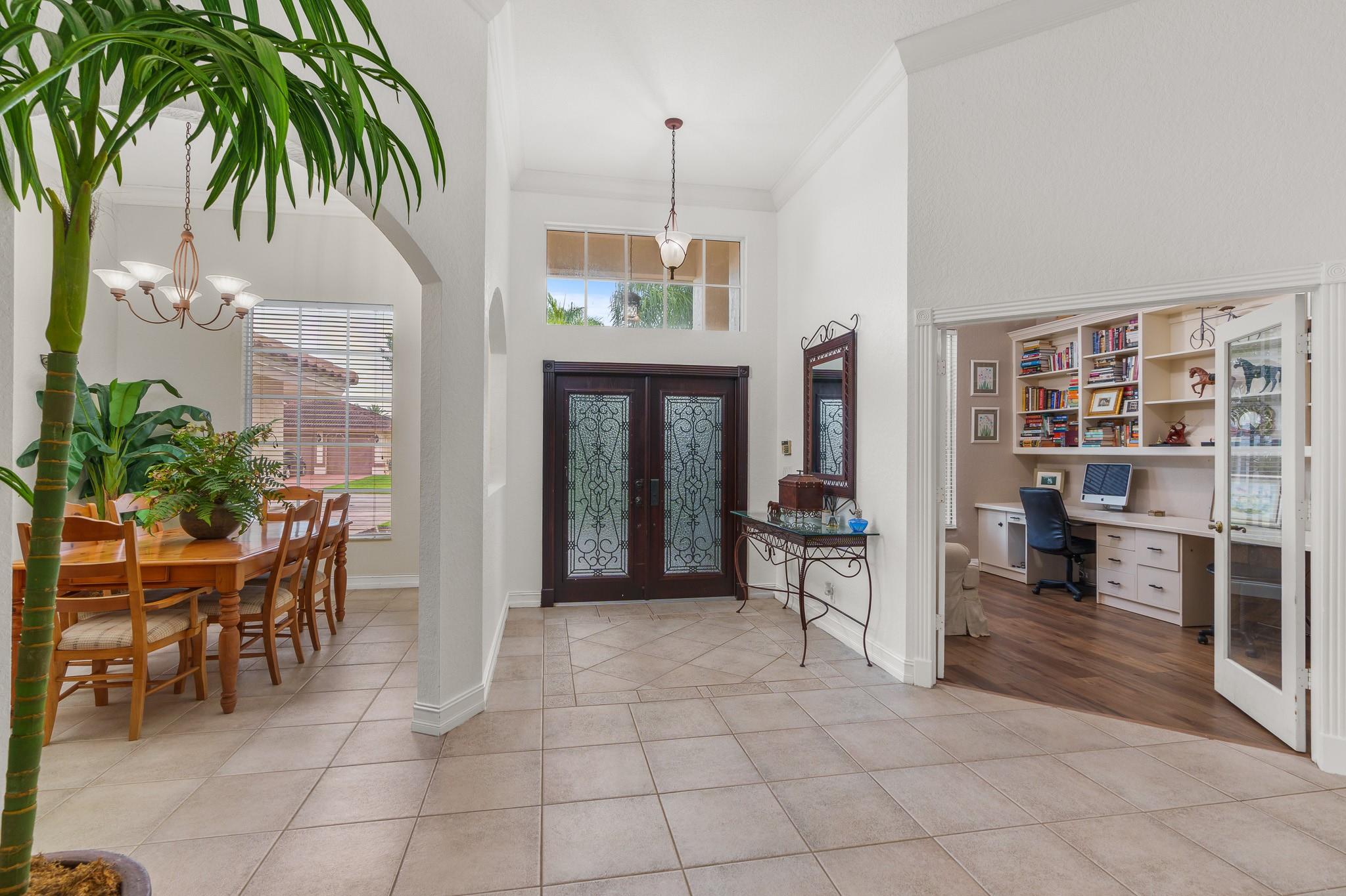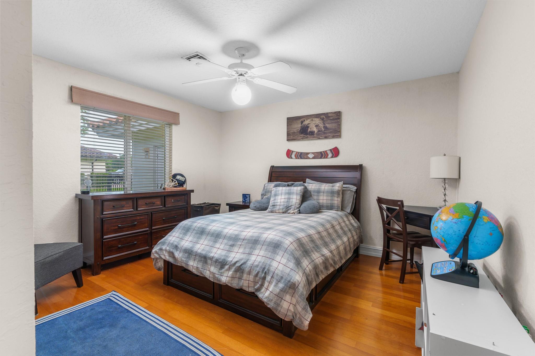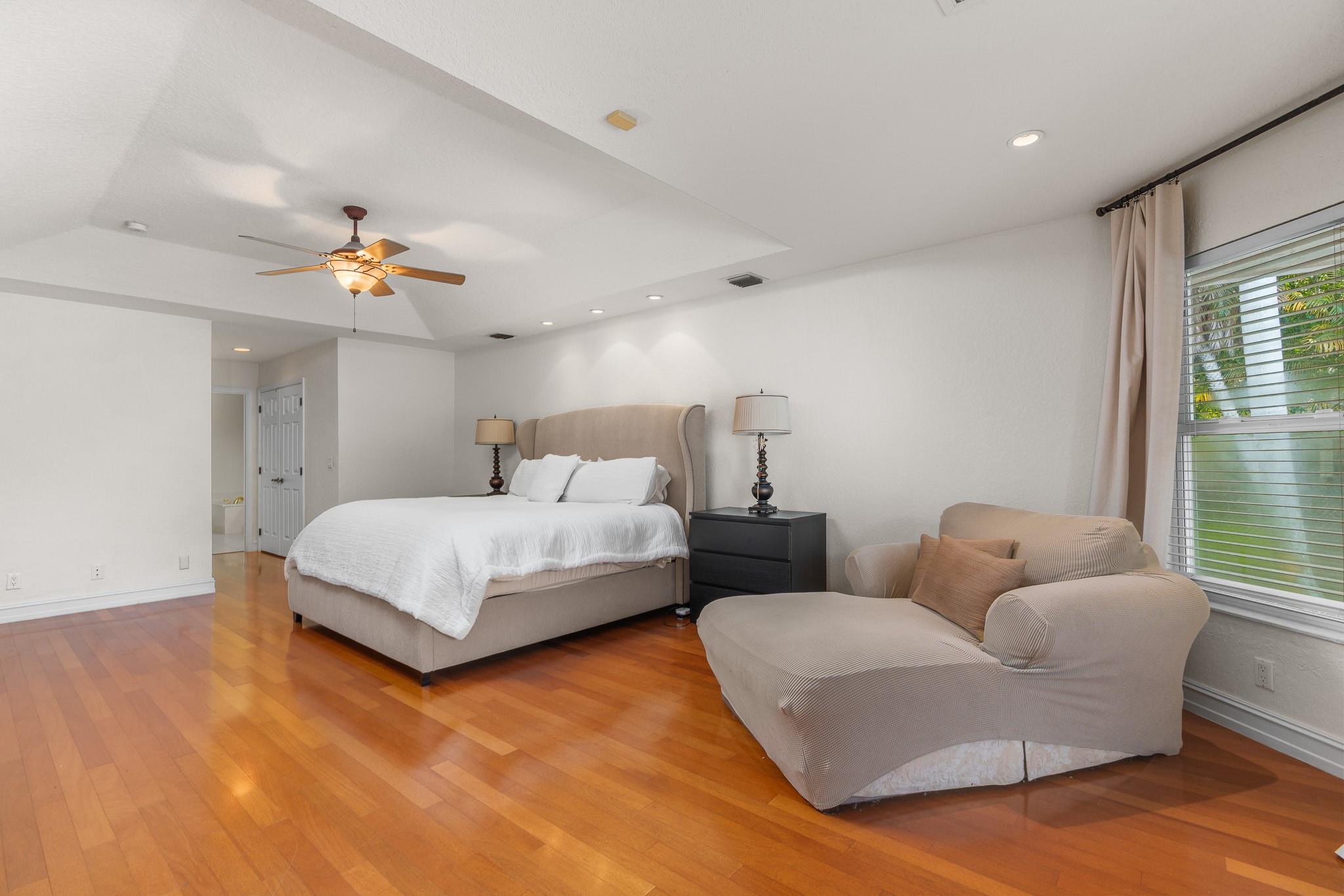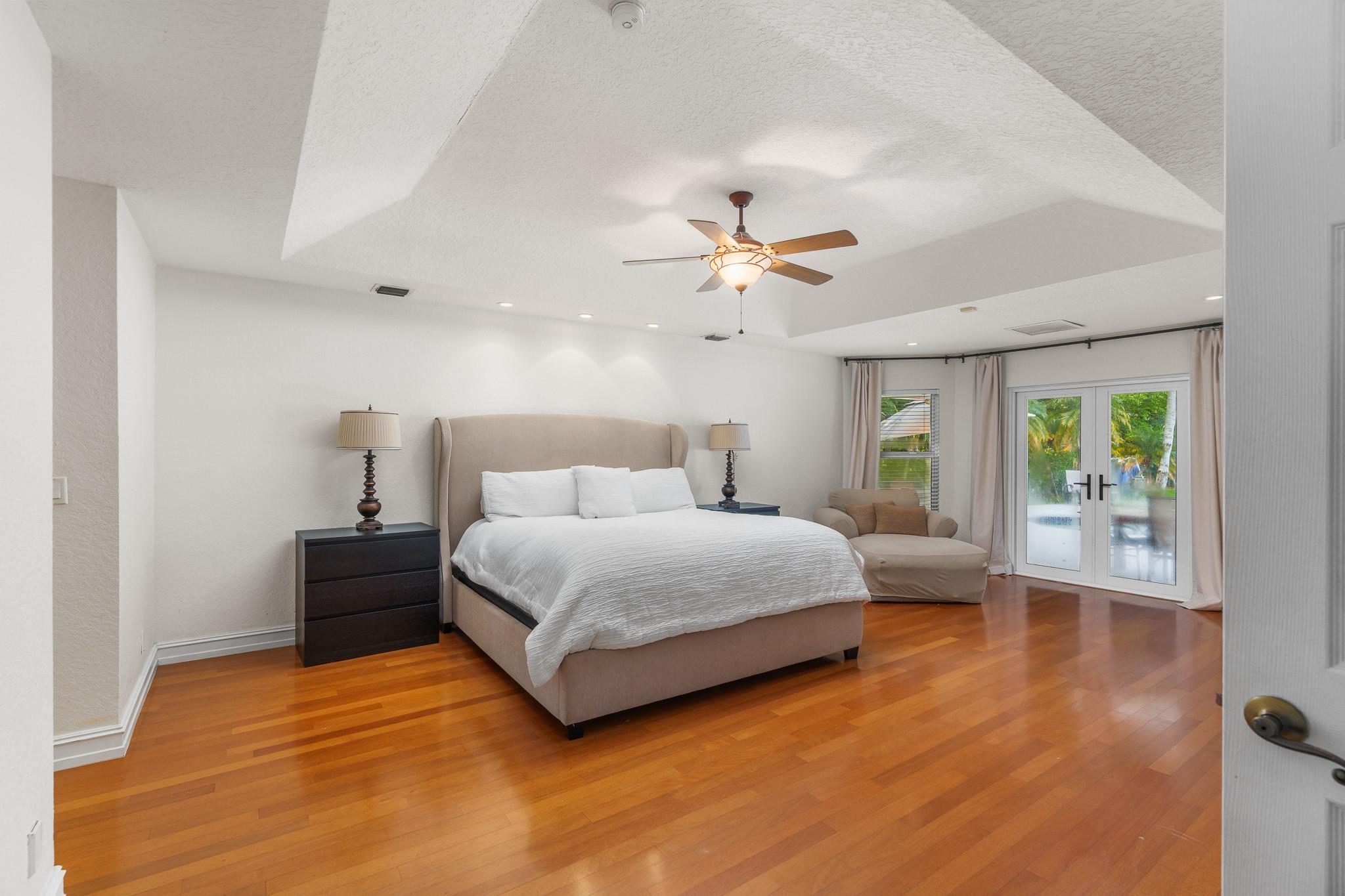 Nestled in a charming and quaint community of just 39 homes, this one-story home is just perfection. The roof was replaced in 2023, and in 2024, hurricane impact windows and doors were elegantly installed, ensuring both safety and style. Freshly painted inside and out, the residence boasts an impressive layout featuring six bedrooms, three bathrooms, and a three-car garage . Enjoy versatile living with a den that can easily serve as a theater, game room, or gym. Step outside to your own serene oasis, complete with a sparkling pool and a sprawling yard that leads directly to the water. The interior showcases tile flooring in the social areas for easy maintenance, while the bedrooms feature rich wood floors. The kitchen is equipped with stainless steel appliances, ideal for the home chef.