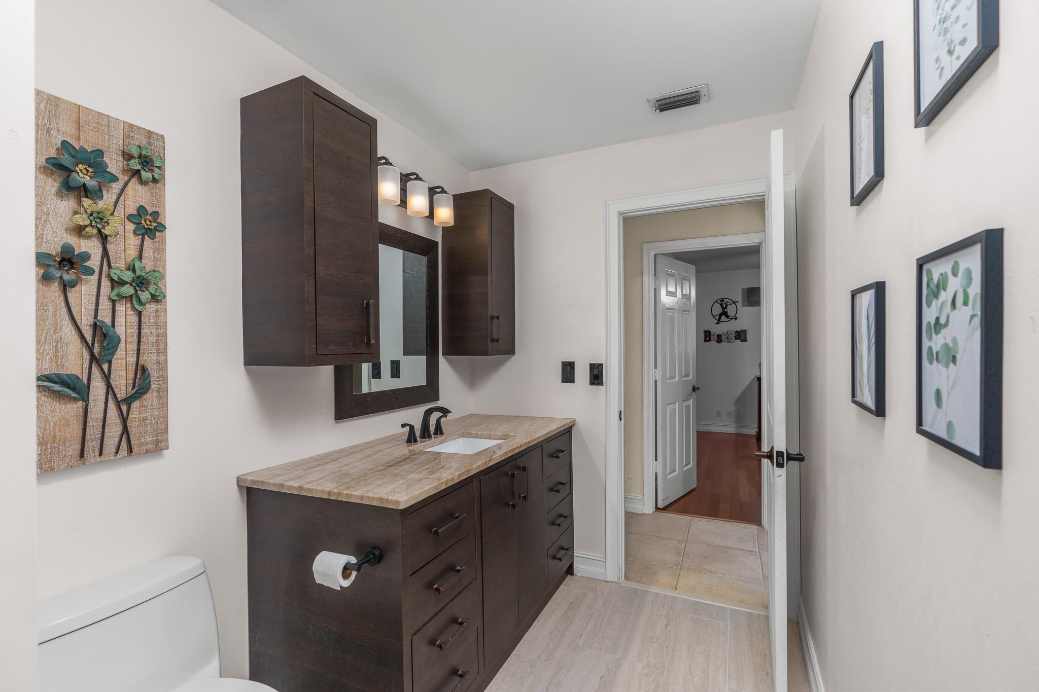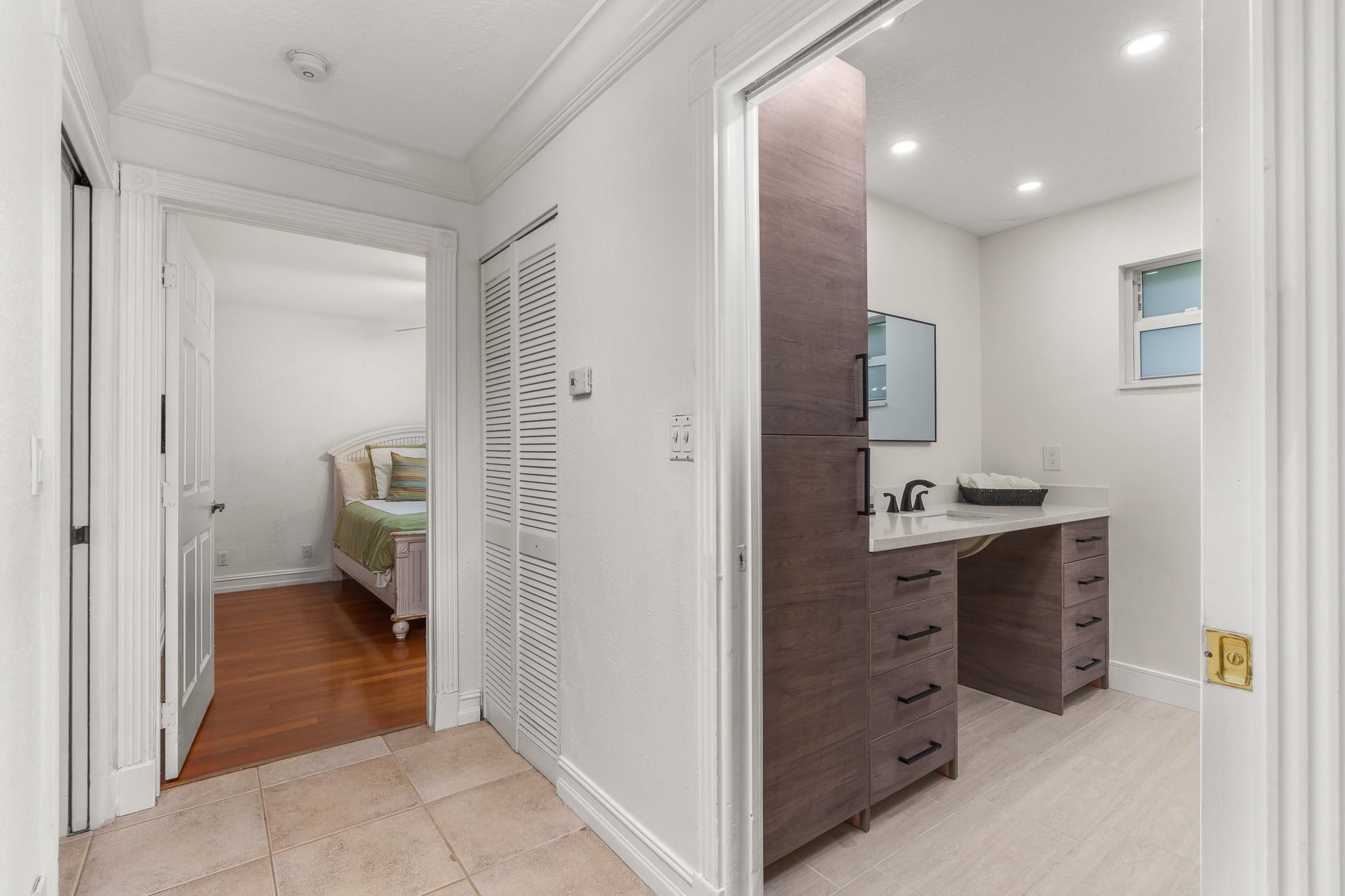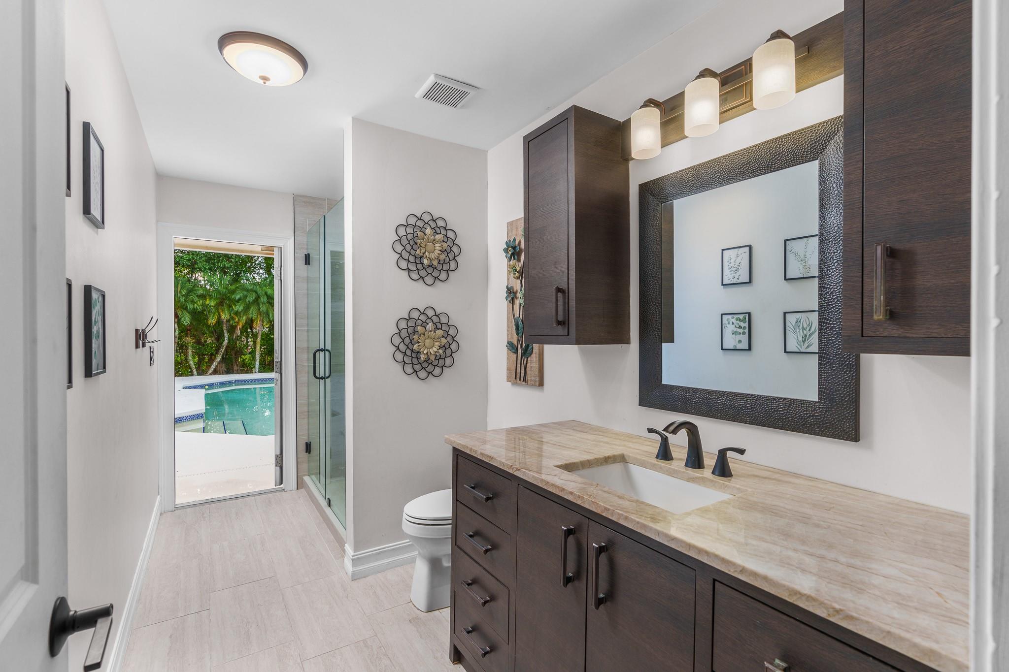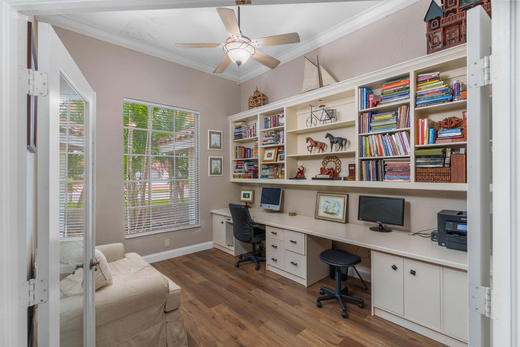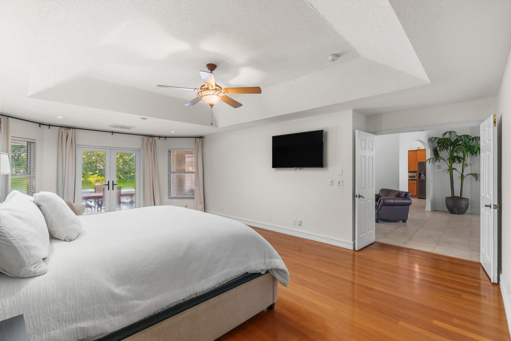 Nestled in a charming and quaint community of just 39 homes, this one-story home is just perfection. The roof was replaced in 2023, and in 2024, hurricane impact windows and doors were elegantly installed, ensuring both safety and style. Freshly painted inside and out, the residence boasts an impressive layout featuring six bedrooms, three bathrooms, and a three-car garage . Enjoy versatile living with a den that can easily serve as a theater, game room, or gym. Step outside to your own serene oasis, complete with a sparkling pool and a sprawling yard that leads directly to the water. The interior showcases tile flooring in the social areas for easy maintenance, while the bedrooms feature rich wood floors. The kitchen is equipped with stainless steel appliances, ideal for the home chef.
