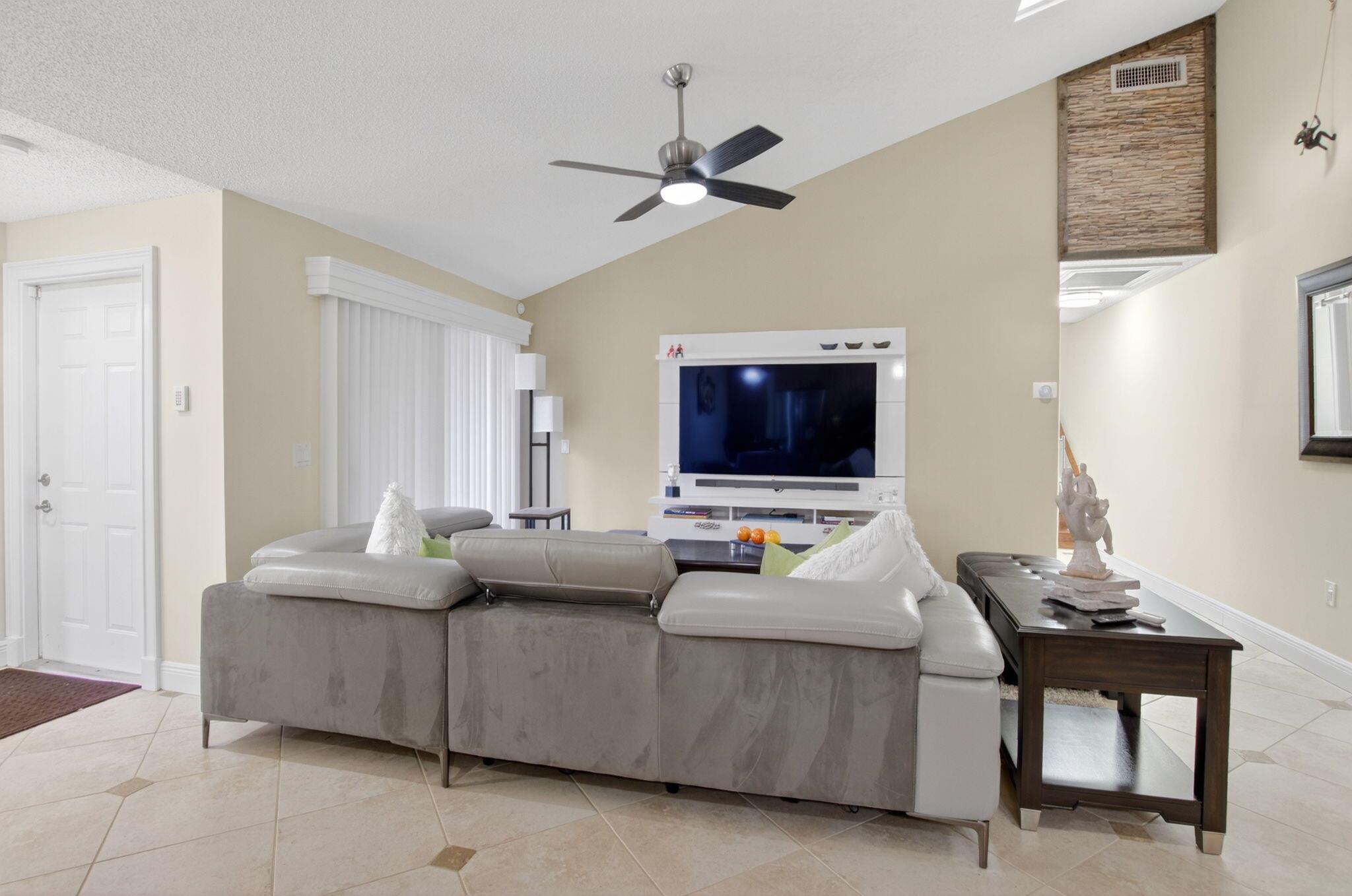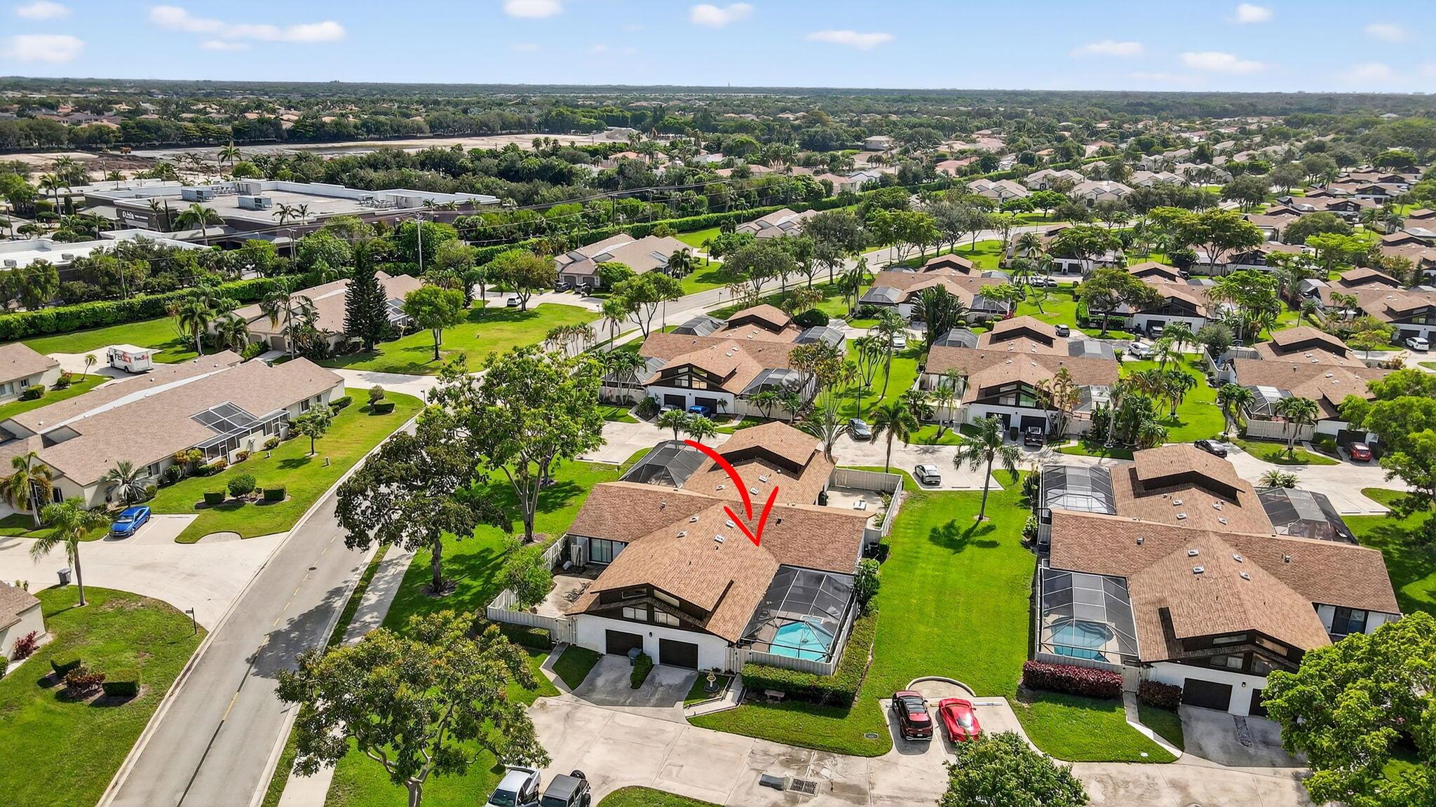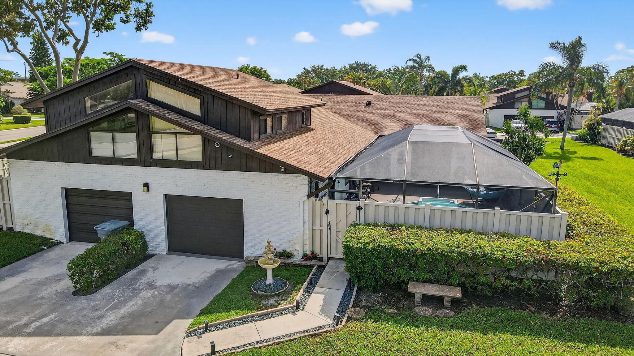 Gorgeous Townhouse with private pool in Boca Gardens - Move in Ready! Welcome to this beautiful 2 story home with 3 master bedroom suites with their own private bathrooms plus a guest bath. Beautifully upgraded with an abundance of natural light and an open floor plan, this home offers the perfect blend of privacy, luxury and convenience. Full 3 beds, 3.5 baths, 1 full car garage, 2 additional parking spaces + guests, over 1,325 square feet of living space plus your own private screened-in yard with a pool! Perfect for endless summer vibes, family gatherings and entertaining. Property is fully updated, newer roof, newer A/C, stainless steel appliances, gorgeous bathrooms, vaulted ceilings, skylights and an upstairs private suite. Perfectly located in Boca Gardens.