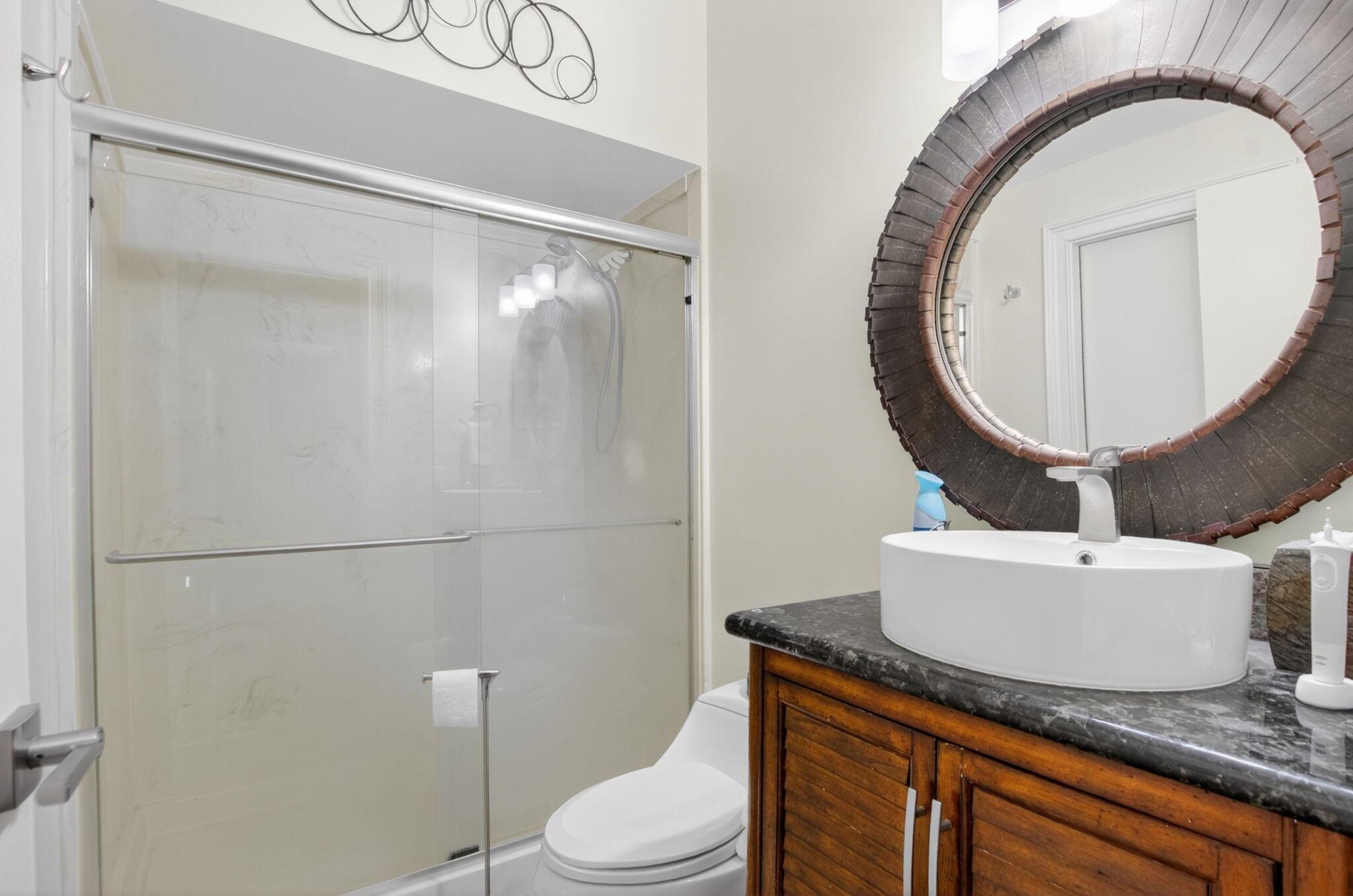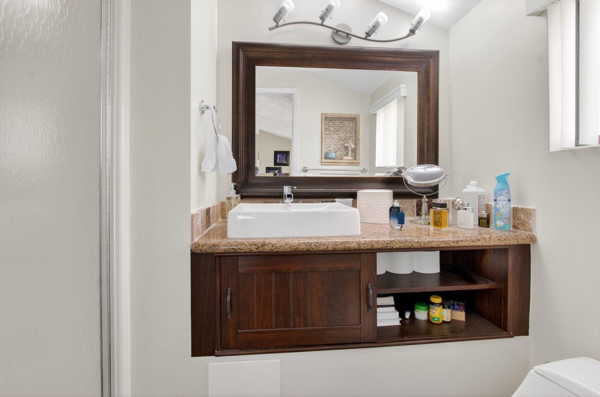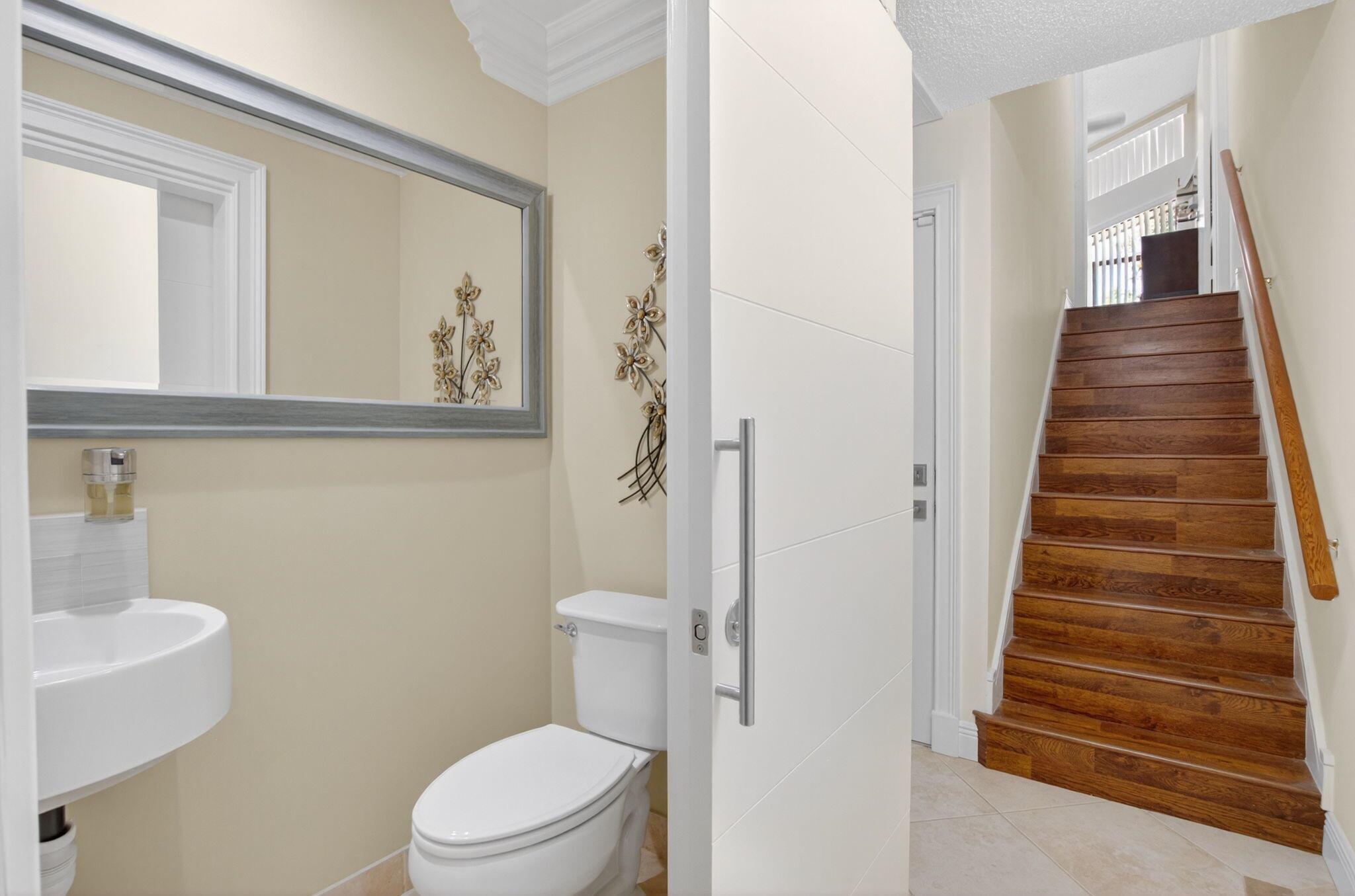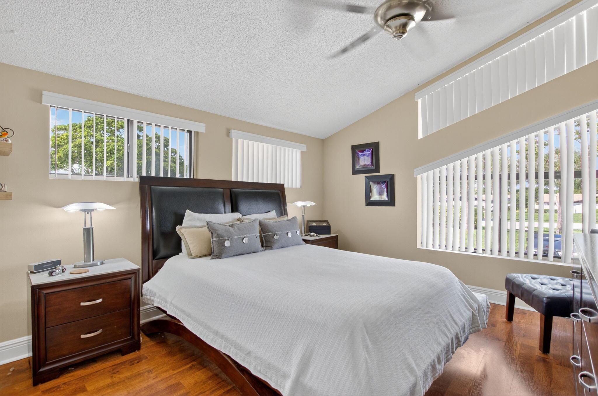 Gorgeous Townhouse with private pool in Boca Gardens - Move in Ready! Welcome to this beautiful 2 story home with 3 master bedroom suites with their own private bathrooms plus a guest bath. Beautifully upgraded with an abundance of natural light and an open floor plan, this home offers the perfect blend of privacy, luxury and convenience. Full 3 beds, 3.5 baths, 1 full car garage, 2 additional parking spaces + guests, over 1,325 square feet of living space plus your own private screened-in yard with a pool! Perfect for endless summer vibes, family gatherings and entertaining. Property is fully updated, newer roof, newer A/C, stainless steel appliances, gorgeous bathrooms, vaulted ceilings, skylights and an upstairs private suite. Perfectly located in Boca Gardens.
