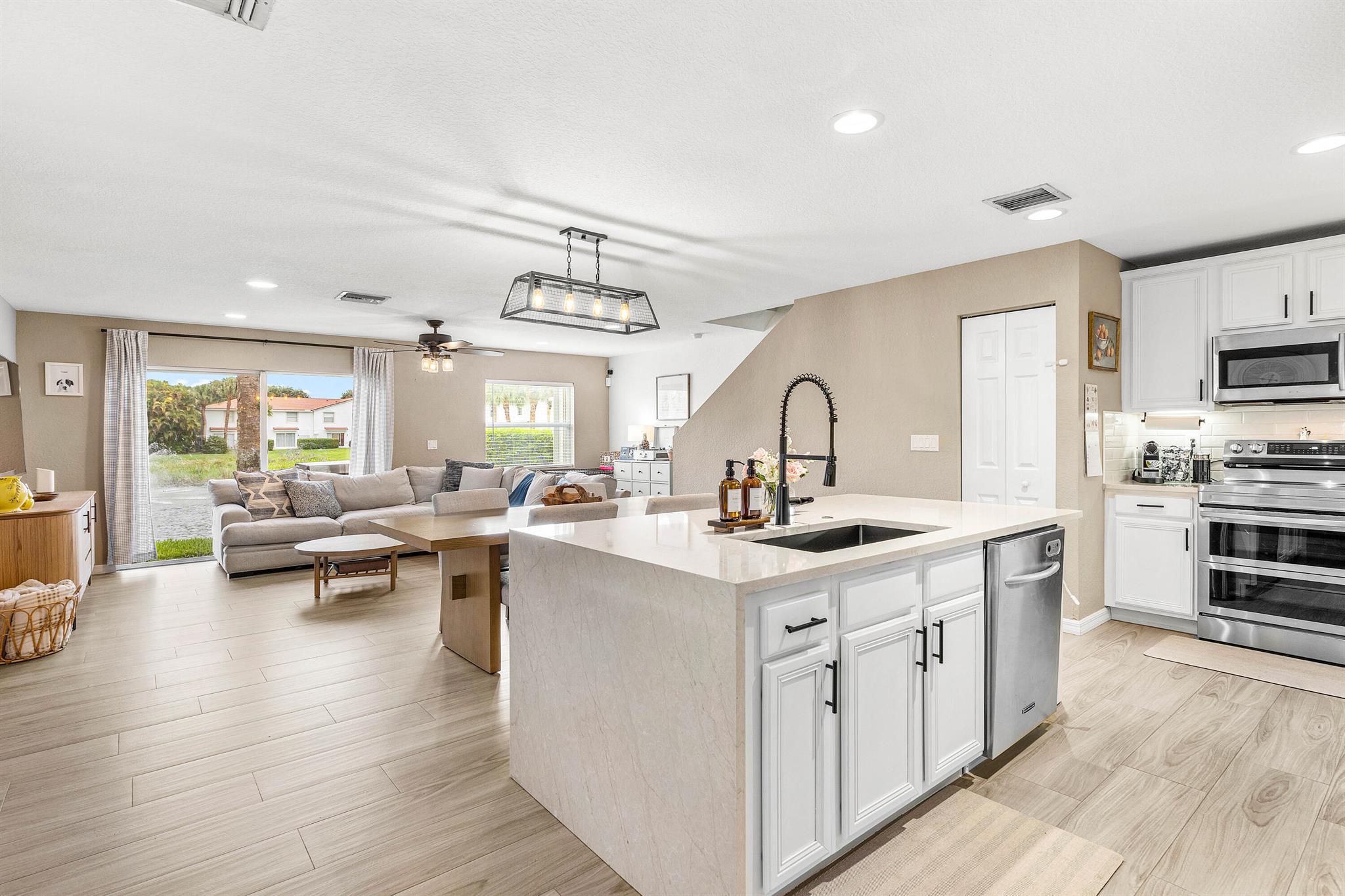 Fully Renovated Corner Unit with the Best Lake View in Gated Royal WoodsWelcome home to this completely updated 3-bedroom, 2.5-bathroom corner townhome featuring a 1-car garage and the best lake view in the community--overlooking the tranquil fountain. Located in the sought-after gated enclave of Royal Woods, this bright and airy residence offers a brand-new kitchen with quartz countertops, wood-tile flooring throughout, and a modern, open layout designed for comfortable living and entertaining.Upstairs, you're welcomed by a spacious foyer leading to three well-appointed bedrooms, including a generous primary suite with a walk-in closet. The home also includes a washer and dryer for added convenience.