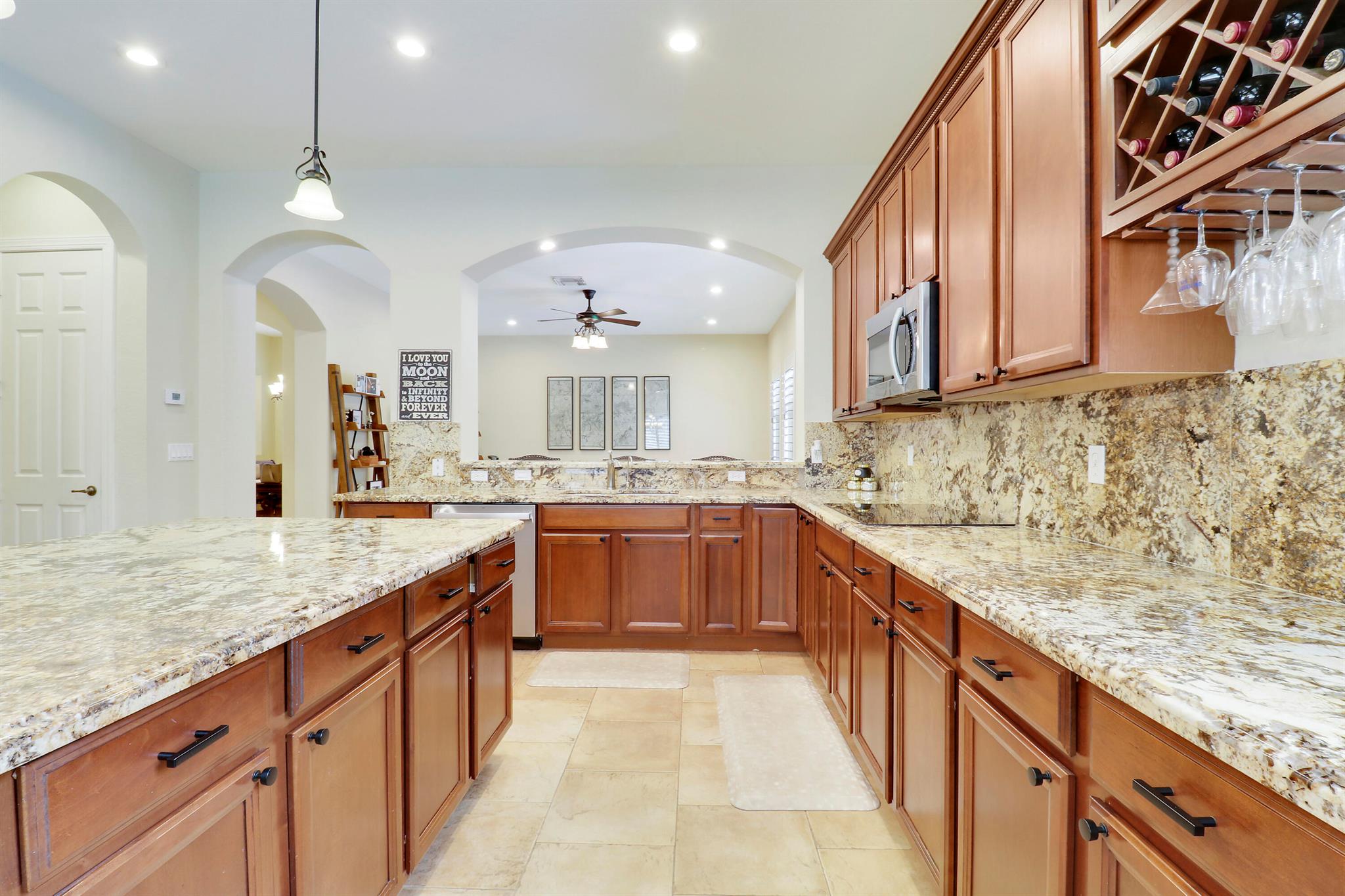 Spectacular Yellowstone former model home! 5 BR 4.5 BA 3 car garage POOL home with stunning finishes and upgrades on a fabulous private preserve lot. This home boasts a formal living room, dining room, and family room, as well as a huge upstairs loft ideal for a game room, home fitness center, or theater. Amazing chef's dream kitchen with 42-inch cabinets, S/S appliances, large pantry, center island, breakfast bar & lots of storage! Magnificent MBR suite with 2 huge walk-in closets and beautifully appointed spa-like master bath w/soaking tub, walk-in shower, double vanities & sinks. Upgrades include IMPACT glass, designer lights and ceiling fans, tile throughout, plantation shutters, and more! HOA provides lawn and landscape, gated entry, internet, cable TV, clubhouse, fitness center, BBQ