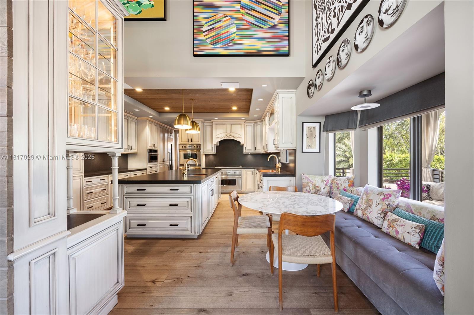 Refined elegance in gated Cocoplum. Fully Remodeled 6-bed, 4.5-bath residence offers both grand entertaining & serene family living. Features include formal living & dining rooms, office/den, spacious bedrooms, marble bathrooms, and family room with dramatic cathedral-ceiling and French doors opening to cozy terrace. Ground-level bonuses include staff quarters with en-suite bath, cabana bath & music studio. Pool, impact glass throughout, new roof (2024) Every detail has been carefully curated. Gourmet kitchen boasts 3 Viking ovens, 2 Miele dishwashers, Thermador wine cellar, and bright breakfast area. Defining feature is elegant custom woodwork—from oak floors to office’s exotic rosewood wall paneling. A luxurious, private sanctuary in one of Coral Gables’ most desirable neighborhoods.