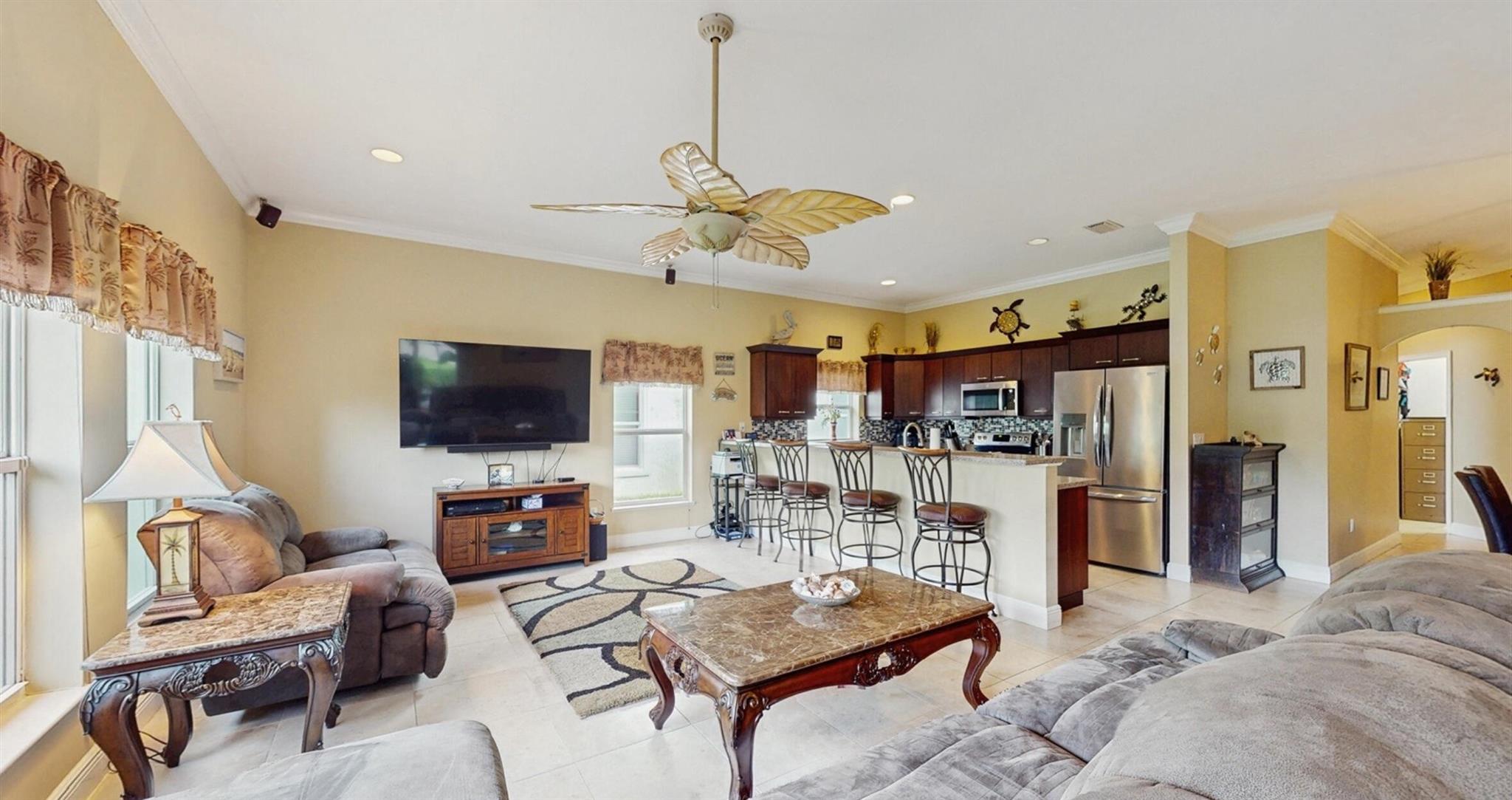 This cozy 3 bedroom home offers hurricane resistant windows, screened in back porch, and surround sound in living room and master bedroom. It will be sold partially furnished, which may be a nice bonus for buyers. The home is located on a spacious cul-de-sac lot in gated community called The Estuary. Residents enjoy a maintenance free lifestyle on the North Fork of the St Lucie River. This may be the perfect residence to the enjoy the beach, boating, and beautiful views. A few of the many amenities are ocean access boat docking, located minutes from Treasure Coast Mall or to the unique shops in downtown Stuart, and local beaches are short drive away. Additionally the community offers spectacular views of the South Florida sunsets from the community dock.