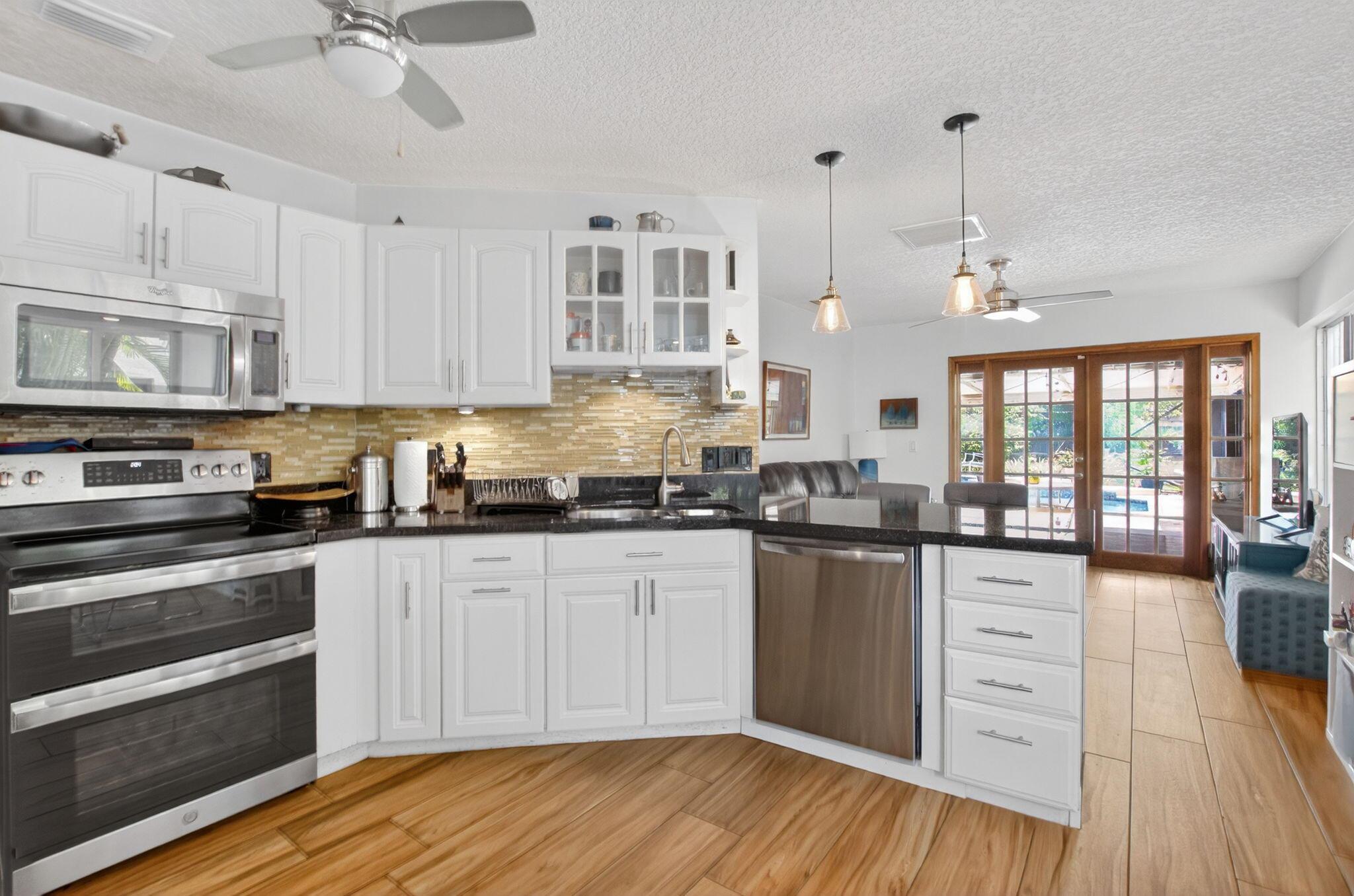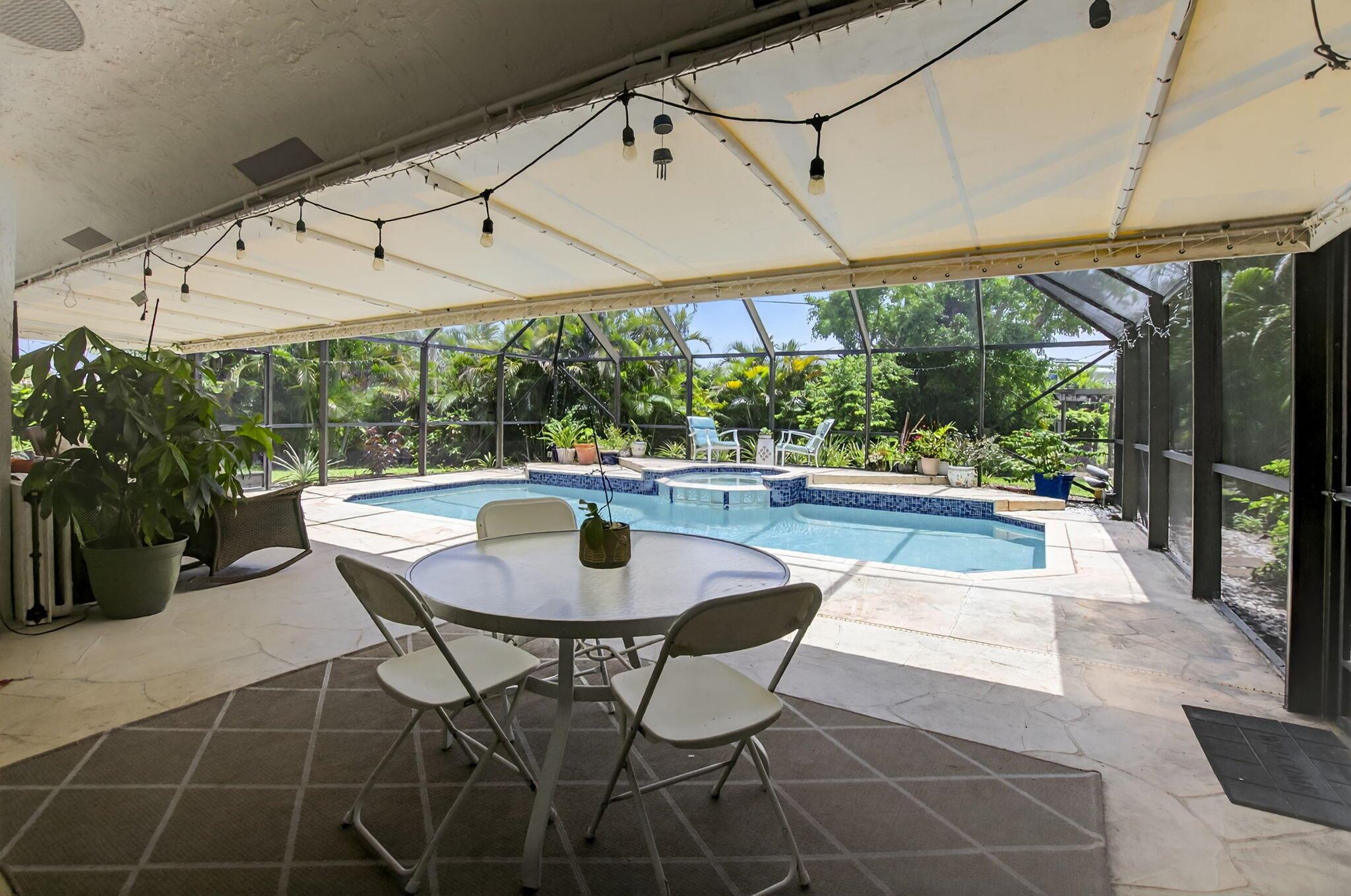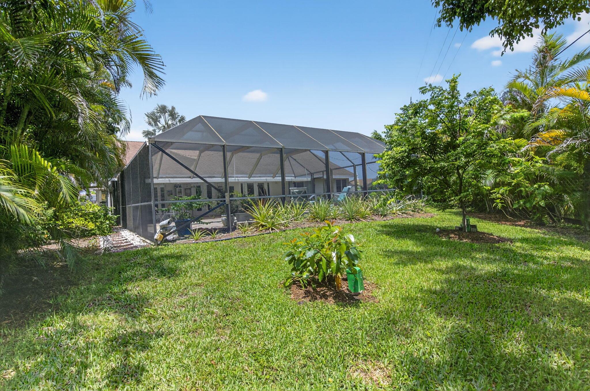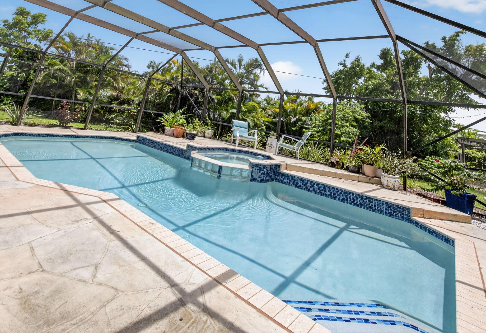 Stunning 3BR 2B + bonus home office/home gym, screen enclosed pool home sits on a 1/4-acre pie shaped fenced cul-de-sac lot. Lush tropical landscaping with many fruit trees. Pool with heated spa,Inground propane tank which can be used to power a generator. Exterior recently painted. Impact windows & multiple French doors that fill the house with natural light. New ceramic tile throughout living area to look like wood. Newer refrigerator, dishwasher & range w/double oven. A/C 3 yrs old. Large walk-in pantry for extra storage space. . Pull-down stairs for attic access which has been sprayed with extra insulation. Roof has been treated with a coating for longer sustainability.