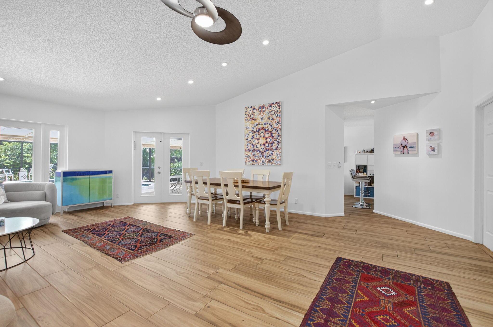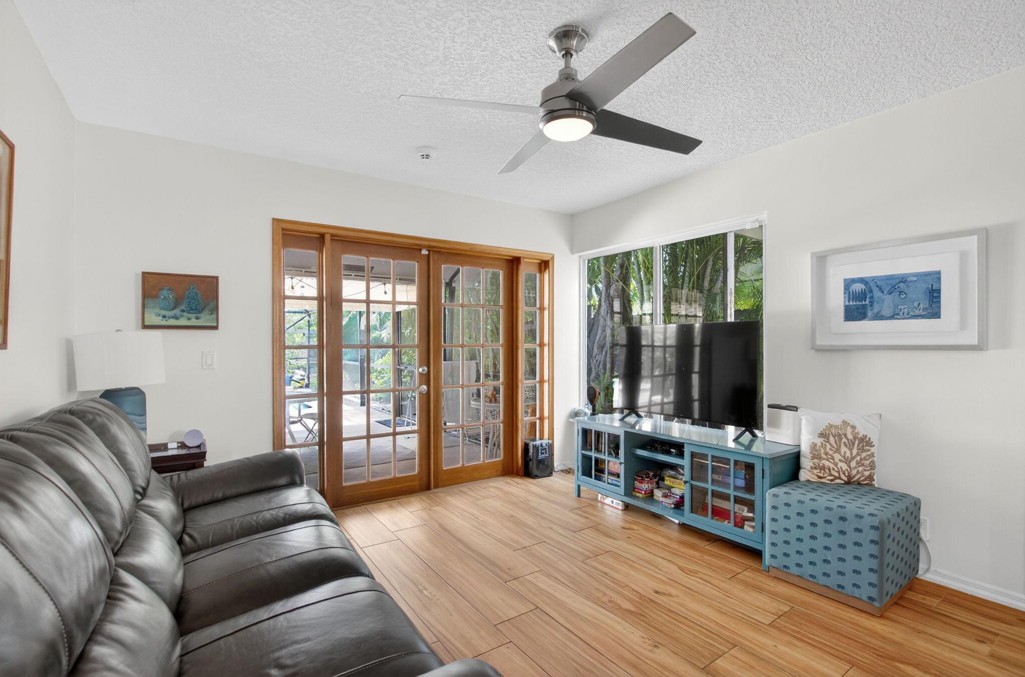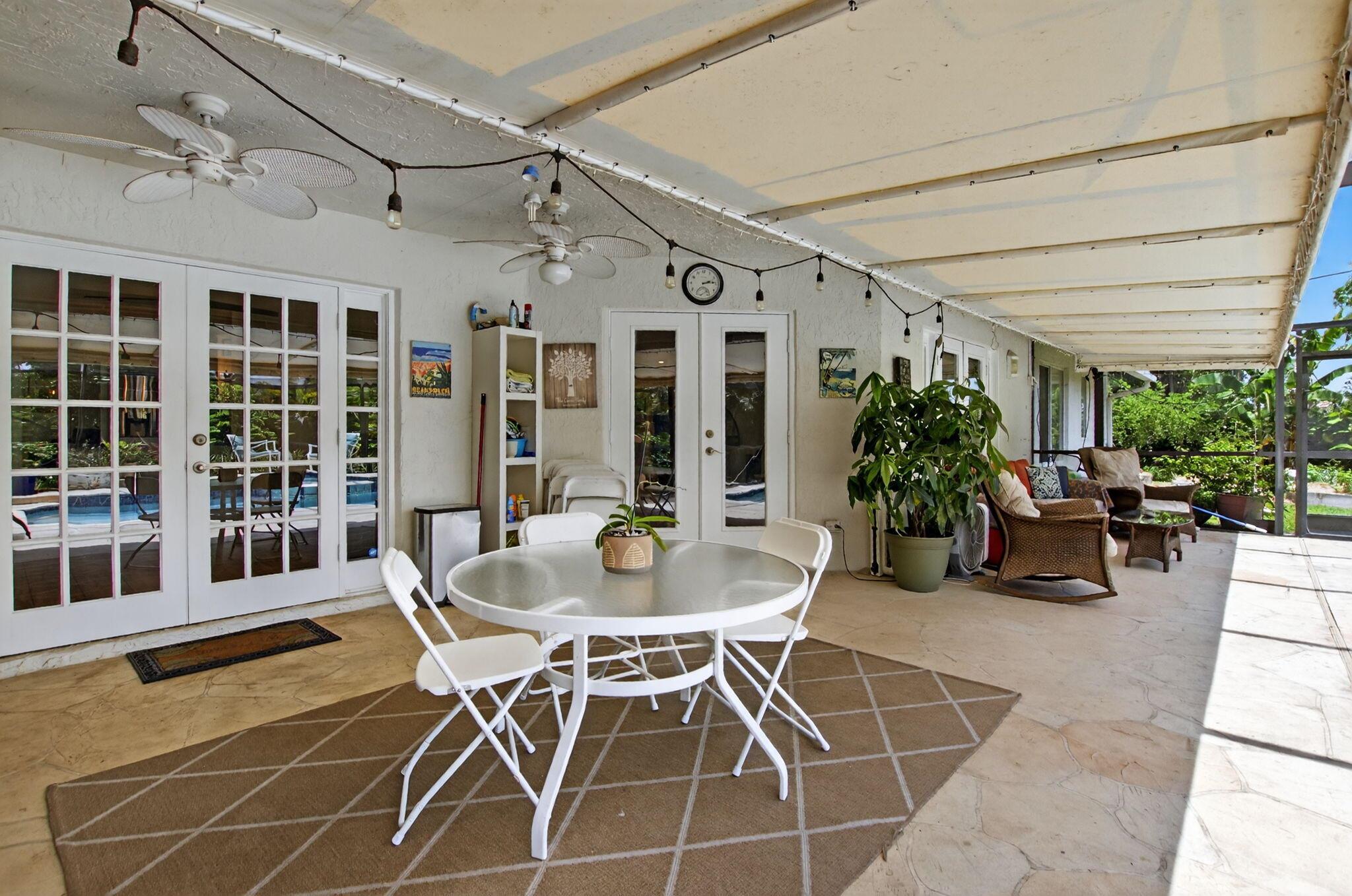 Stunning 3BR 2B + bonus home office/home gym, screen enclosed pool home sits on a 1/4-acre pie shaped fenced cul-de-sac lot. Lush tropical landscaping with many fruit trees. Pool with heated spa,Inground propane tank which can be used to power a generator. Exterior recently painted. Impact windows & multiple French doors that fill the house with natural light. New ceramic tile throughout living area to look like wood. Newer refrigerator, dishwasher & range w/double oven. A/C 3 yrs old. Large walk-in pantry for extra storage space. . Pull-down stairs for attic access which has been sprayed with extra insulation. Roof has been treated with a coating for longer sustainability.