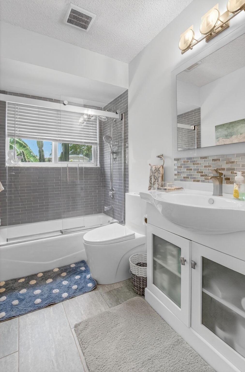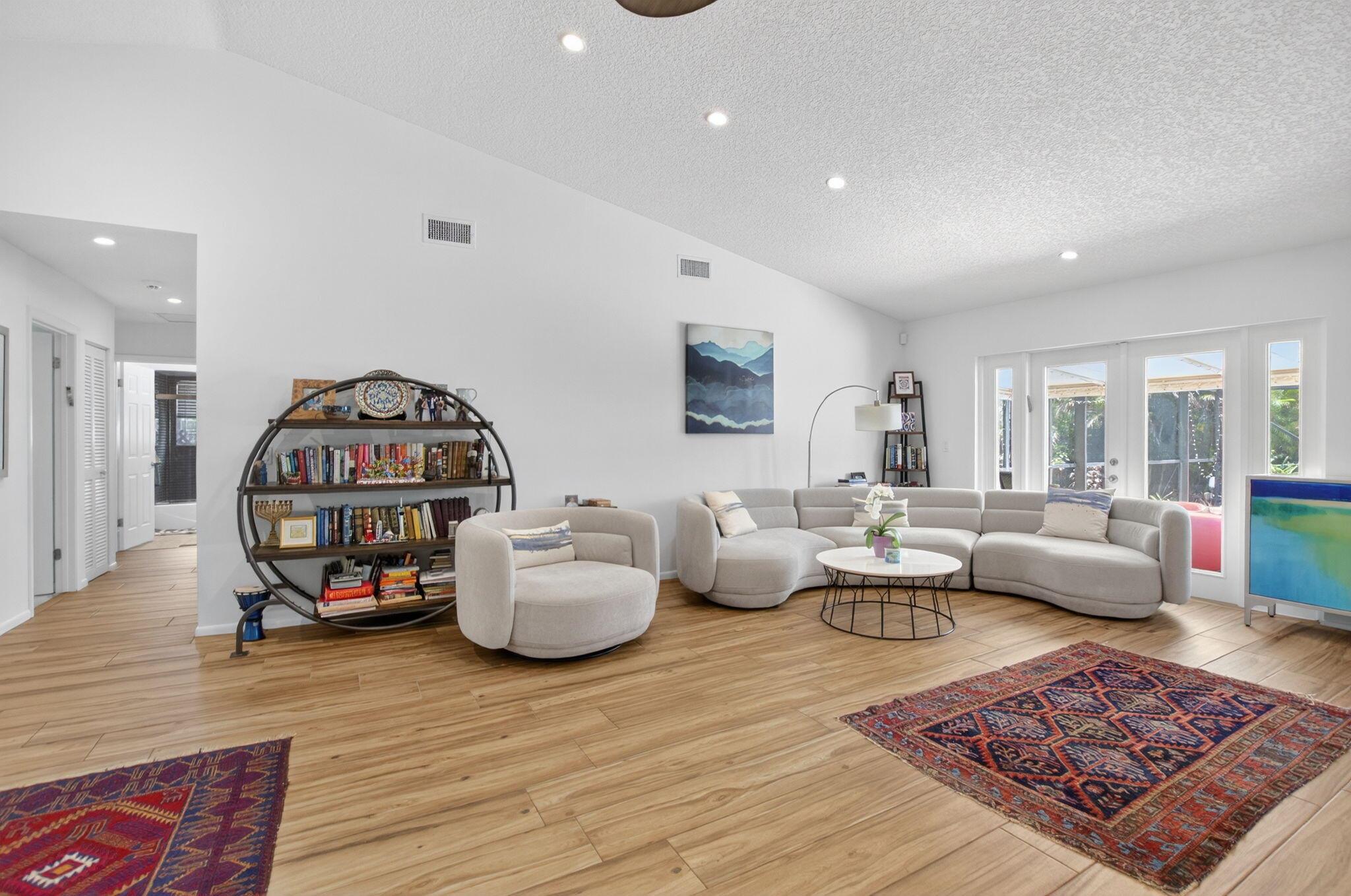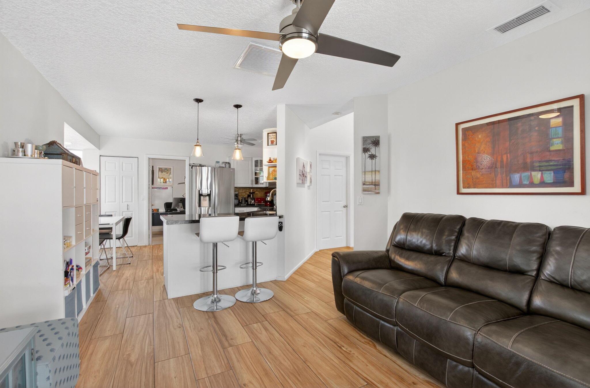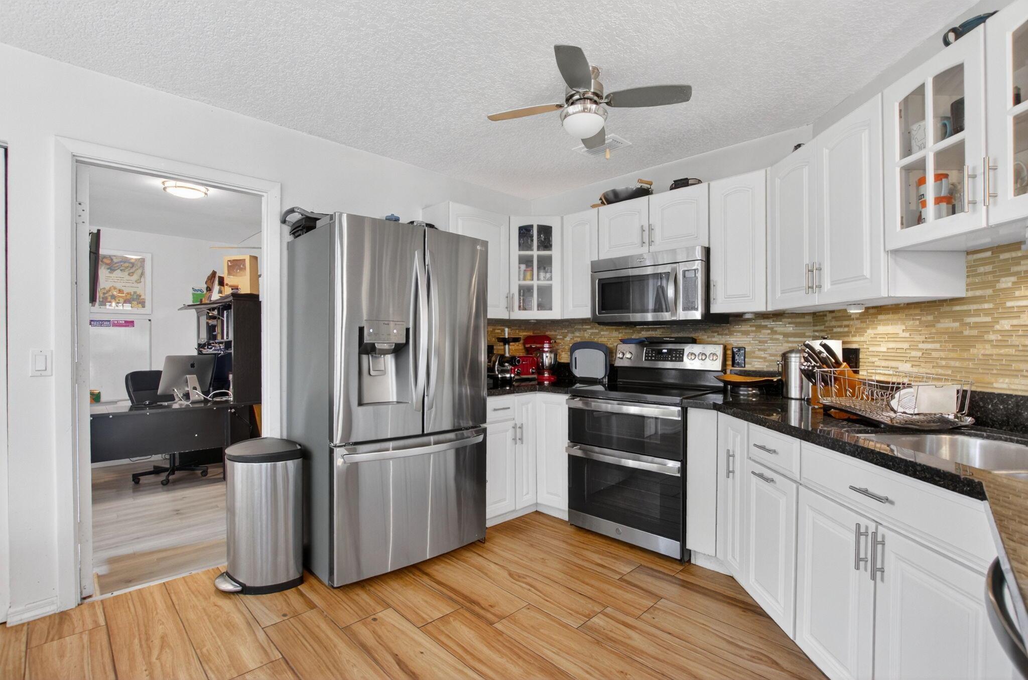 Stunning 3BR 2B + bonus home office/home gym, screen enclosed pool home sits on a 1/4-acre pie shaped fenced cul-de-sac lot. Lush tropical landscaping with many fruit trees. Pool with heated spa,Inground propane tank which can be used to power a generator. Exterior recently painted. Impact windows & multiple French doors that fill the house with natural light. New ceramic tile throughout living area to look like wood. Newer refrigerator, dishwasher & range w/double oven. A/C 3 yrs old. Large walk-in pantry for extra storage space. . Pull-down stairs for attic access which has been sprayed with extra insulation. Roof has been treated with a coating for longer sustainability.