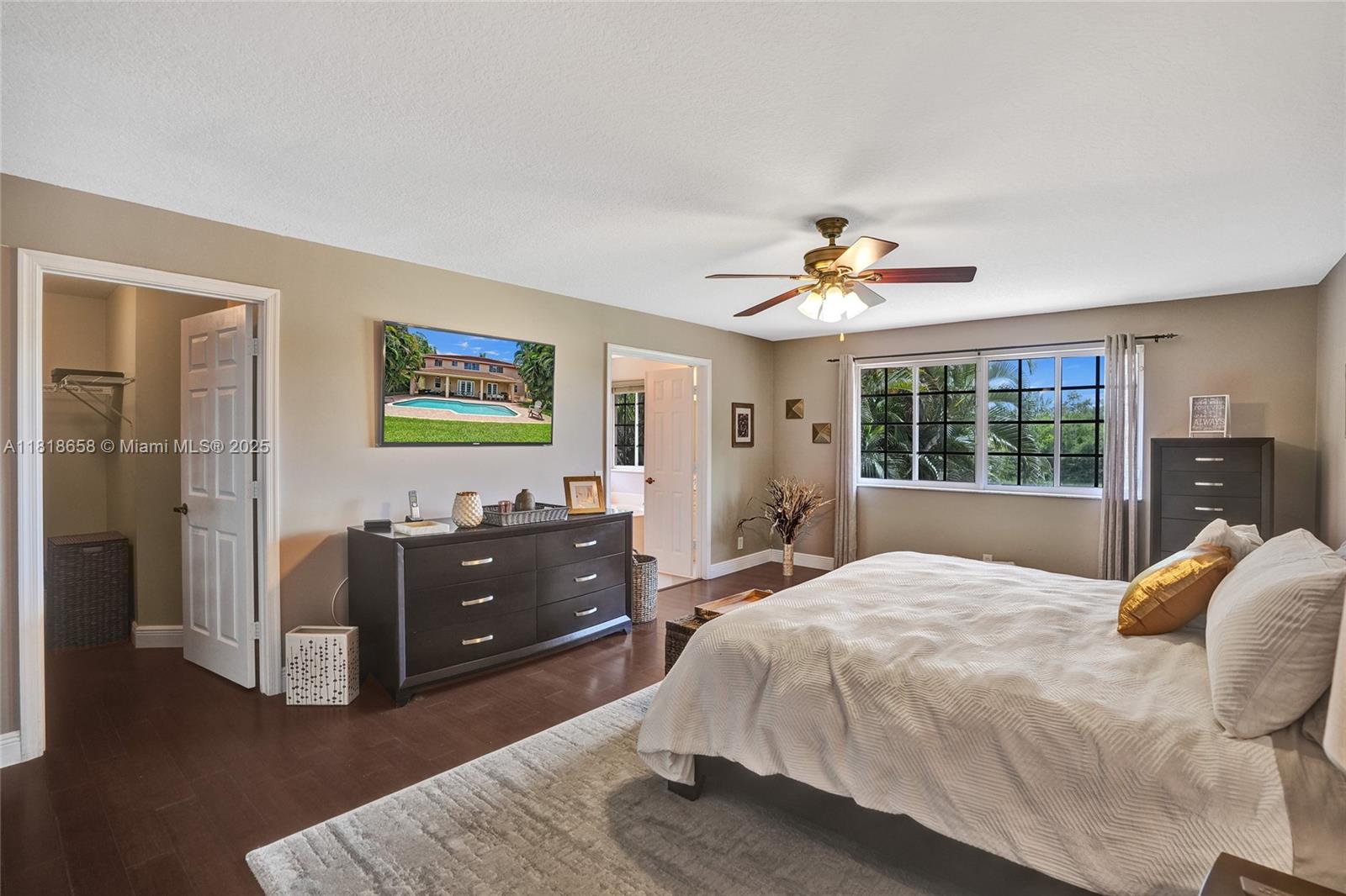 Step into this expansive 6BD, 4BA, 2022 NEW Roof tucked on a private cul-de-sac in Hunters Pointe at Weston Hills CC. Mature landscaping and no rear neighbors create unmatched privacy around the resort-style pool, which glows after dusk under designer landscape lighting both in front and at the back. Sunlight pours into living areas, where a modern kitchen features sleek white cabinets, stainless steel appliances, and a center island. The primary suite offers a quiet office nook and a spa bath with a soaking tub, dual sinks, and a separate shower. Two upstairs bedrooms share a Jack-and-Jill bath, while a ground-level suite adds flexibility. Guard-gated community completes this refined sanctuary of luxury living.