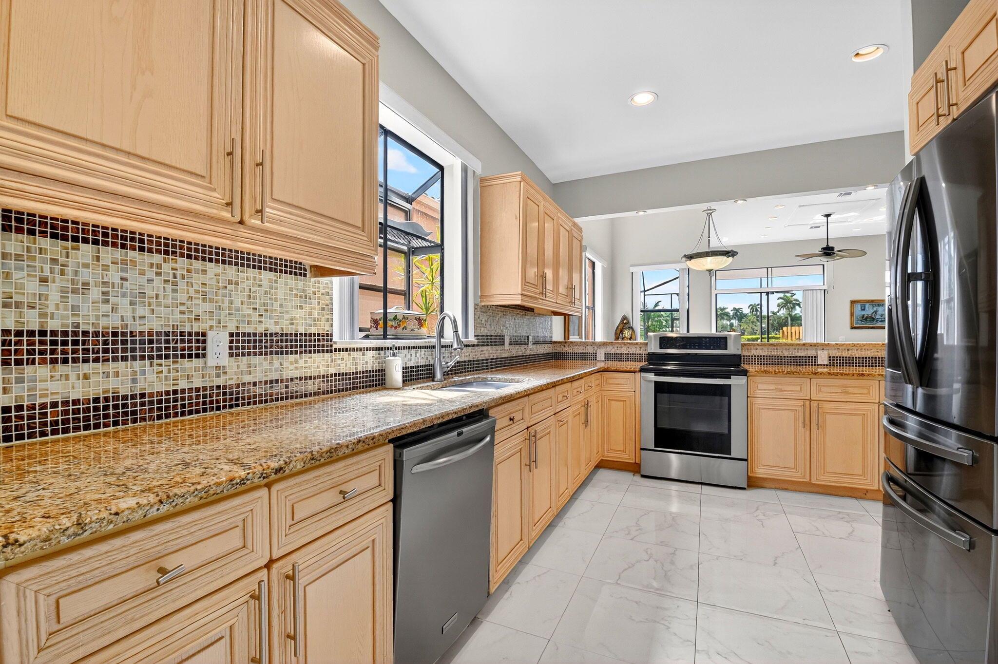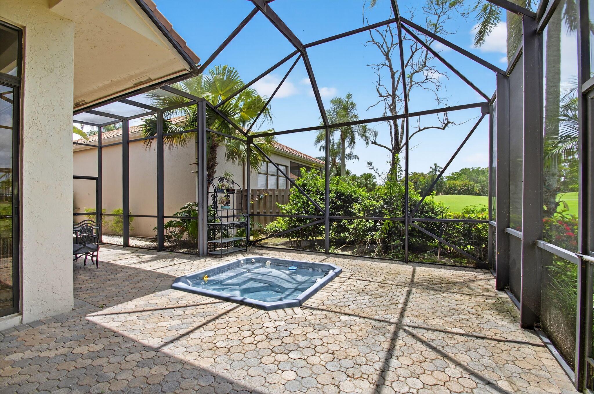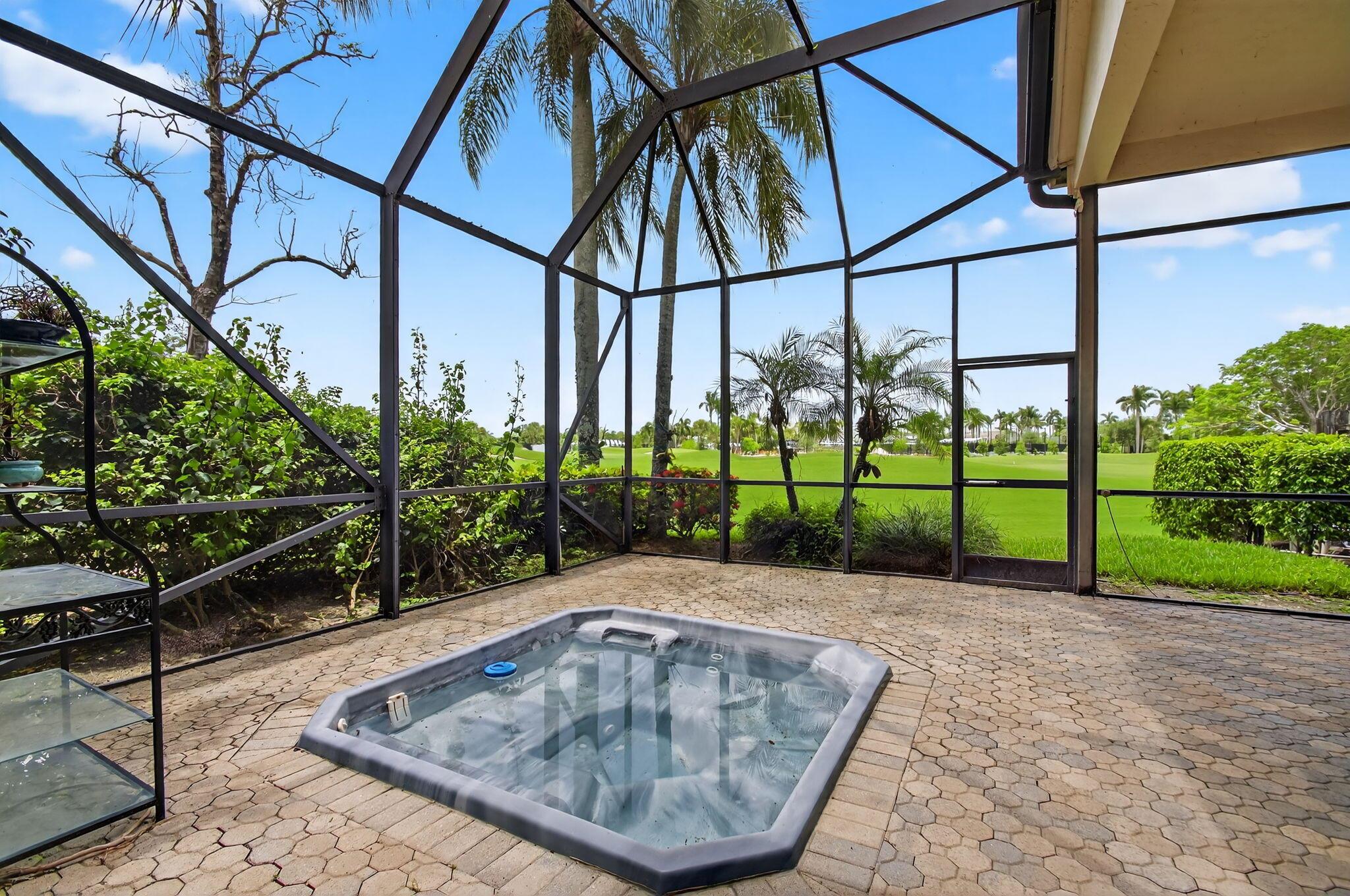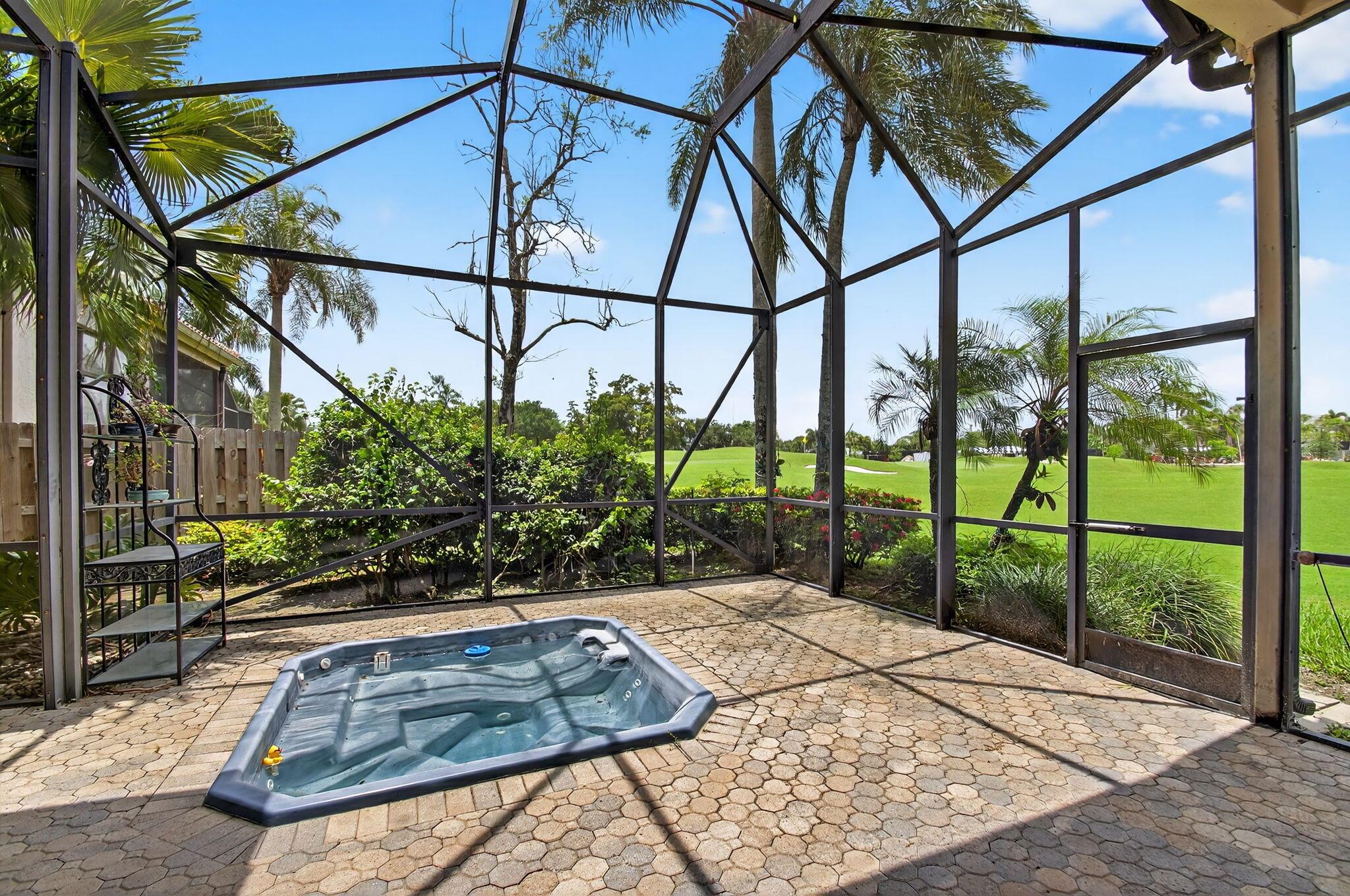 Welcome to your new home in Wycliffe Golf & Country Club! Situated on the 9th hole of the prestigious West Golf Course, this single-family residence offers panoramic golf & clubhouse views right from your backyard. The expansive, screened-in & covered patio with in-ground jacuzzi creates the perfect setting for outdoor living, relaxation, & entertaining. The home features a new roof (2021) and a remodeled open-concept kitchen that flows seamlessly into the main living space. A Social membership is available for purchase, giving you access to Wycliffe's renowned amenities, social events, dining, and more. Whether you're starting your mornings with a golf course sunrise or winding down in the jacuzzi under the stars, this home offers the ideal setting to enjoy the best of Florida living.
