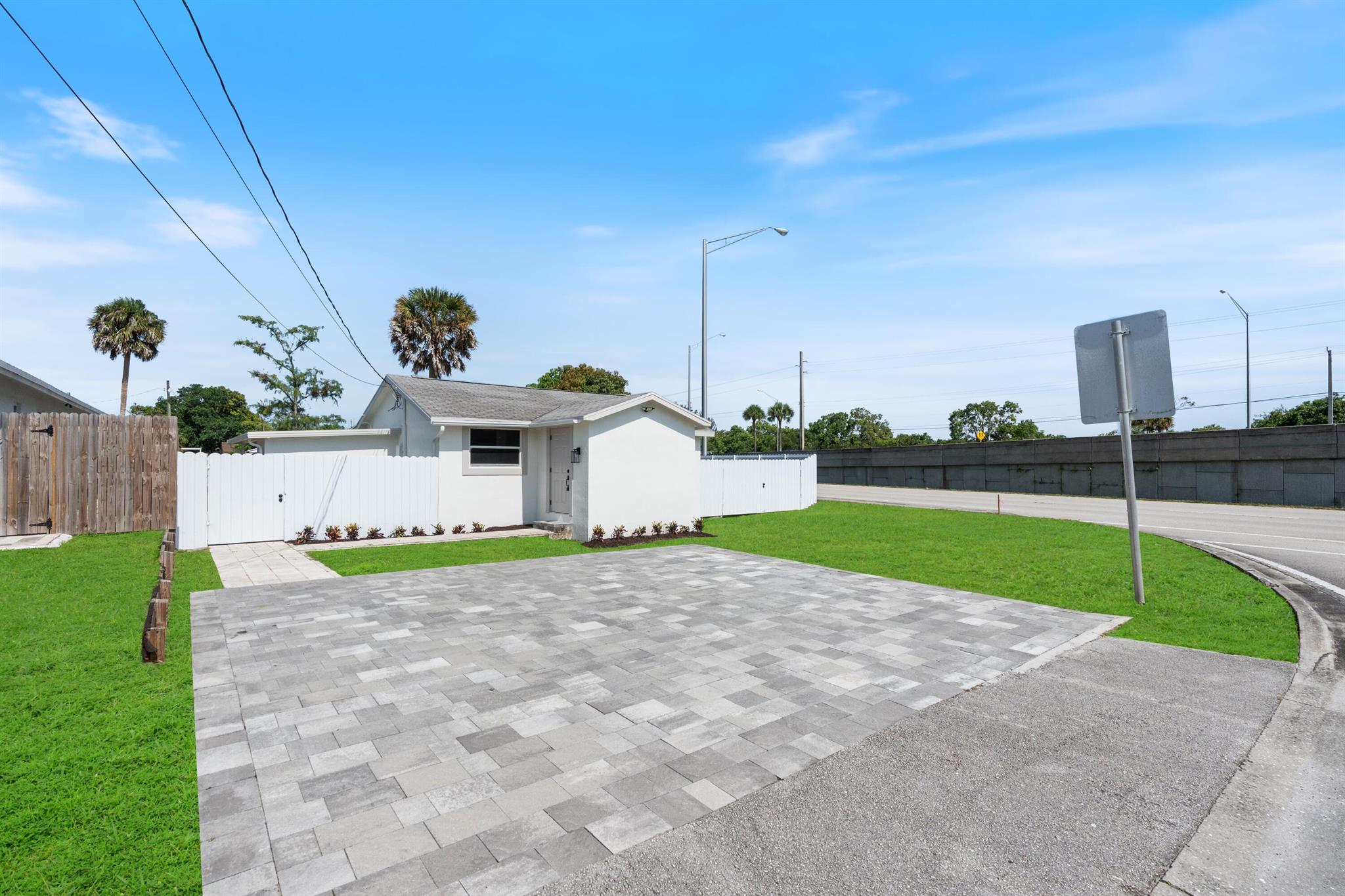 Discover this fully renovated single-family home located on a spacious corner lot in the heart of West Palm Beach!This bright and modern 4-bedroom, 2-bathroom residence features sleek finishes throughout: luxury vinyl plank flooring, stainless steel appliances, quartz countertops, and contemporary matte black fixtures.The open-concept layout offers a seamless flow from the living room to the updated kitchen perfect for entertaining or spending quality time with family.Enjoy abundant natural light, a large paved driveway, a fenced yard for privacy, and a separate laundry area with washer and dryer in very good condition.Bonus: With no HOA restrictions, you have the freedom to park an RV, a boat, or even build a guest house or detached suite ideal for extended family or future rental income