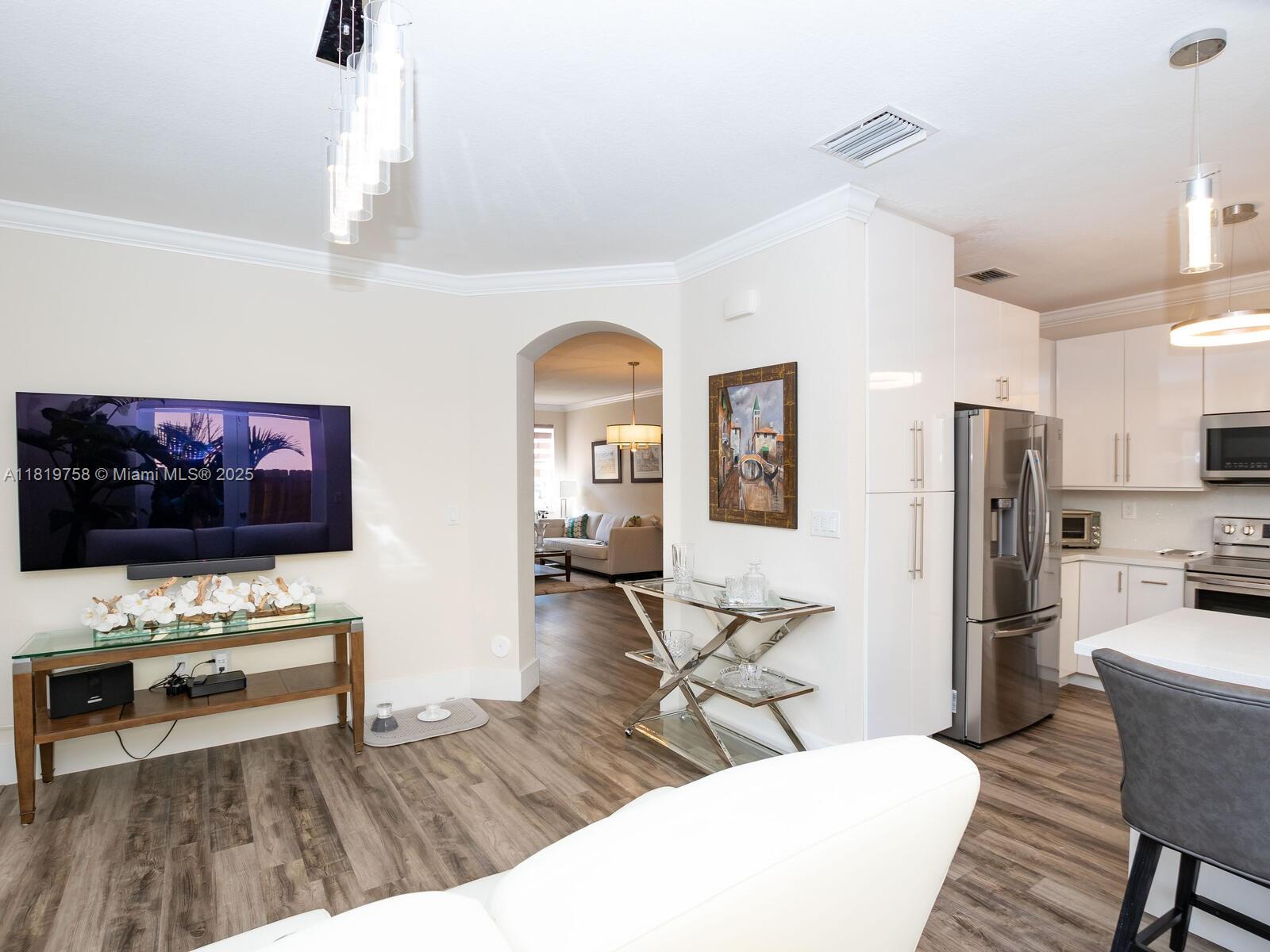 Upgraded 3-Bedroom Townhome with No Rear Neighbors! Meticulously maintained 3-bed, 2.5-bath townhome located in the community of Tuscany. Features include new impact front and rear door, rear impact windows, accordion shutters, granite countertops, stainless steel appliances, and waterproof laminate flooring. Spacious master suite with dual sinks and a large walk-in closet. Private yard with electric retractable canopy. Community offers 2 pools, clubhouse, gym, and 24/7 security. HOA covers common areas, basic cable, and high-resolution service with on-demand boxes. Move-in ready!