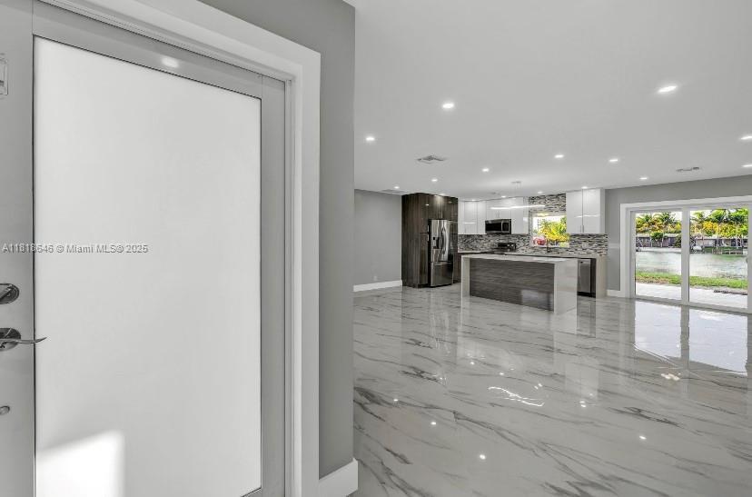 NO HOA. This charming and completely remodeled 3-bedroom, 2-bath home offers stunning lake views and ample space throughout the property. Its interior features porcelain tile floors, a separate laundry room, a modern kitchen with a large center island, plus great cabinet storage. The sink is framed by a window, providing a serene lake view. The living room includes a large sliding glass door that opens to a generous fenced backyard with an above-ground pool. Located in a quiet neighborhood surrounded by nature, excellent schools, and a family-friendly atmosphere, with proximity to the beach and the new YMCA. This home has a carport space, plus three parking spaces. Equipped with solar panels, offers excellent energy efficiency and lower utility costs. Assumable FHA loan at 2.875%!!!