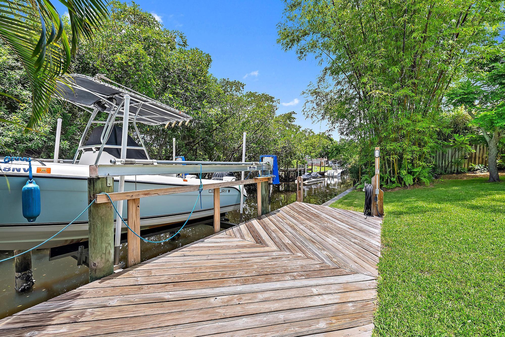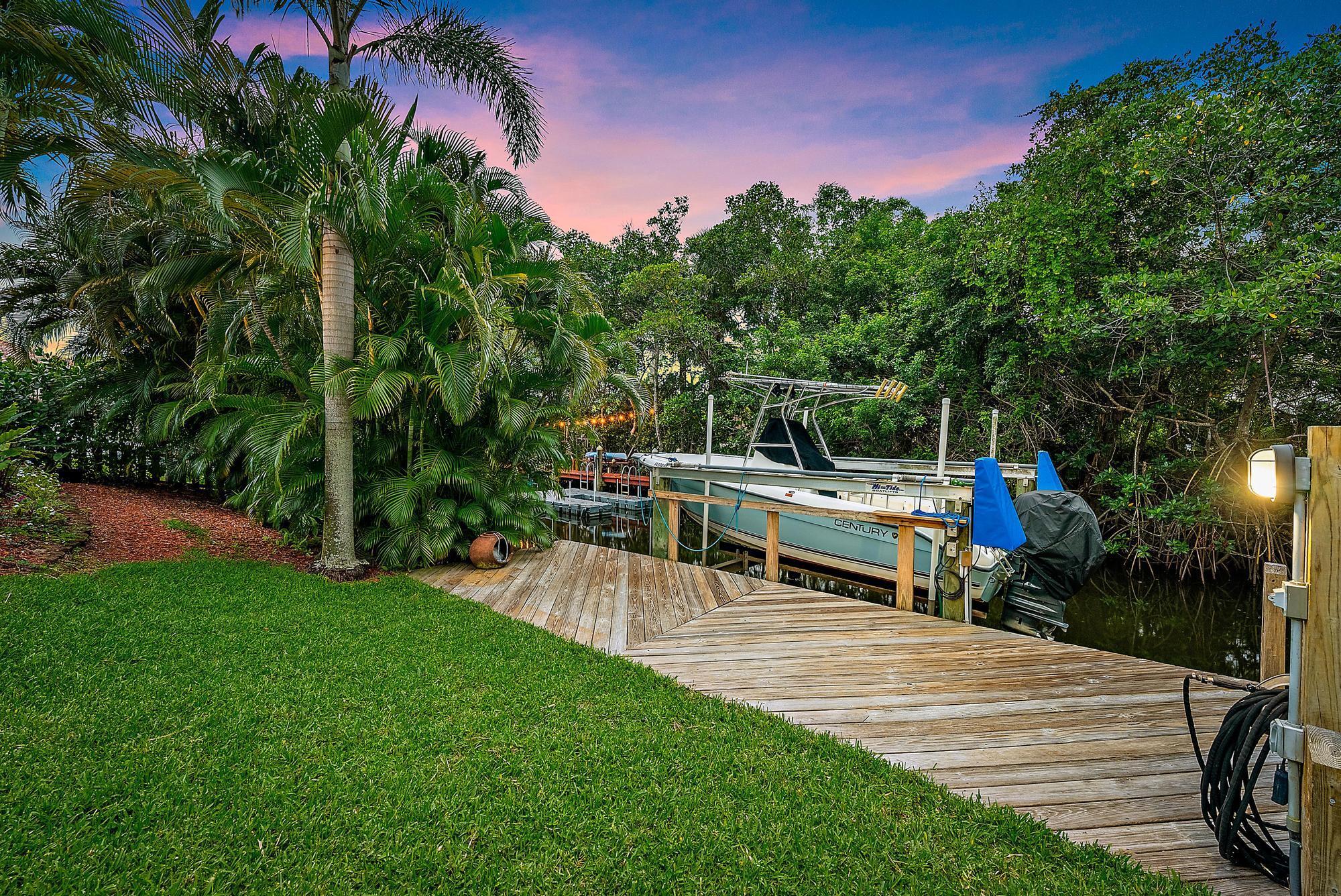 Welcome to your dream waterfront oasis--an exceptional opportunity to own a slice of paradise with private ocean access right from your backyard. This stunning home sits along 100 feet of a lush, tropical canal, tucked away just off the scenic Loxahatchee River. Offering the perfect blend of privacy, serenity, and outdoor adventure, this property is a true boater's dream. Imagine waking up and walking out to your private dock, complete with a boat lift, water, and electric hookups. From here, enjoy quick and easy access to the Jupiter Inlet, the sandbar, and open ocean waters. Whether you're into fishing, cruising, or spending days anchored in the sun, this location offers it all.