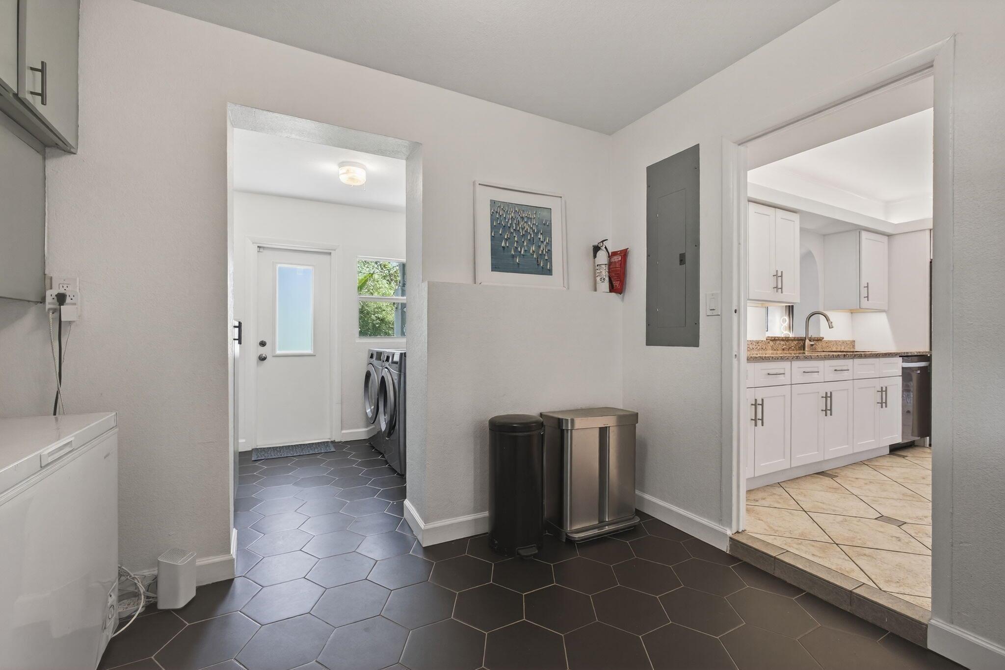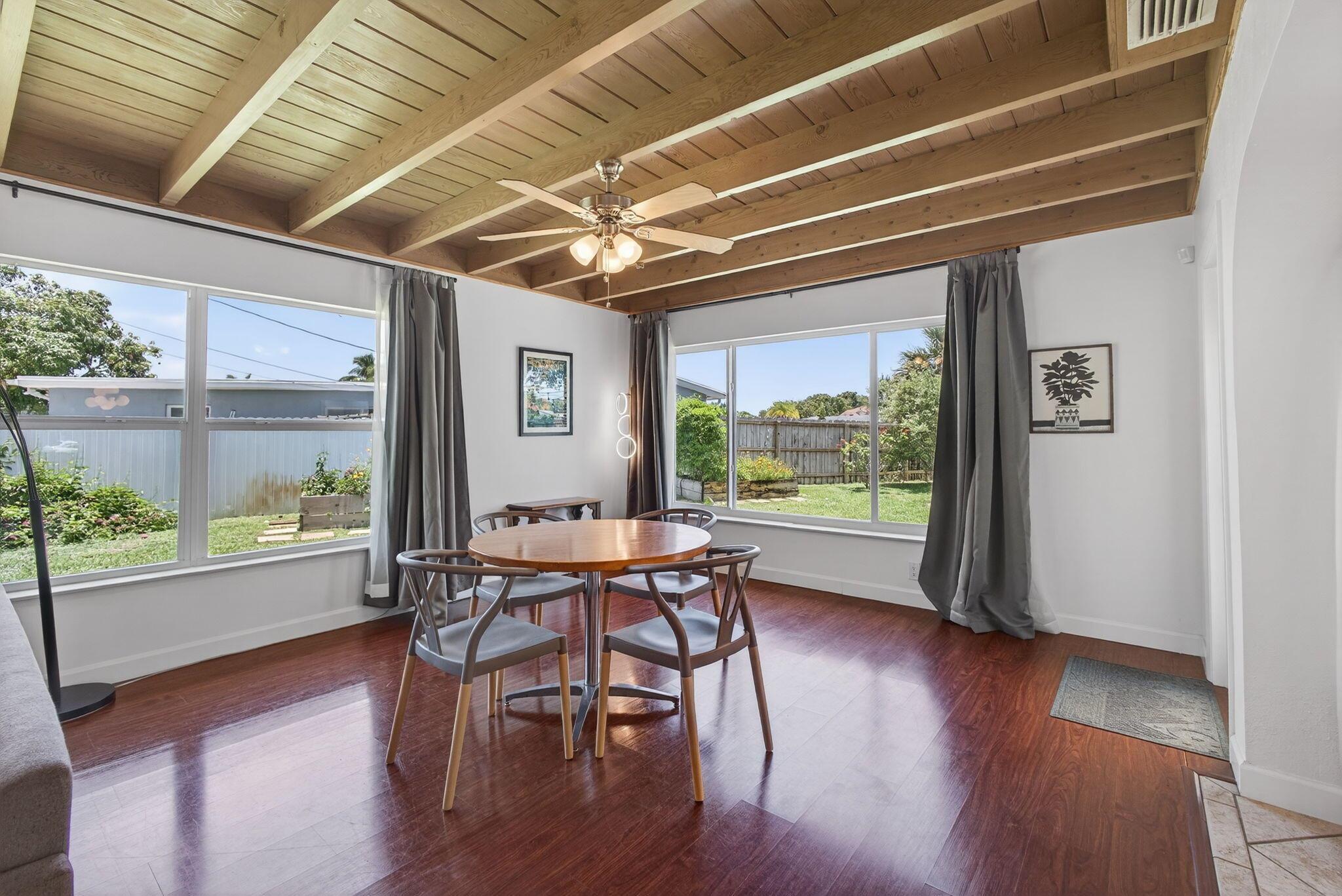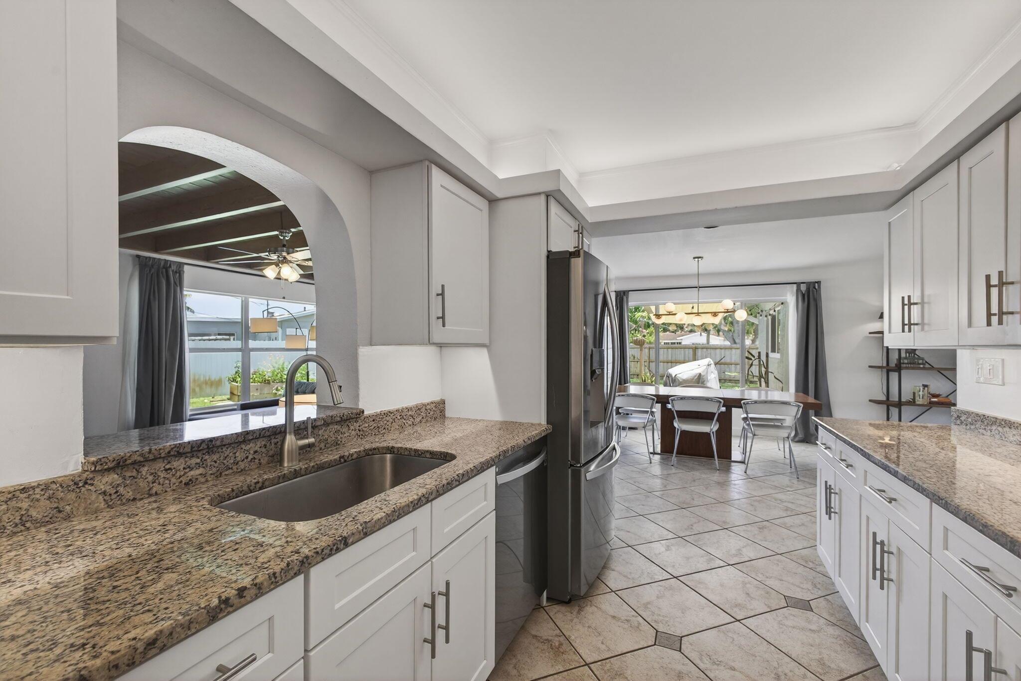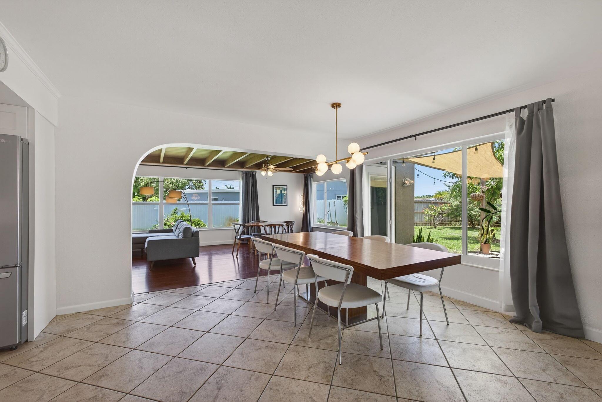 Well maintained light & bright 4/2 single family home on a corner lot with oversized, fenced backyard & numerous fruit trees. 4 zone sprinkler system in front & back yards. Impact windows. Roof was replaced in 2018, water heater in 2023 & kitchen appliances & air conditioner in 2024. Newly renovated primary bathroom. Open floor plan with updated white kitchen cabinets & granite countertops Tile throughout. 220 amp electrical service with updated electric panel box, 50 amp generator hook up with portable generator transfer switch, full house surge protector. 2 solar attic vents. Smart home features include NEST a/c thermostat, 9 camera system, wireless commercial grade alarm system.
